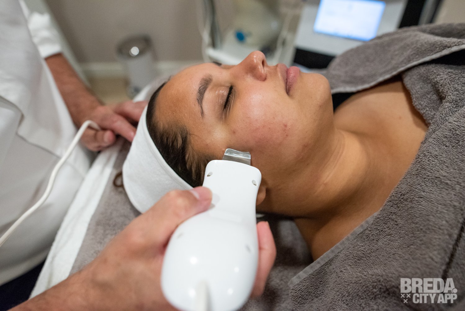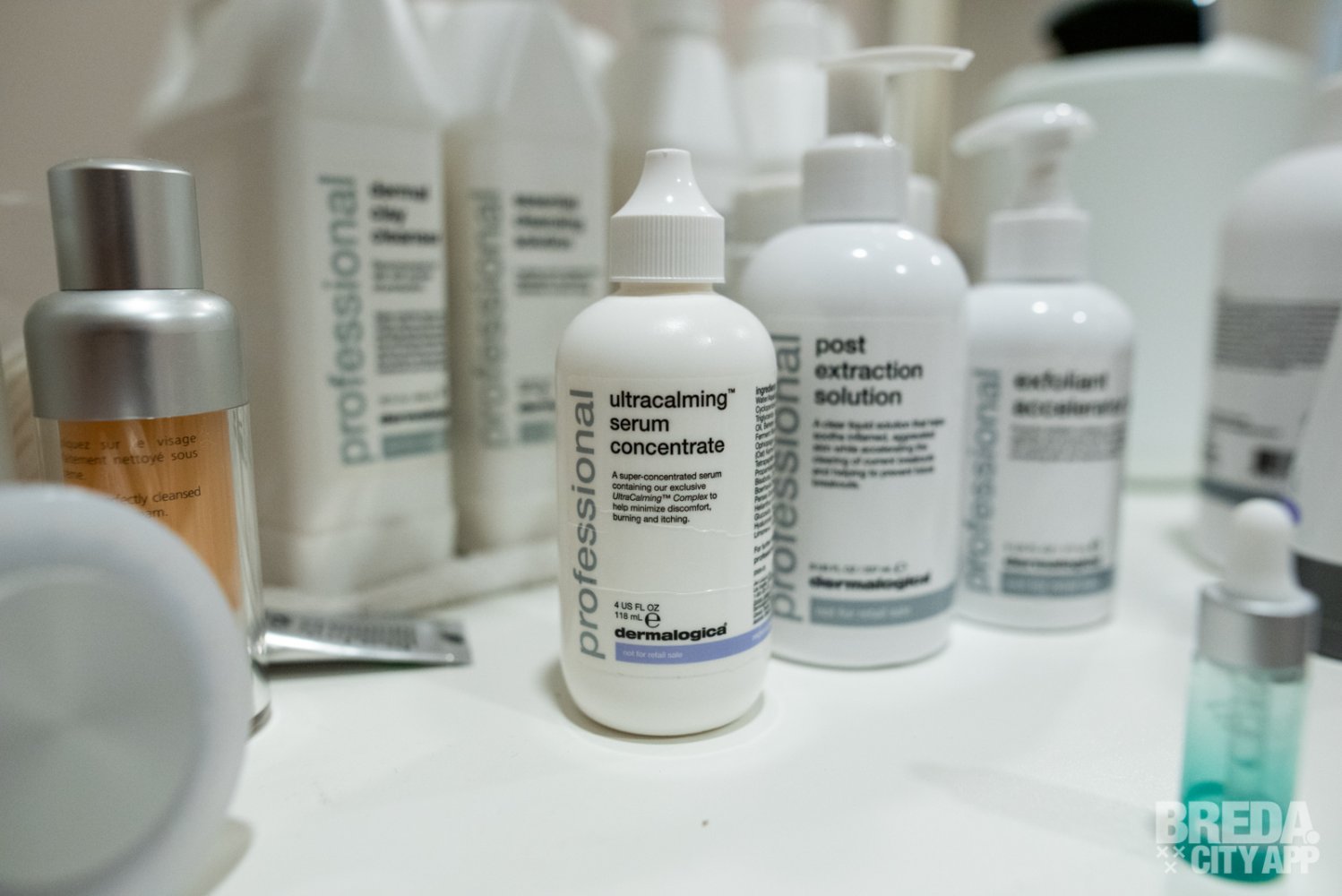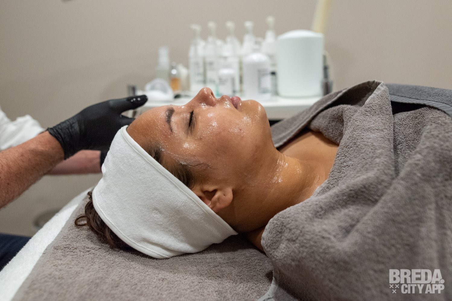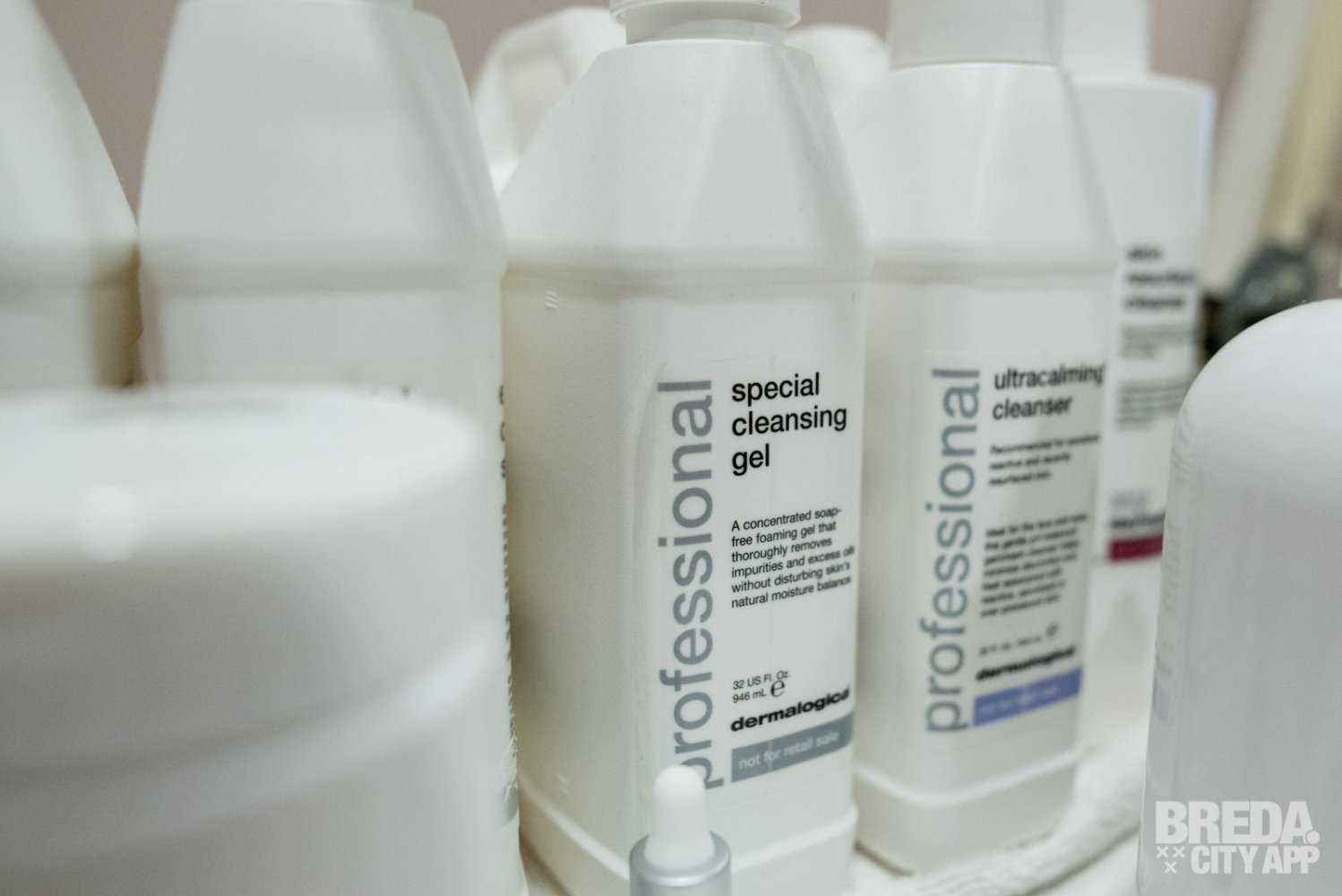 Hierna voelt mijn huid al een stuk schoner en frisser, wat aangeeft hoe belangrijk het is om je huid goed te behandelen en verzorgen. Het volgende product dat aangebracht wordt op mijn gezicht is de Dermalogic Exfoliant Accelerator 35. Dit product bevat melkzuur, peptiden en enzymen die ervoor zorgen dat de huidcellen vernieuwen, waardoor de textuur van je huid verbetert en zachter wordt. Het kan een beetje prikken op je huid, maar dat wil zeggen dat het melkzuur zijn werk doet. Corné masseert dit product meerder malen goed in op mijn gezicht en hals voordat we doorgaan naar de volgende stap.