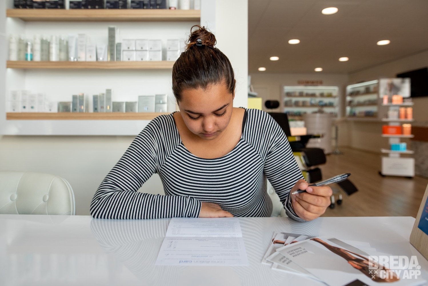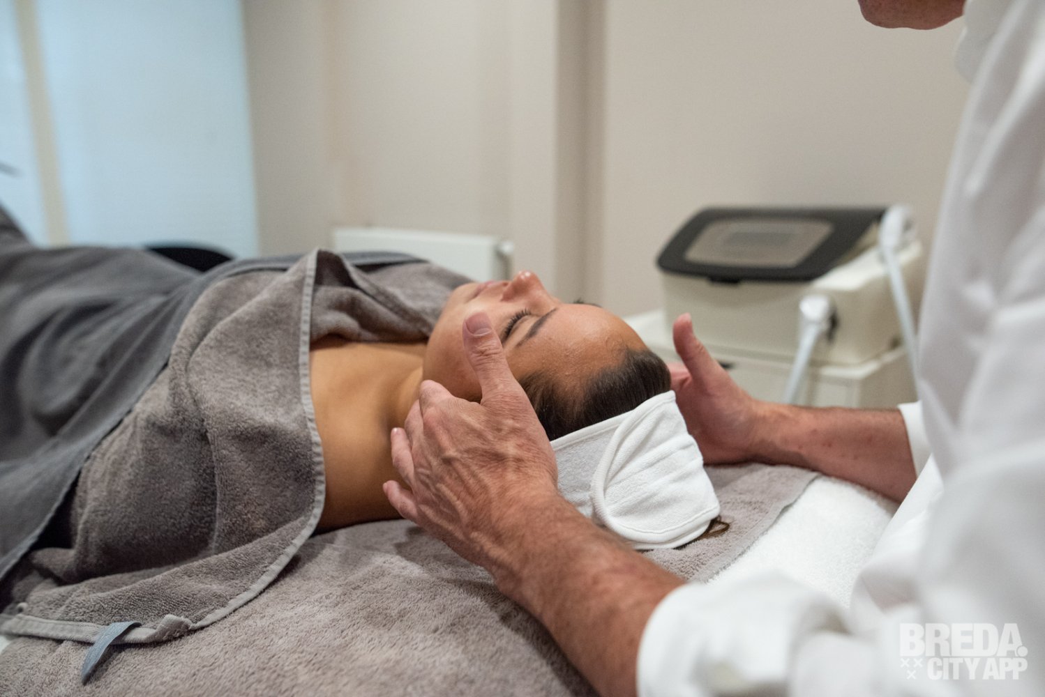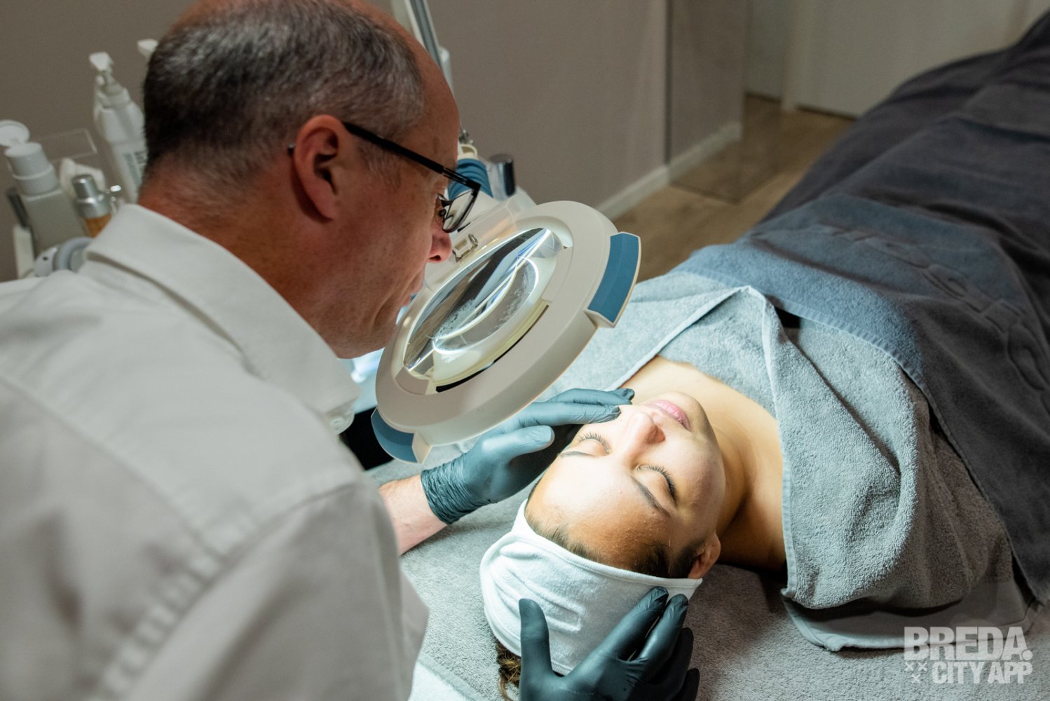 Voor een huidspecialist is het bekijken van de huid van groot belang en om overal zeker van te zijn krijg ik een formulier met daarop een aantal vragen met betrekking tot mijn huid die ik in moet vullen. Als ik klaar ben met het invullen van het formulier verplaatsen we ons naar de behandelruimte. Daar mag ik gaan liggen op de behandelstoel en worden er handdoeken over mij heen gelegd. Corné loopt samen met mij door het ingevulde formulier heen om te kijken of ik alle vragen goed begrepen en beantwoord heb en vraagt bij enkele vragen om extra informatie om mijn huid zo goed mogelijk te kunnen analyseren om deze vervolgens te behandelen.
