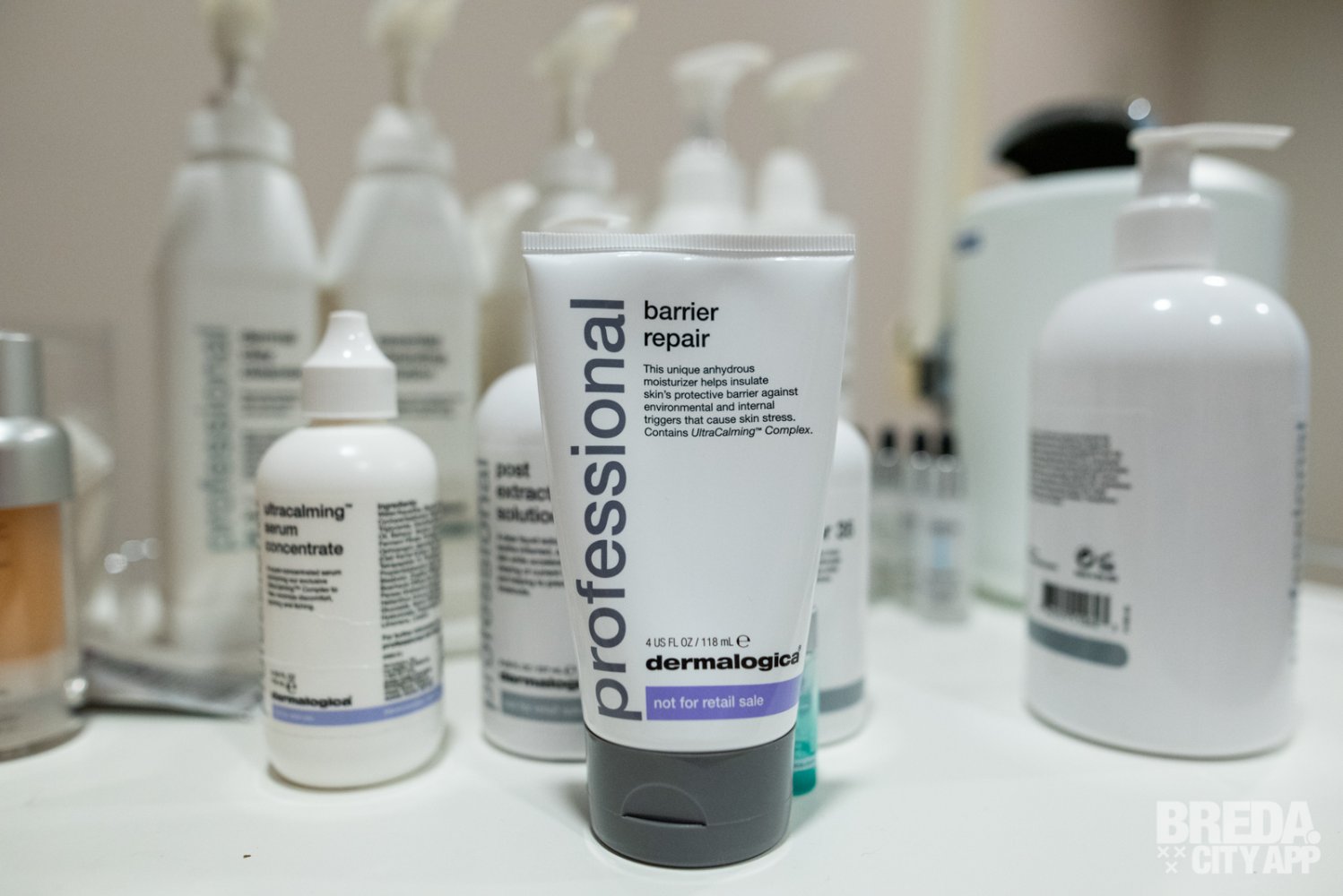 Na het serum wordt een moisturizer aangebracht op mijn gezicht en hals. Het product genaamd Dermalogica Barrier Repair zorgt ervoor dat er een laagje op de huid zit wat je huid beschermt tegen invloeden van buitenaf, maar ook van binnenuit waardoor je huid minder snel uitdroogt en je minder snel last krijgt van acne.