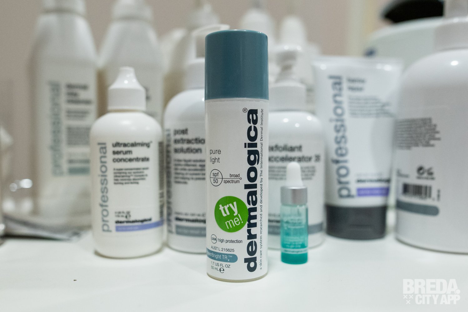 Als laatste wordt er een dag crème aangebracht op mijn huid welke SPF 50 bevat. Hoewel ik altijd dacht dat ik geen SPF 50 nodig heb voor mijn huid, is dat volgens Corné niet waar. Hij legt uit dat mijn huid sneller littekens vormt en de pigmentatie hiervan donkerder is, waardoor het juist goed is om SPF 50 te smeren om dit te voorkomen/verminderen. Daarnaast zorgt de Dermalogica Pure Light dag crème er ook voor dat de natuurlijke vochtbalans van je huid versterkt wordt.