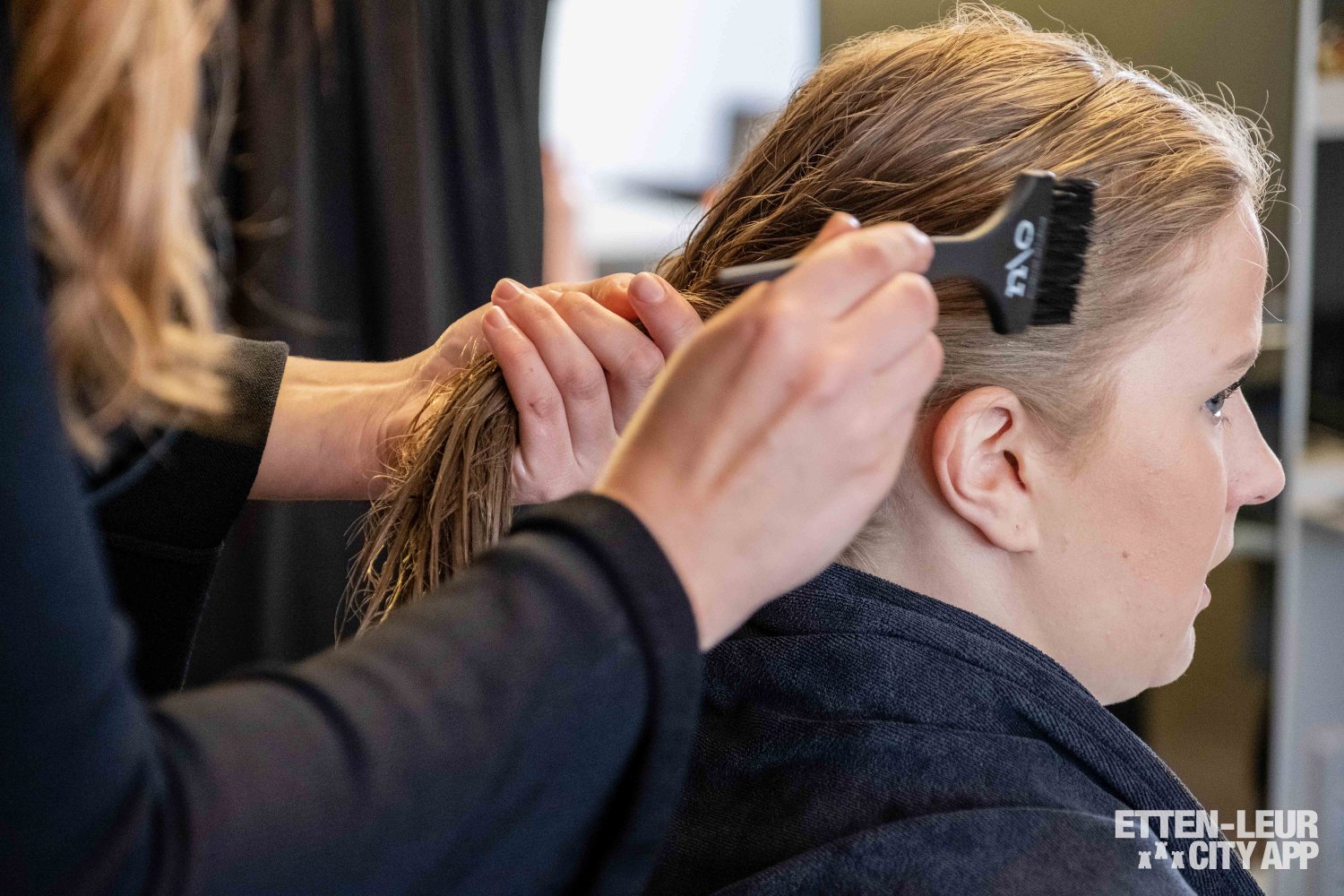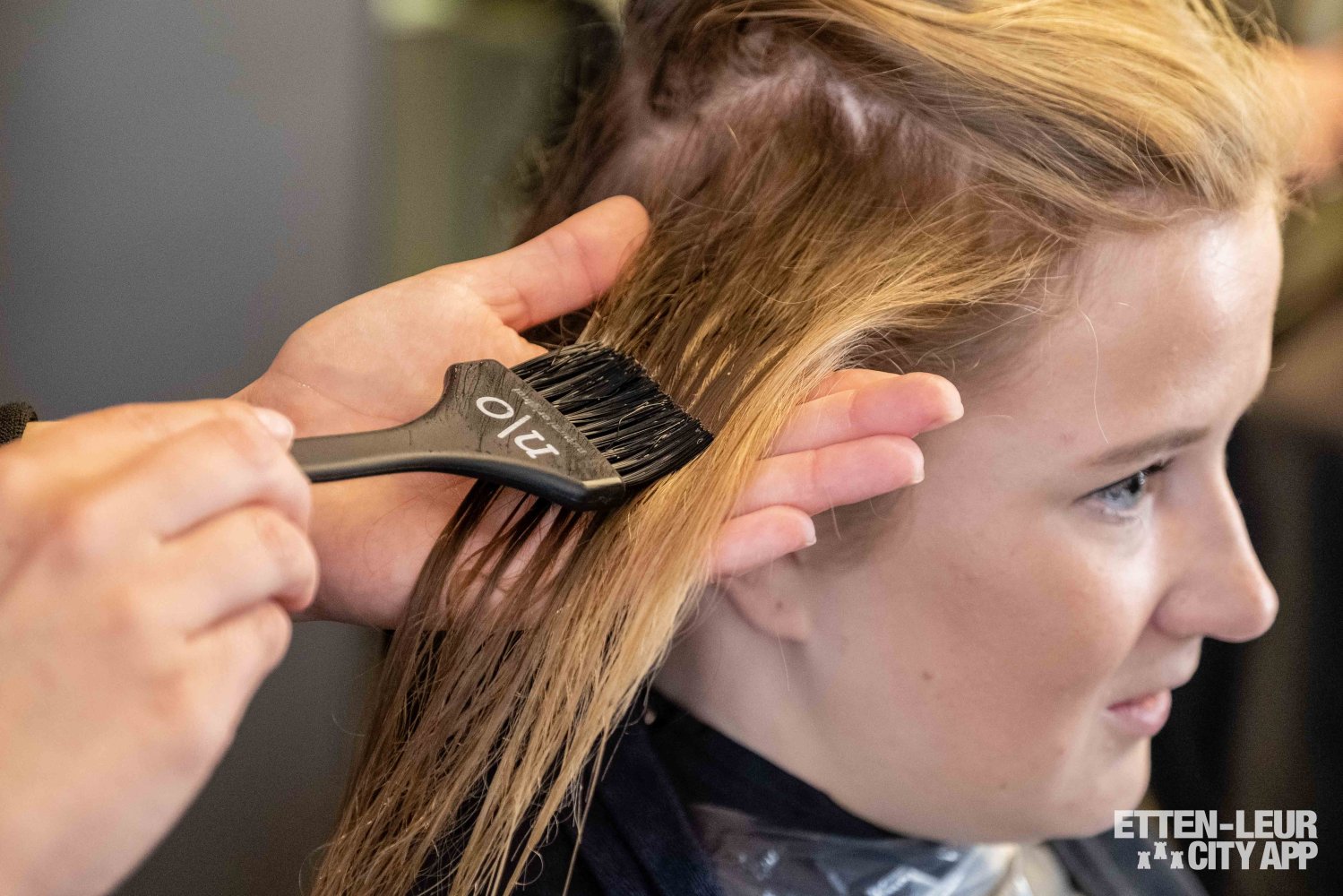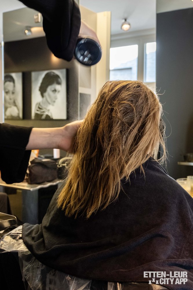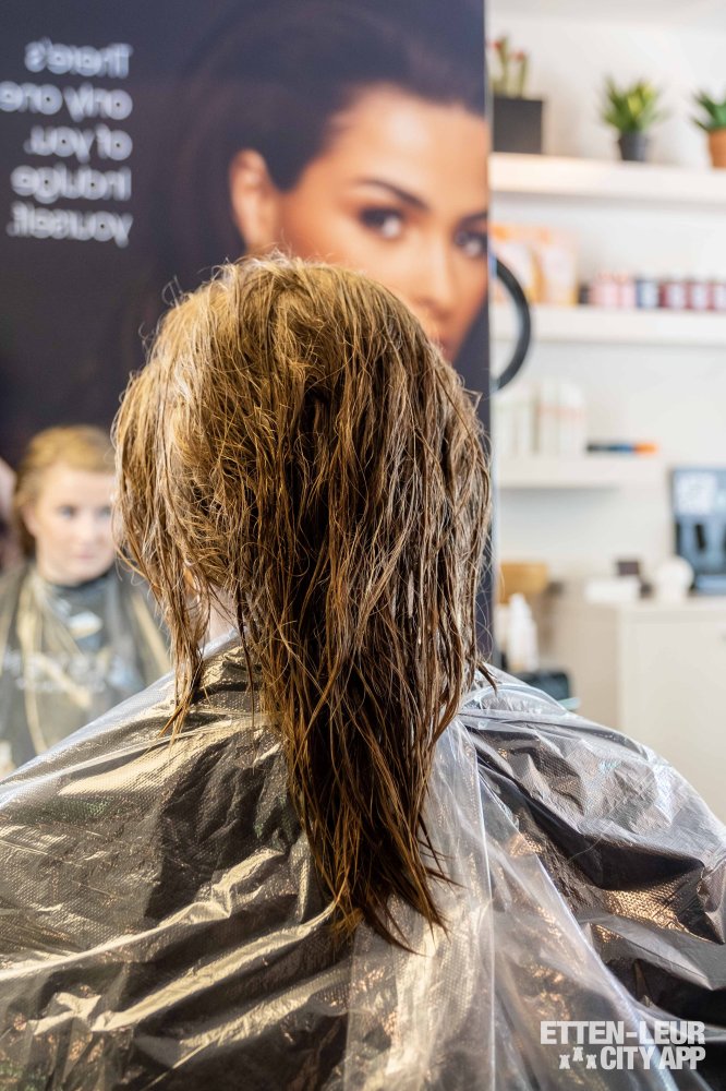 De Olaplex behandeling bestaat uit drie onderdelen. Ik ben zelf erg benieuwd wat voor invloed het op mijn haar heeft. Allereerst wordt de ‘NO.1 Bond Multiplier’ van Olaplex aangebracht op de zonet vochtig gemaakte lengtes van mijn haar. Dit product versterkt en beschermt het haar. Voor een intensieve voeding en reparatie en beschermt het haar tegen chemische behandelingen. Ze brengen de crème aan, waarna je hem 10 minuten moet laten inwerken. Hierna gaan we verder met NO.2; de ’Bond Perfector’.