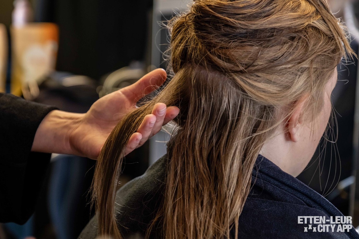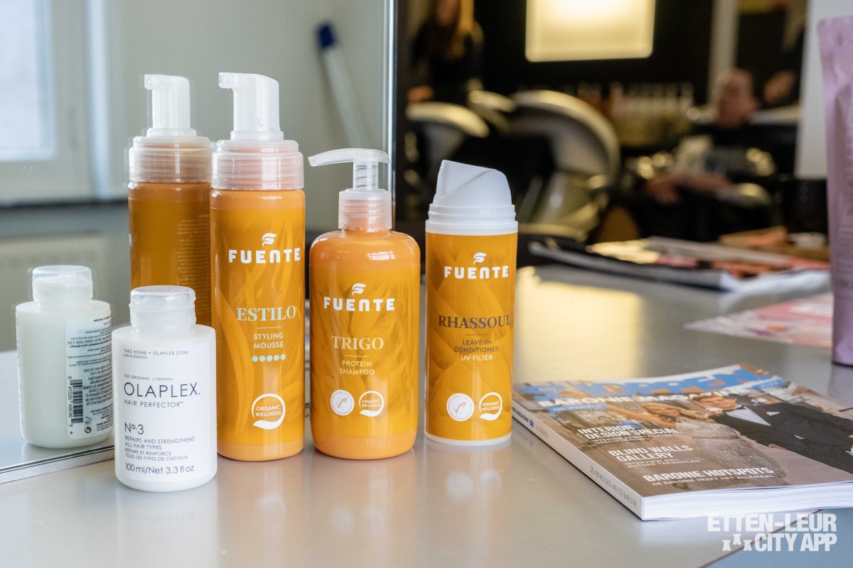 Na het wassen en conditionen van het haar met de heerlijke producten van Fuente, is het tijd om afscheid te nemen van de dode puntjes. De schaar wordt erin gezet en we kunnen eigenlijk niet anders dan uitkijken naar het eindresultaat! Het haar is zacht en glanst als nooit te voren! Het allerfijnste is dat het resultaat van de behandeling blijvend is. De producten die Femke voor het haar gebruikt zijn van Fuente. In de shampoo van Fuente 'Trigo' zit proteïne dit werkt positief op de elasticiteit van het haar en zorgt er voor dat fijn en futloos haar weer stevig en veerkrachtig wordt. Daarnaast gebruikt zij ook de conditioner van Fuente, Rhassoul leave-in conditioner. Dit geeft het haar souplesse en zorgt voor een makkelijke doorkambaarheid.