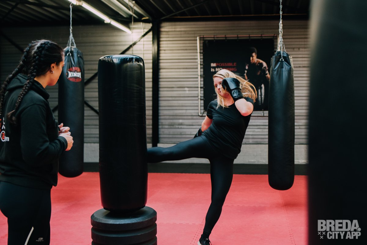 Na de H.I.I.T. en de BBB oefeningen is het tijd om te gaan kickboksen. Zelf kickboks ik al een tijdje en vind ik dit dan ook het leukste onderdeel van de training. Daarbij starten we met een stukje conditie waarbij ik zo veel mogelijk tegen de bokszak moet slaan en ervoor moet zorgen dat de bokszak "scheef" blijft hangen. Een mooie uitdaging!