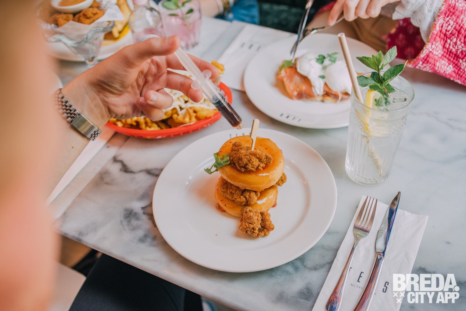 Als je van zoet houdt, zijn de 'Pornstar martini French toast' een absolute aanrader, met passievrucht, banaan, mango, Bastogne koek kruimels en natuurlijk een glaasje bubbels. De 'donut Fried chicken' als je niet kunt kiezen tussen zoet of hartig, wat is dit een fantastisch gerecht!