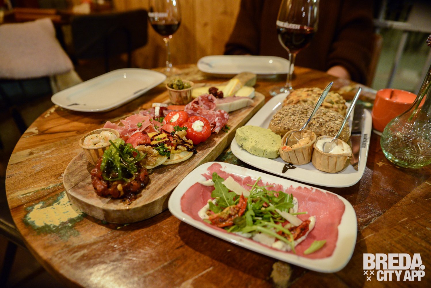 Als voorgerecht kiezen we voor een proeverijplankje voor twee personen bestaande uit kleine (borrel)gerechtjes om samen te delen. Een gezellig plankje waarop vlees-, kaas-, vis- en vegagerechtjes zijn gepresenteerd, bestaande uit serranoham, sopresa veneta, fuet, gamba tuinkruiden, knoflookolijven, pepersweet roomkaas, blini hummus pompoen, tonijn tartaar, carpaccio, drie Franse kazen en brood met smeersels.