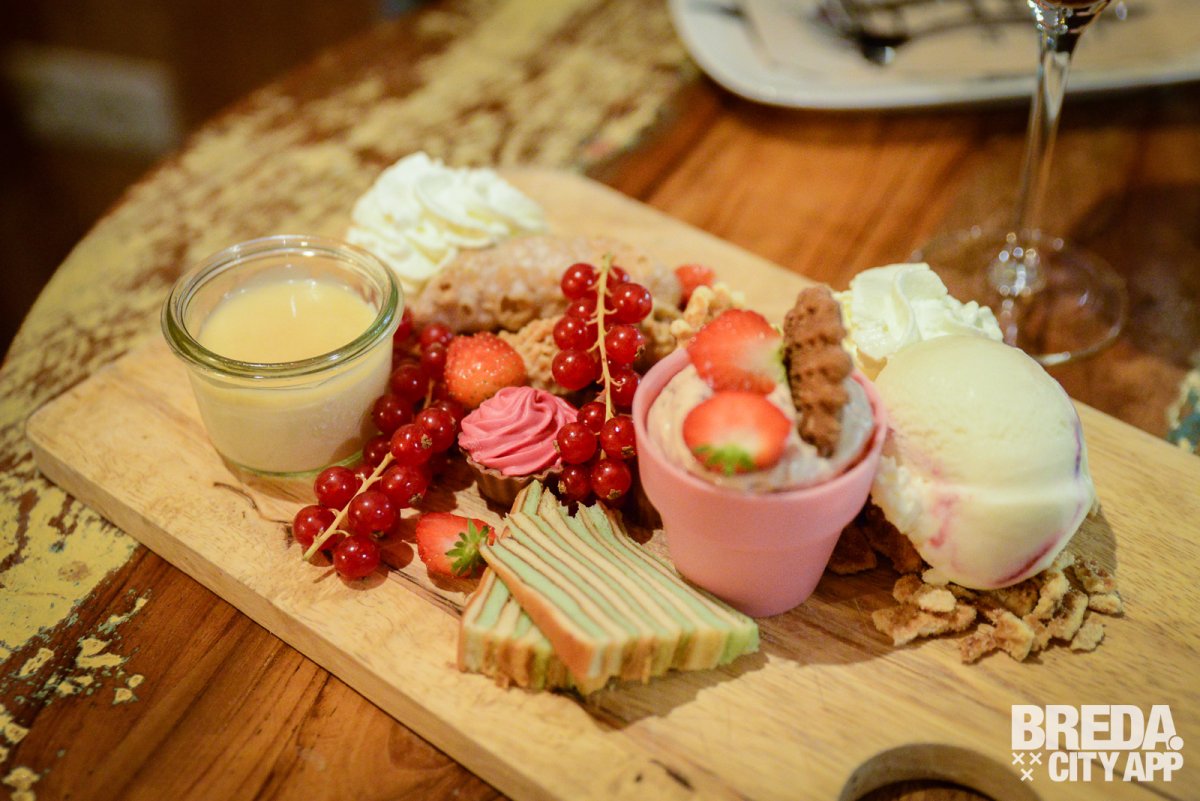 Als dessert kiezen we voor het verrassingsproeverijplankje. Hierbij raadt de gastvrouw mij de Espresso Martini aan; de perfecte cocktail om te combineren met het dessert, en omdat deze op basis van espresso is (in combinatie met wodka, Kahlúa en suikersiroop) ook de perfecte cocktail om de avond mee af te sluiten.