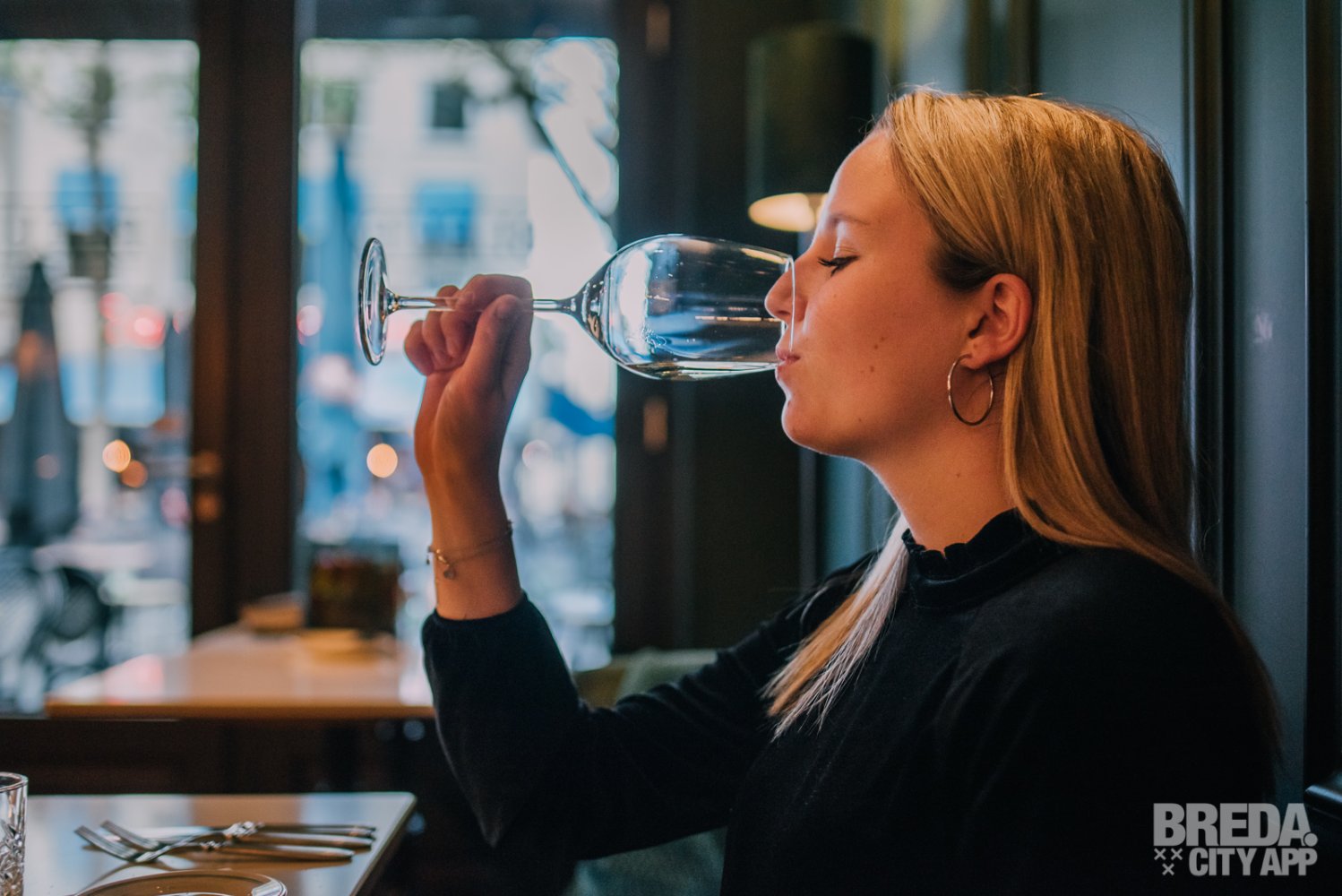 Bij binnenkomst worden we vriendelijk ontvangen door Enya en haar collega’s. Enya is onze gastvrouw voor vanavond en begeleidt ons naar onze tafel. We krijgen een mooie opgedekte tafel aan de voorkant van de Bistro. Enya geeft aan dat ze ons vanavond zal gaan verrassen met een heerlijk 3 gangen-menu. Enya vraagt of we bekend zijn met enige allergieën zodat ze hier in de keuken rekening mee kunnen houden. Super fijn, dat hier rekening mee gehouden kan worden. We beginnen deze avond met een heerlijk glas champagne waarvan de smaak ons goed bevalt, een lichte smaak en perfect om de avond mee te beginnen.