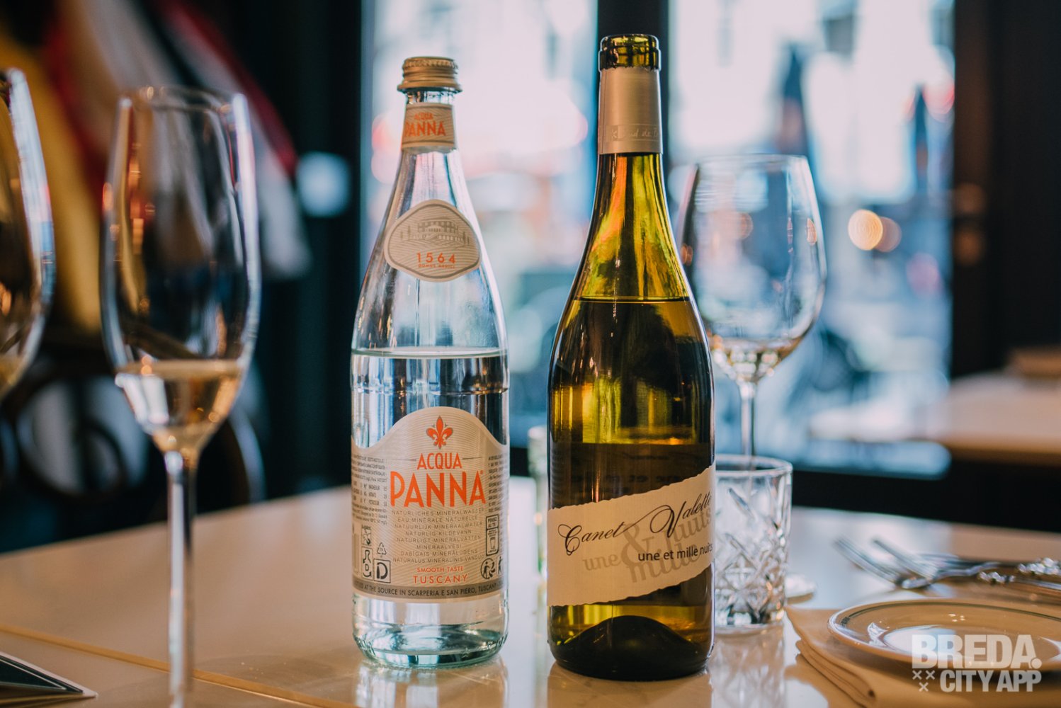 Wanneer onze bubbels op zijn, besluiten we over te stappen naar een witte wijn die past bij de aankomende gerechten. Enya adviseert ons over verschillende wijnen en geeft aan te gaan voor de biologische wijn; Canet Valette, Une et mille Nuits Blanc. Deze witte wijn bevat geen toegevoegde stoffen en is fris van smaak met een bloemige afdronk. Ook de geur van de wijn is erg lekker en ruikt een beetje naar lavendel. We zijn erg onder de indruk over de wijnkennis van Enya. Dankzij haar kennis weten we zeker dat we voor de goede wijn kiezen!