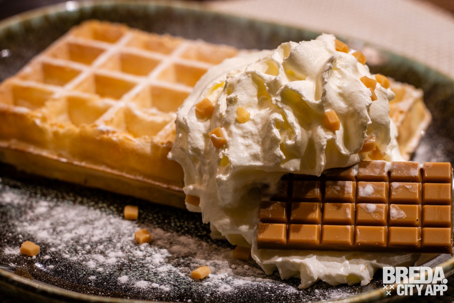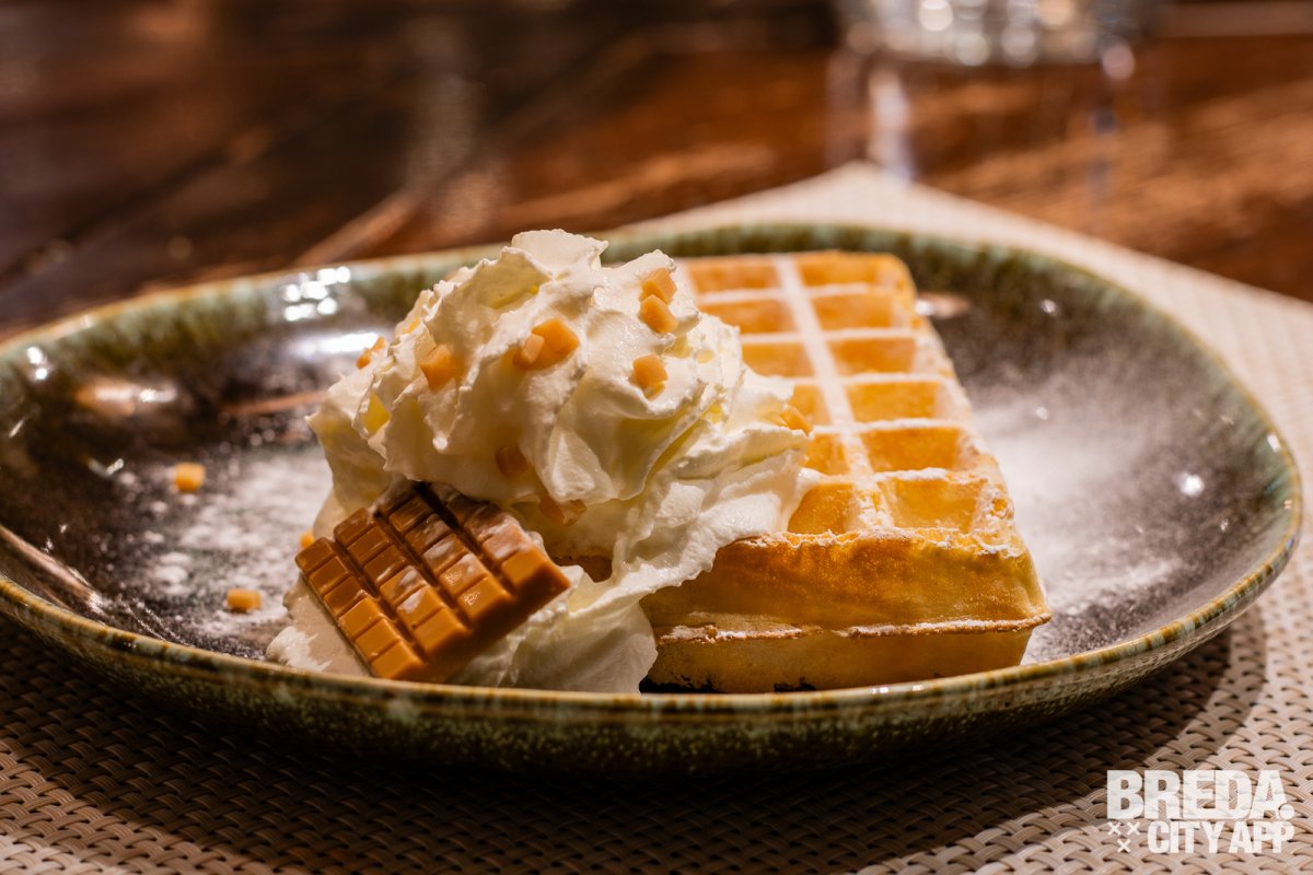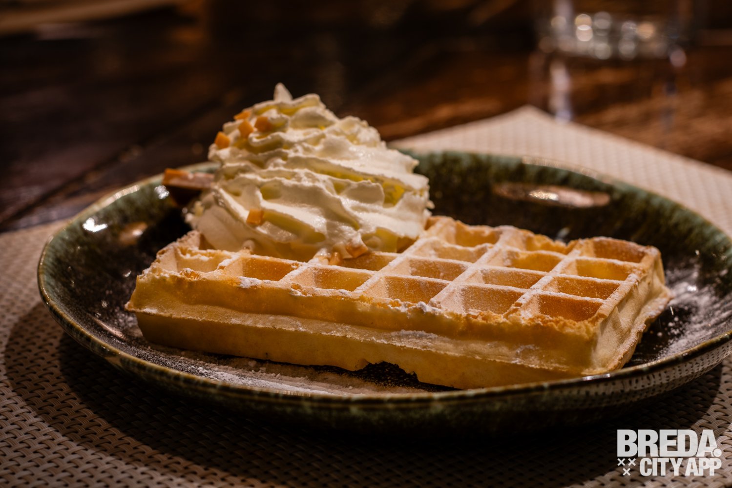 Als afsluiting worden we getrakteerd op een verleidelijke Brussels wafel, overgoten met een royale toef slagroom en een chocolade brick. De zoete verwennerij glijdt moeiteloos naar binnen.