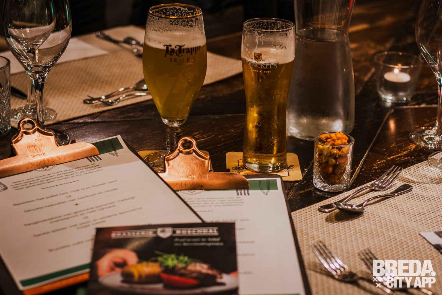 Bij Brasserie Boschdal, gelegen aan de Albatross Golfbaan in Prinsenbeek, genieten wij op deze herfstavond van een gezellige en smakelijke ervaring. De halfronde bar verwelkomt ons met een scala aan bieren, waaronder de verleidelijke Swinckels en het karakteristieke La Trappe Blond van de tap. Trots prijkt de fles met het donkere meesterwerk: Boschdal Quadrupel met een stoutmoedige 10% wat is uitgeroepen van het beste bier ter wereld.