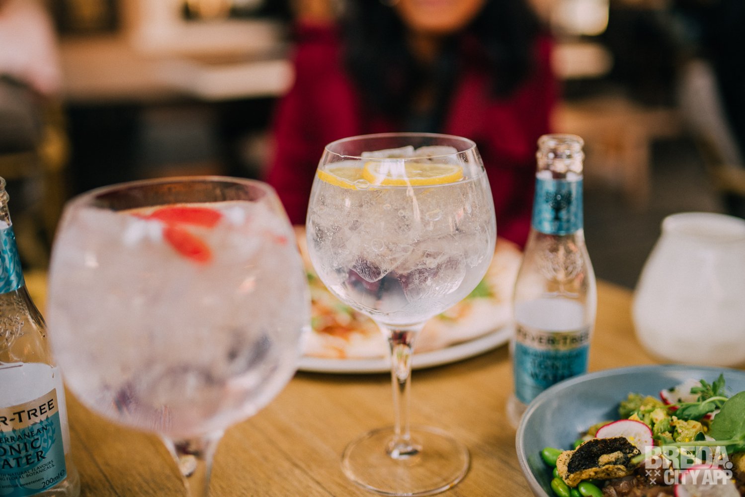 Onder het motto "nieuwe ronde, nieuwe drankjes" bestellen we twee gin-tonics met Gospel gin en Malfy Con Limone. De Gospel Gin komt van Brouwerij Jopen. De brouwers gebruiken pastinaak, hop en paradijszaad waardoor er een kruidige en zachte smaak ontstaat. De gin wordt geserveerd met  Fever-Tree Mediterranean Tonic en rode paprika. De Malfy Con Limone wordt geserveerd met garnituur van citroen en Fever-Tree Mediterranean Tonic Water.