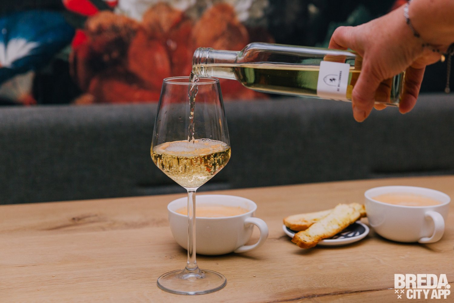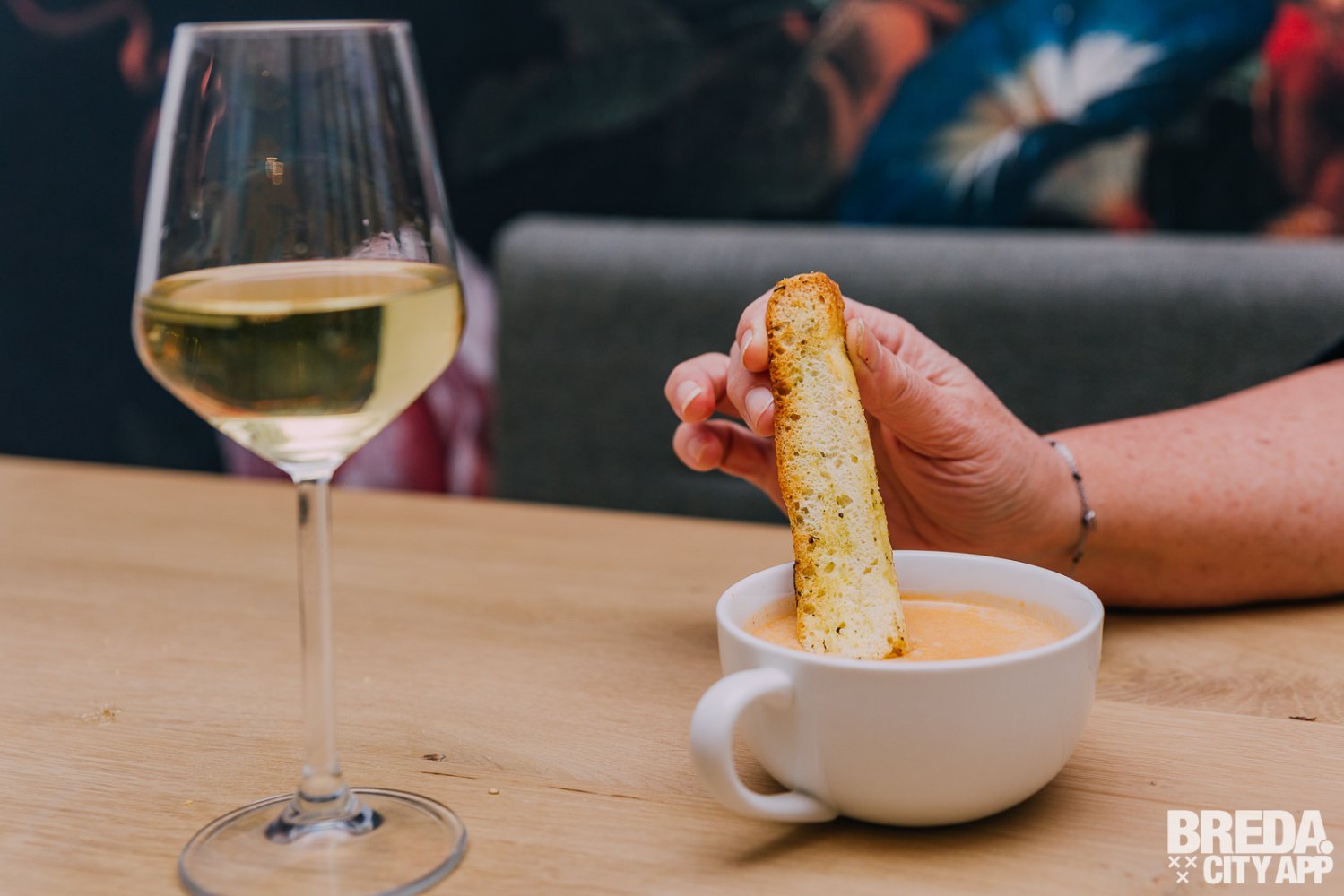 Zeg ‘Bisque’ en wij staan vooraan. Deze schaaldierensoep schudt, mits goed bereid, al je smaakpapillen wakker van genot. De gamba’s, foreleitjes en croutons gaan in een voorverwarmde kom en ondertussen warmen we de soep op. Giet, zit, geniet… Deze bisque is precies zoals we hem willen, met krachtige smaken die onze tong doen tintelen. De goudgele Viognier die we erbij drinken is soepel en bloemig en heeft een mooie zachte afdronk. Toch blijft hij goed overeind naast deze eigenzinnige Bisque. Heerlijk!