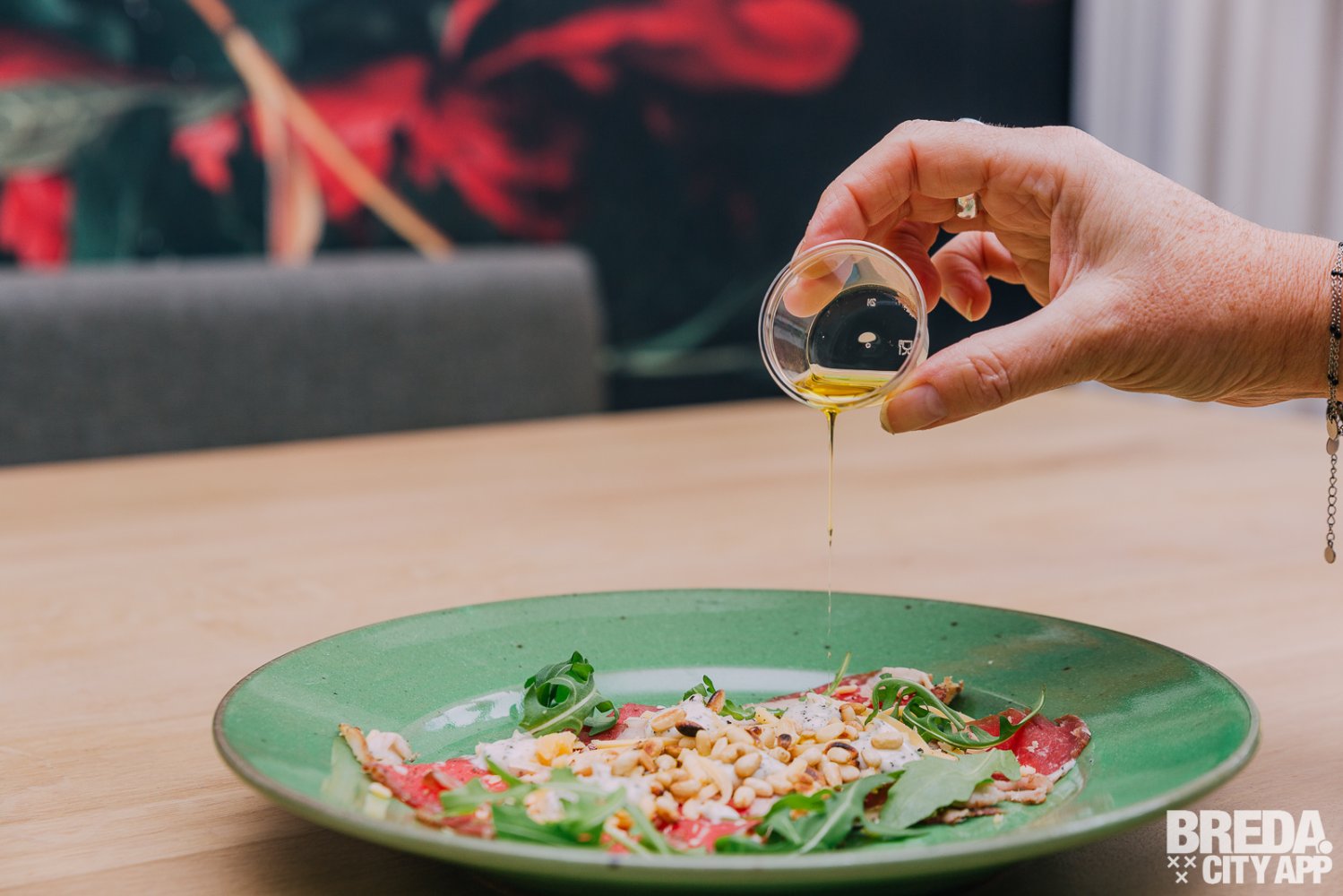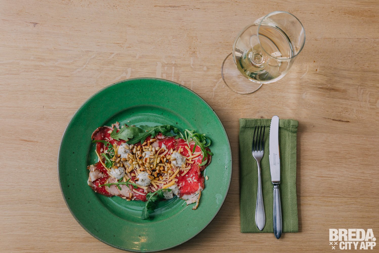 Het broodje komt uit in de oven, de wijn is ingeschonken, tijd om het voorgerecht te serveren. Denk niet dat je bij het Proeverij menu veel in de keuken staat. Als de oven aanstaat kun jij verder achterover leunen. Deze week staat er een bestseller op het menu: carpaccio. Denk aan de lekkerste carpaccio die je ooit op hebt, en dan nog een tikkie lekkerder. Ja dat kan echt! Een flinke portie malse gerookte Rib-Eye, geserveerd met een romige truffelmayonaise, geroosterde pijnboompitjes en Reypenaar VSOP. De frisse Chardonnay die erbij wordt geschonken heeft exotisch fruit in de neus, subtiele citrustinten en een fluweelzachte afdronk. Een mooie match bij de intense smaak van dit fijn gerecht.