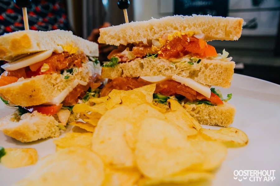 Er is keuze tussen wit, bruin of maïsbrood. Voor de Club Sandwich hebben wij gekozen voor witbrood en de sneden zijn rijkelijk belegd. Je proeft dat de zalm echt vers is en samen met de komkommer, tomaat en een gekookt eitje is dit een heerlijk lunchgerecht. Bij de Club Sandwich worden naturel chips op het bord geserveerd, een lekkere combinatie.