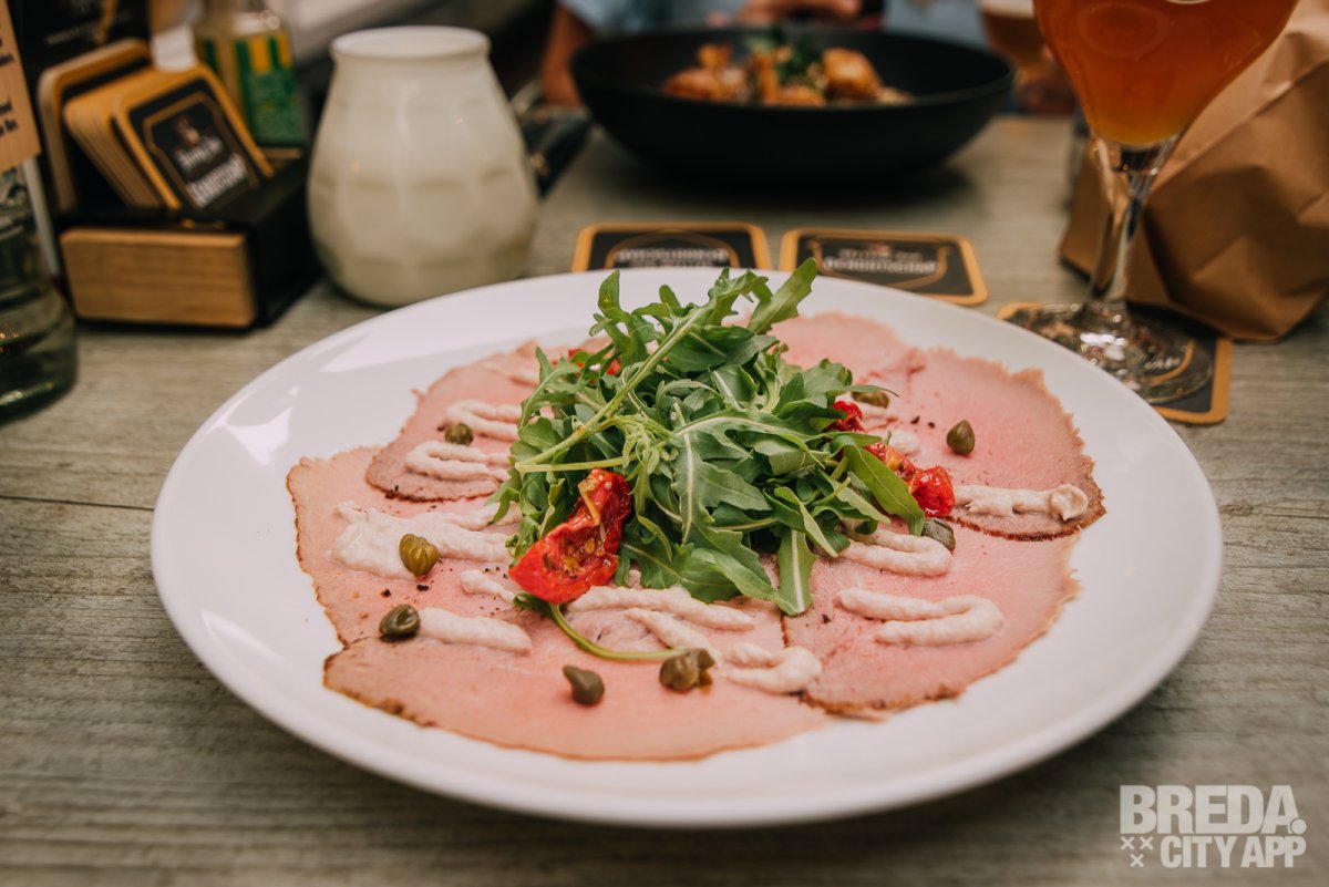 De vitello tonato van kalfsvlees is gebakken in rosé. Eén van onze all time favorites! Dit is een voorgerecht wat ál-tijd goed is en ook deze keer valt het goed in de smaak. Het vlees is heerlijk mals! Bij dit voorgerecht drinken we een Jopen Mooie Nel IPA. Een lekker fruitig biertje voor op deze mooie dag en een uitstekende keuze bij dit gerecht.