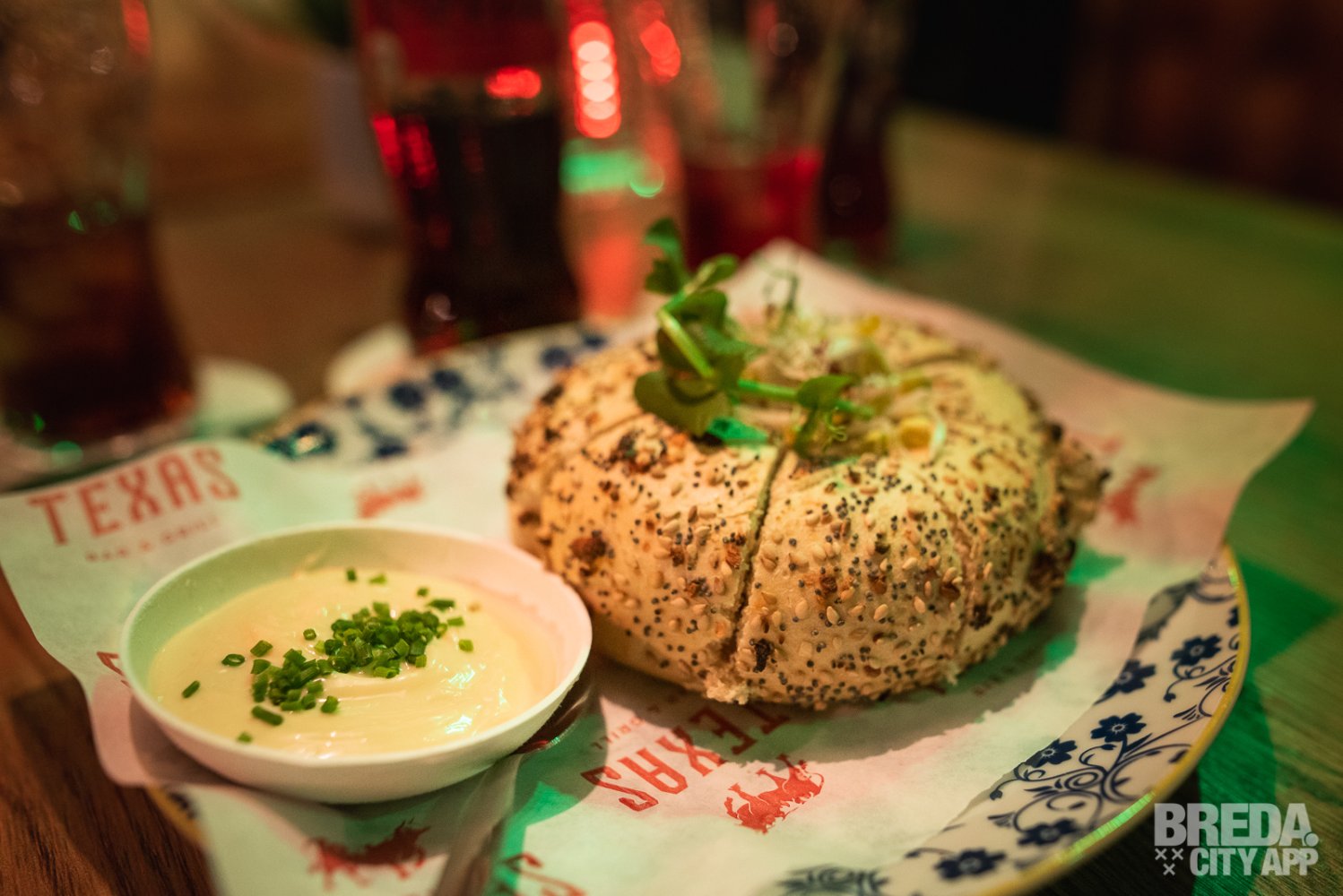 We lopen binnen bij Texas Bar & Grill en het voelt alsof we zo Texas binnenlopen. Alles aan de inrichting van deze zaak klopt: de kleuren, de materialen en laten we de grote koe die aan het plafond hangt midden in de zaak zéker niet vergeten; aan alle details is gedacht. We worden naar onze tafel begeleid en zien veel mensen in de zaak genieten. Van jong tot oud, van familie tot partners: er zit een mengelmoes van samenstellingen en dat laat gelijk zien dat Texas Bar & Grill voor iedereen leuk is.