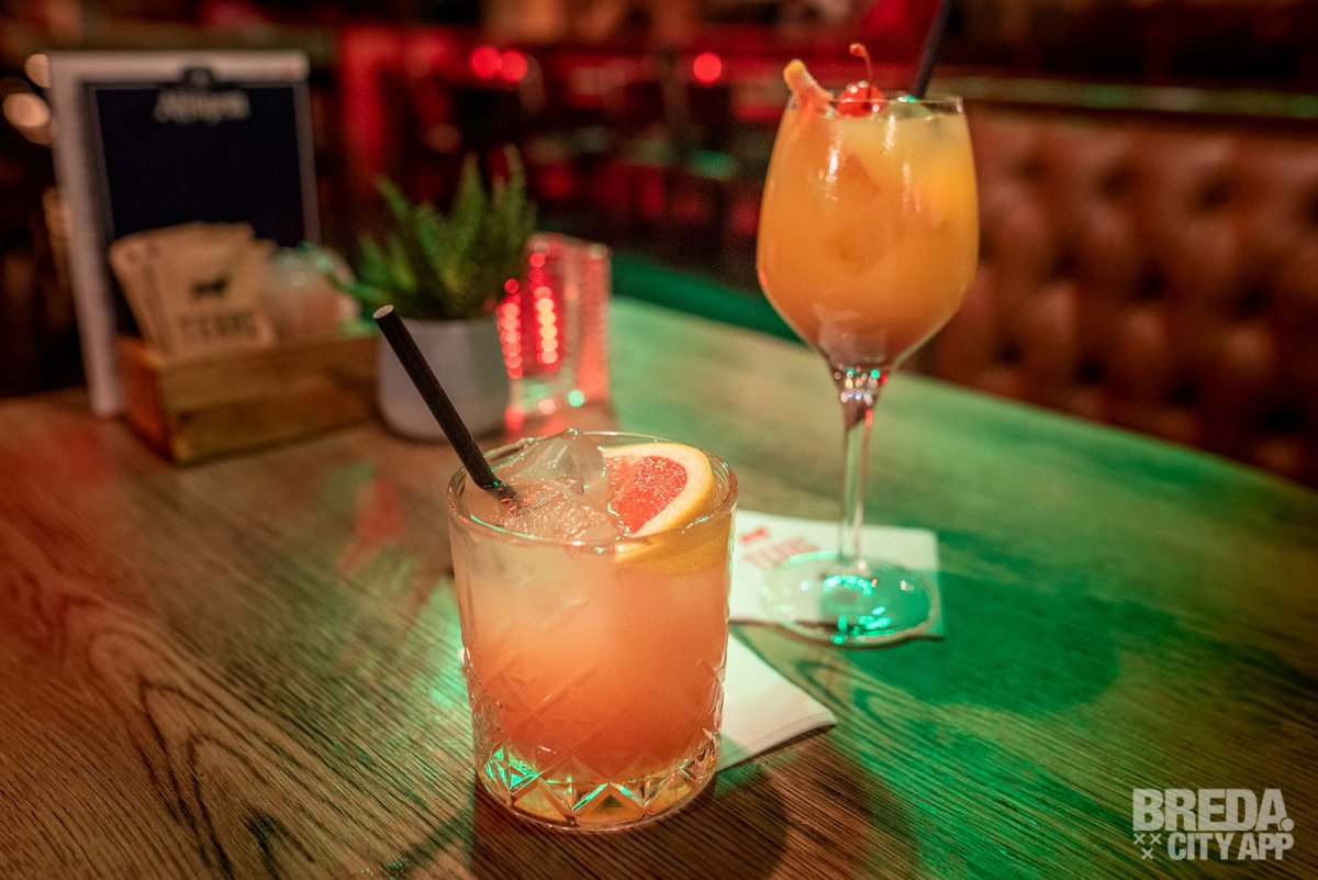 Ondertussen hebben we ons laten aanbevelen door de gastheer en hij heeft twee cocktails voor ons gemaakt. Ook vertelt hij ons dat hij een half jaar in Texas gewoond heeft en dat Texas Bar & Grill précies op de steakhouses lijkt die ze in Texas hebben, hoe leuk! Dan serveert hij onze cocktails. De Texas Sunrise en de Virgin Paloma komen op tafel. De Texas Sunrise is een cocktail die hij speciaal voor ons heeft samengesteld en is een mengsel van wodka, rum en zoete, fruitige sappen. De Virgin Paloma is de alcoholvrije versie van de meest gedronken cocktail in Texas en is bovendien erg lekker.