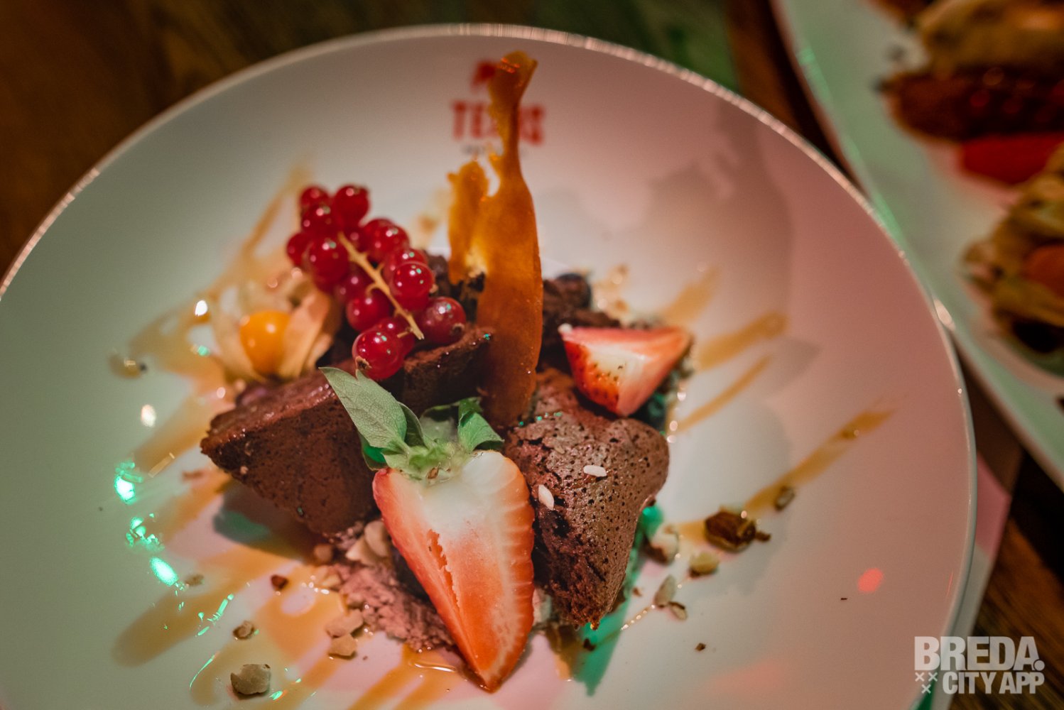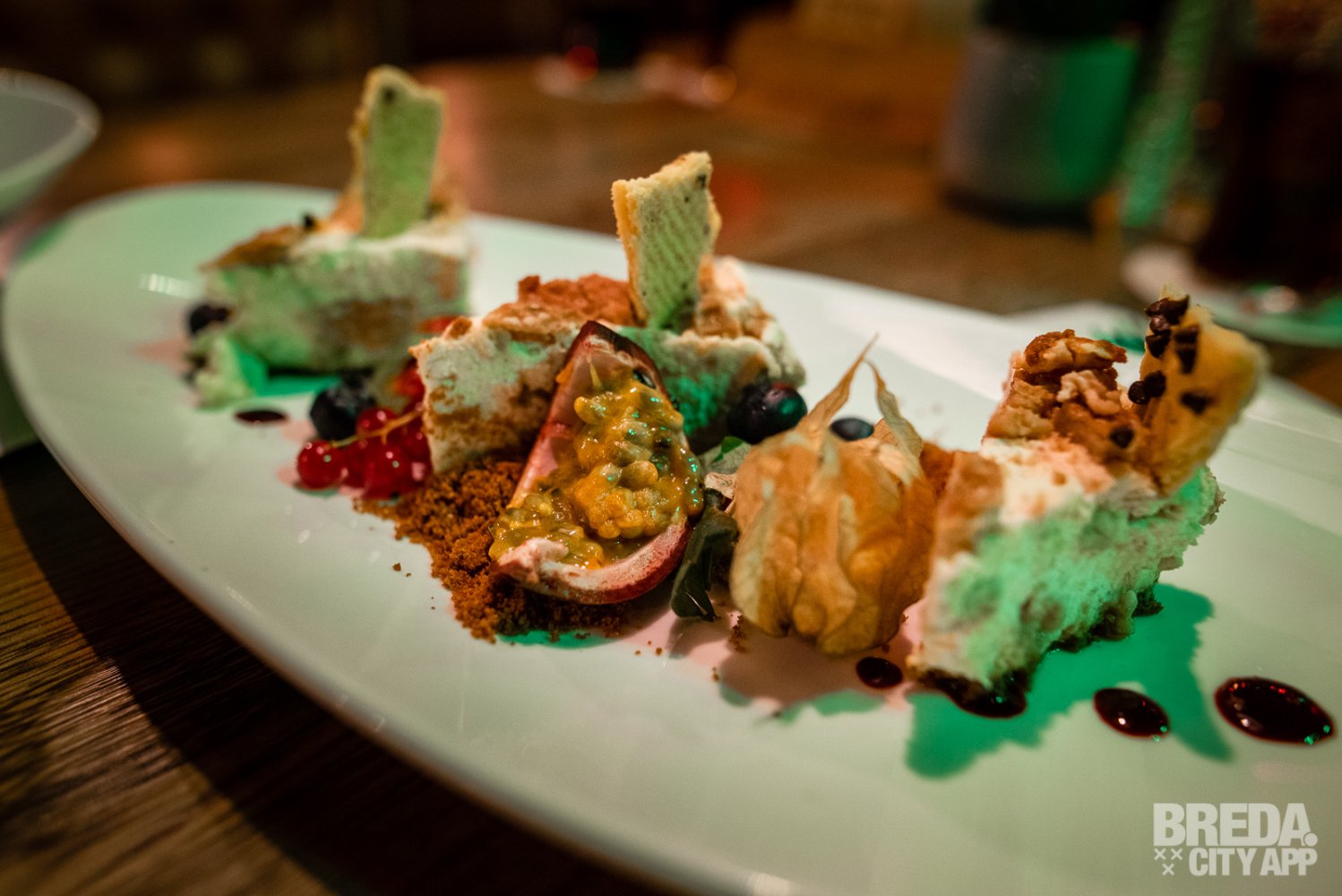 We hebben al genoeg op, maar de desserts zien er zó lekker uit dat we toch nog besluiten om er een te bestellen. We bestellen de zelfgemaakte brownie en de zelfgemaakte cheesecake en deze gerechten zien er enorm goed uit. De brownie wordt geserveerd met karamel, crisp en fruit. Het bord is mooi opgemaakt en de brownie heeft een lekker knapperig korstje, maar is van binnen lekker zacht. Ook de cheesecake is erg lekker en de gastheer vertelt ons dat ze elke dag(!) een andere smaak cheesecake hebben. Dit keer is het een stroopwafel cheesecake en deze wordt geserveerd met kandijkoek en fruit. De cheesecake is lekker romig en heeft een unieke opmaak. Een echte lust voor het oog en bijna zonde om op te eten.