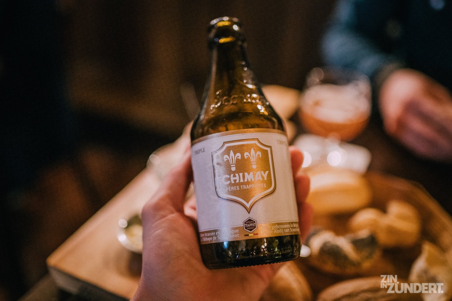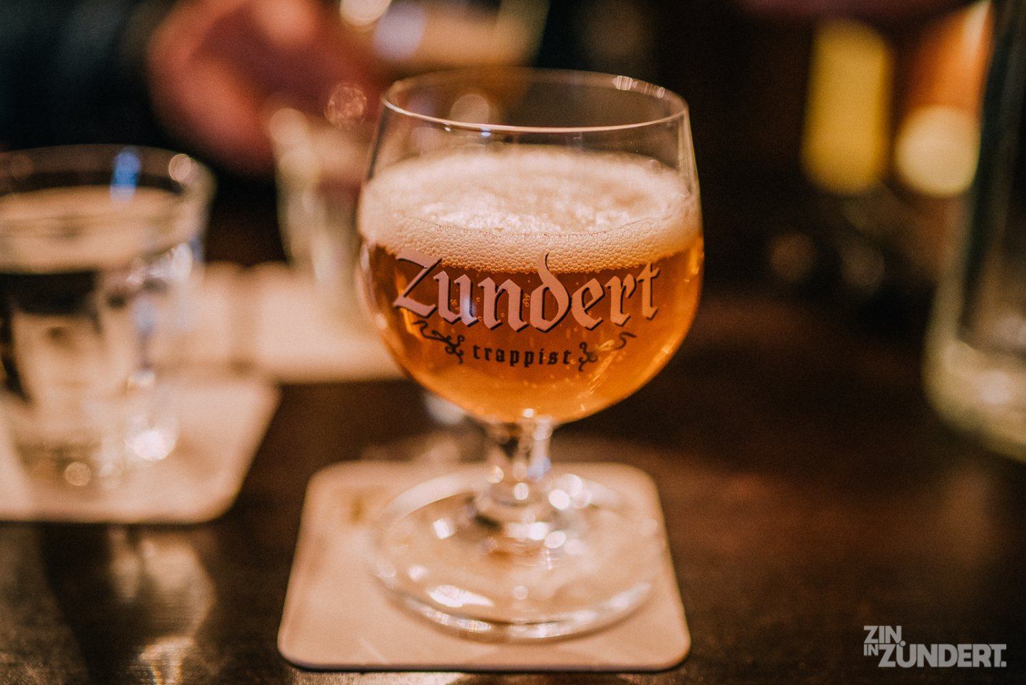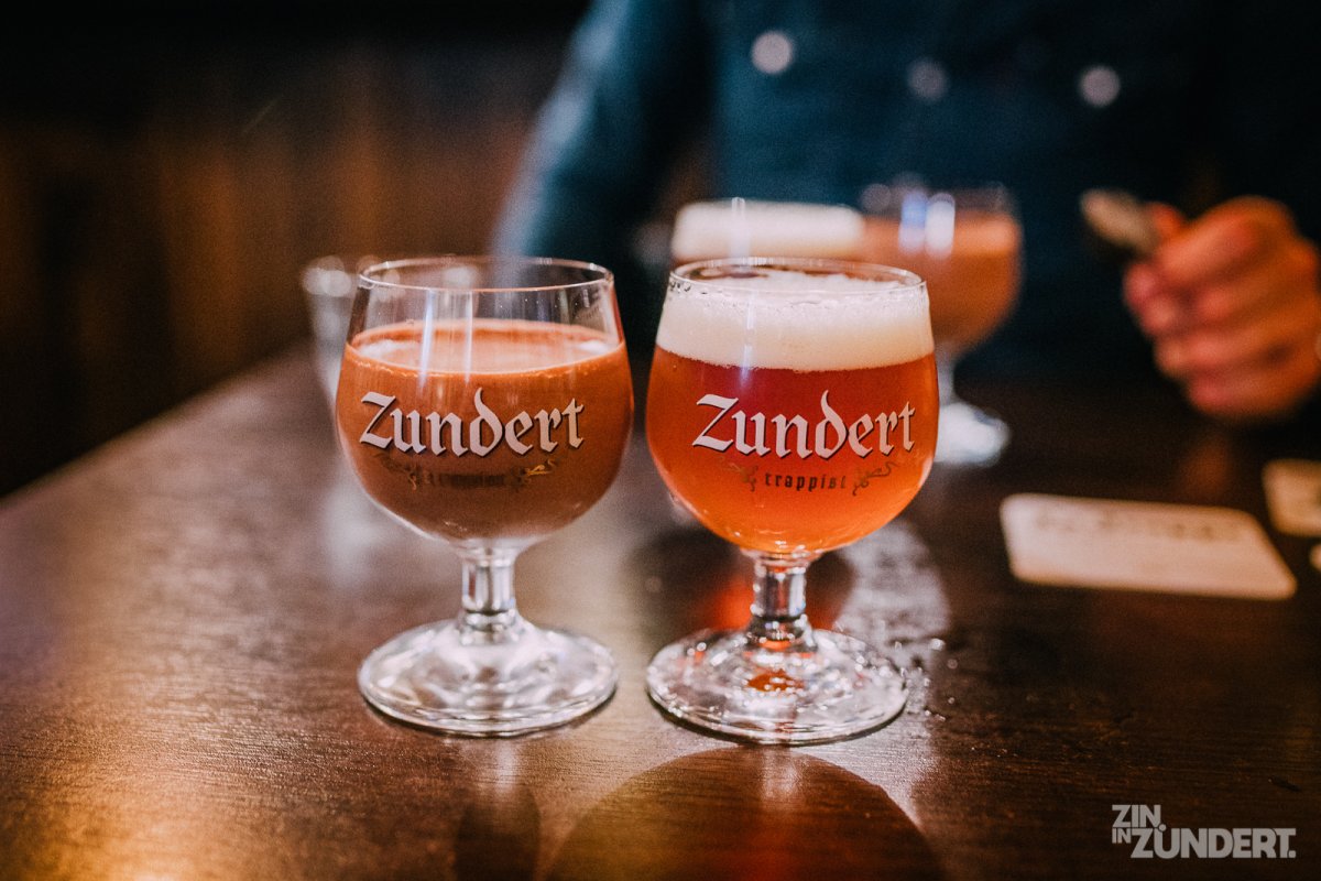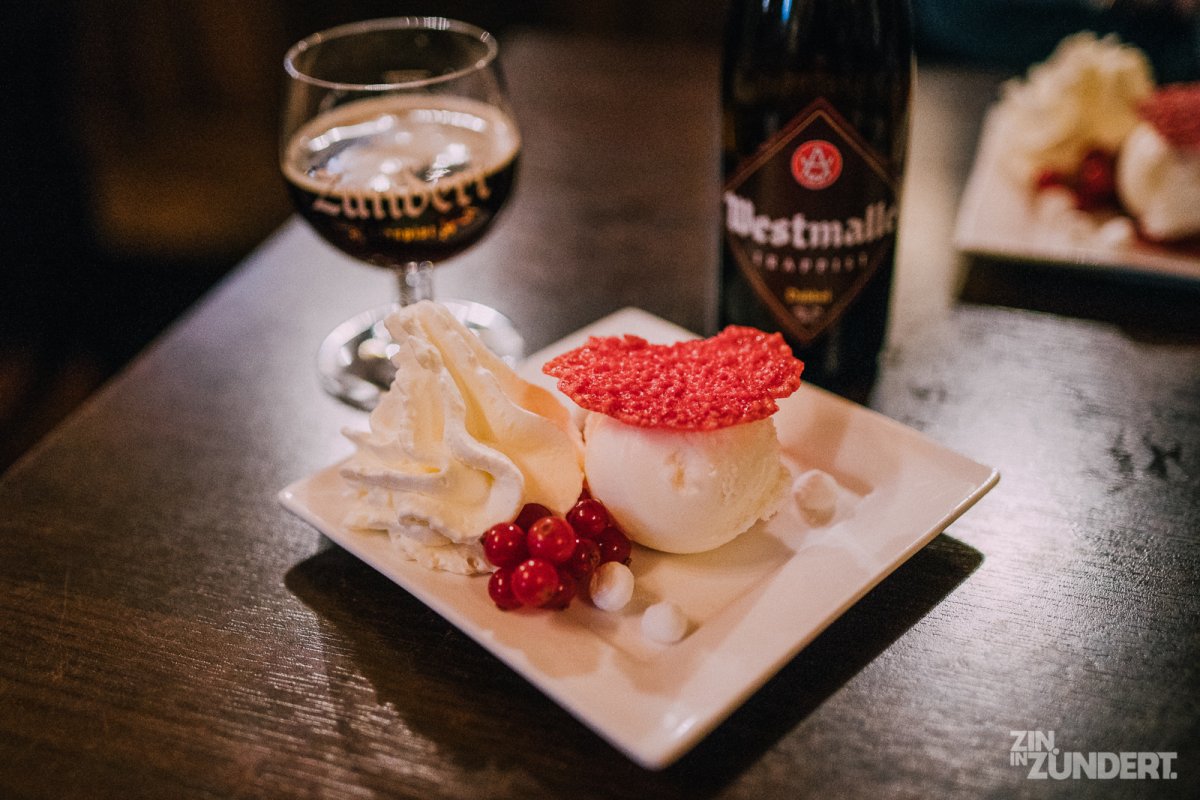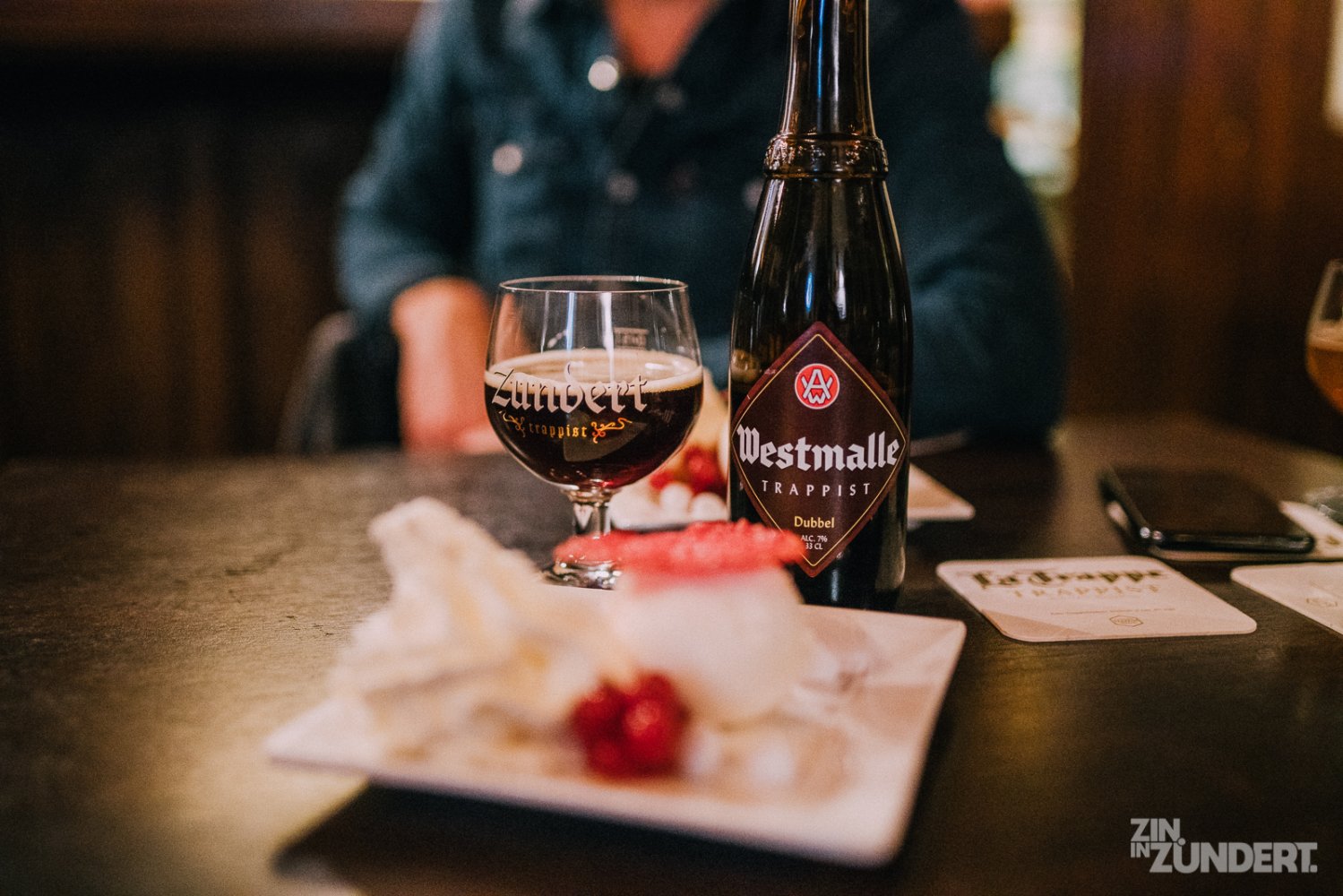 Ter afsluiting van het diner krijgen we de Zundert Trappist 8. Zundert is een amberkleurig Nederlands trappistenbier van hoge gisting. Het bier wordt gebrouwen in de Trappistenbrouwerij De Kievit van de Abdij Maria Toevlucht in Zundert. De smaak is bitterzoet, kruidig maar toch fruitig. Dit heerlijke trappistenbier heeft een alcoholpercentage van 8%. We eten hierbij een chocolademousse, die is gemaakt met een Zundert Trappist. Een heerlijke combinatie die je zeker een keer moet proeven!