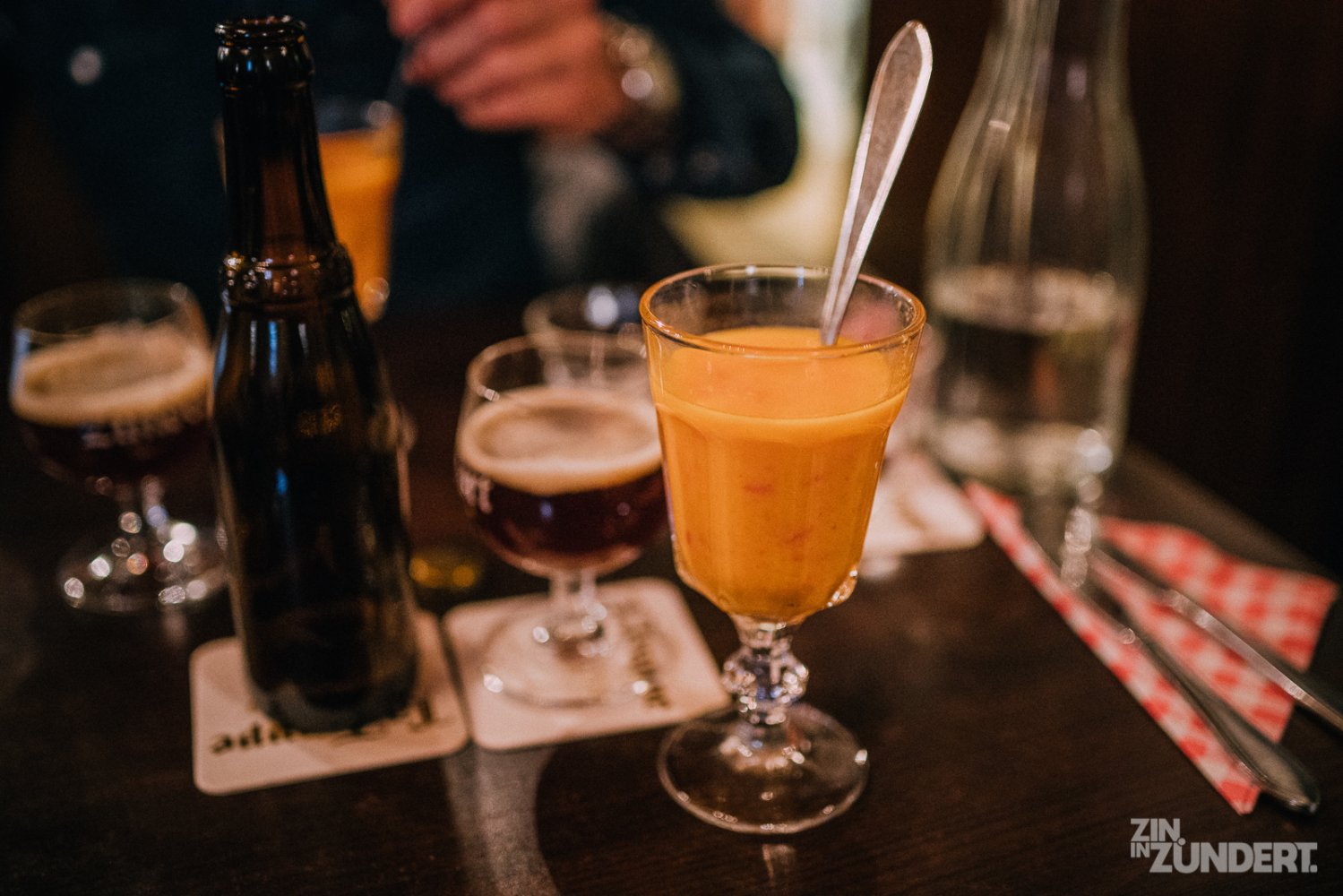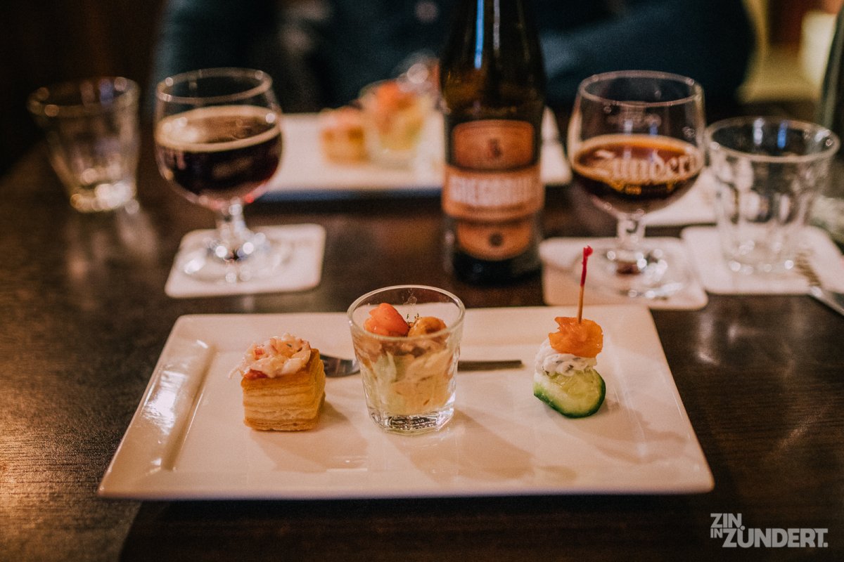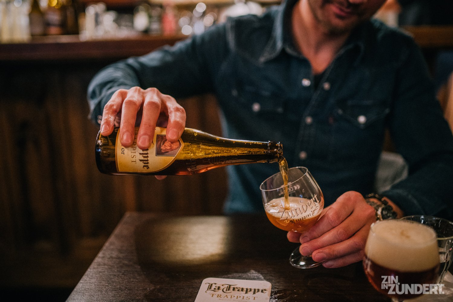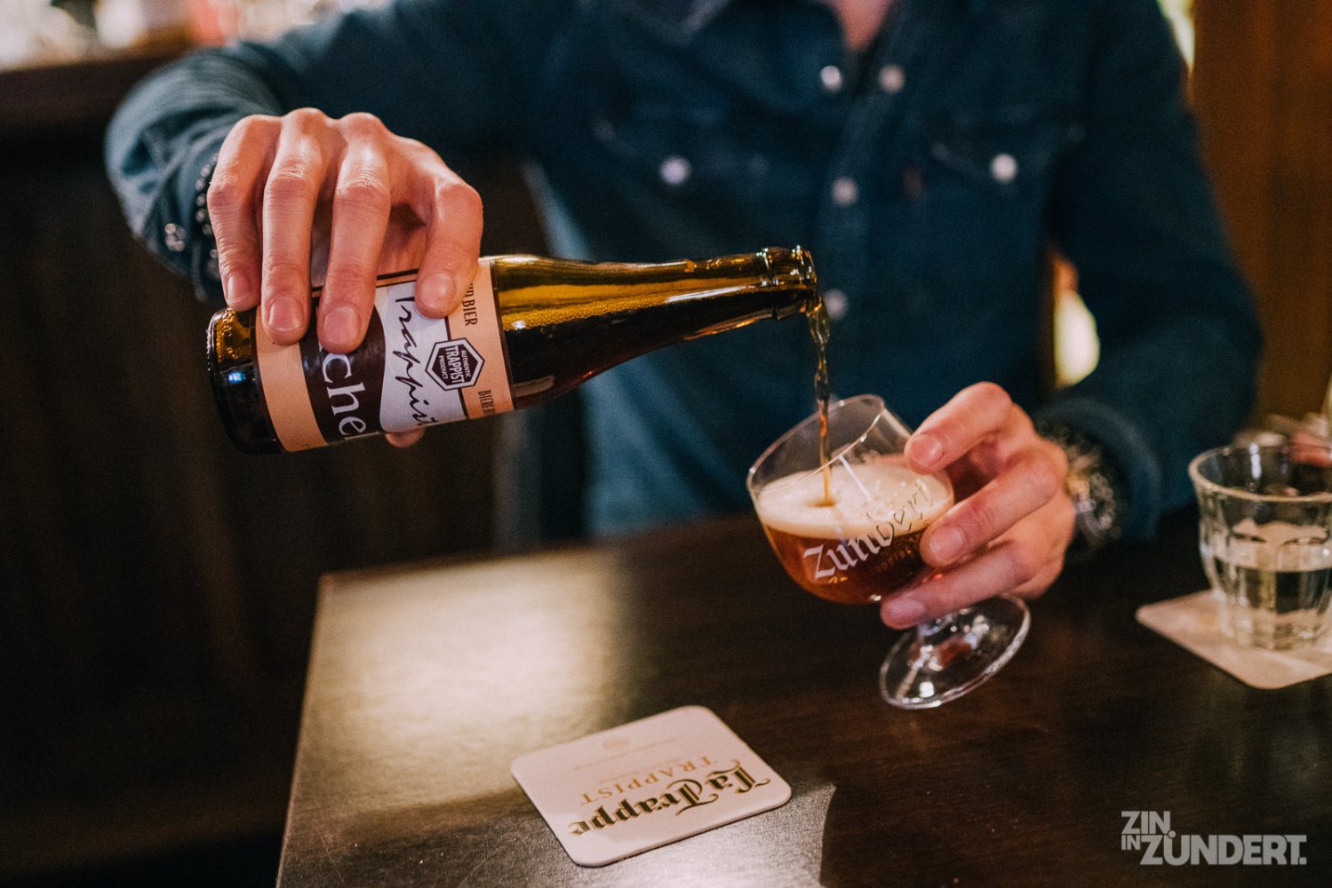 Ter afsluiting van het diner krijgen we de Zundert Trappist 8. Zundert is een amberkleurig Nederlands trappistenbier van hoge gisting. Het bier wordt gebrouwen in de Trappistenbrouwerij De Kievit van de Abdij Maria Toevlucht in Zundert. De smaak is bitterzoet, kruidig maar toch fruitig. Dit heerlijke trappistenbier heeft een alcoholpercentage van 8%. We eten hierbij een chocolademousse, die is gemaakt met een Zundert Trappist. Een heerlijke combinatie die je zeker een keer moet proeven!