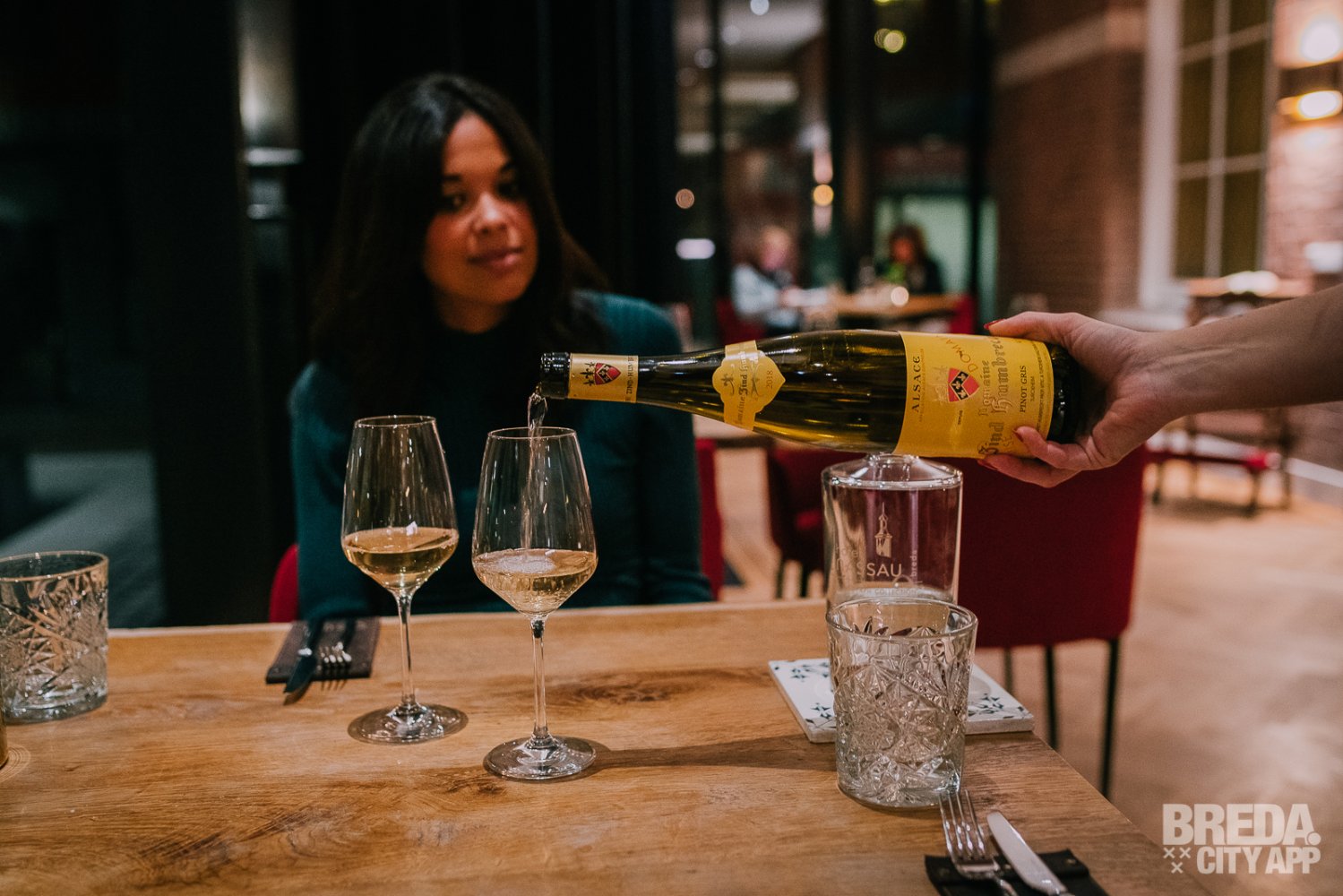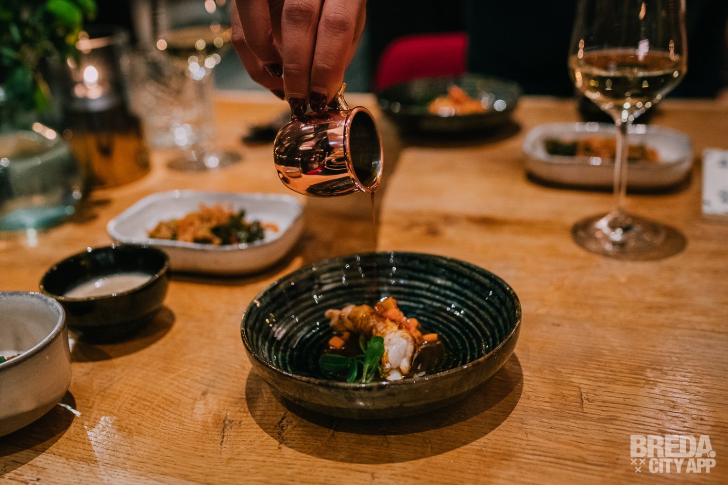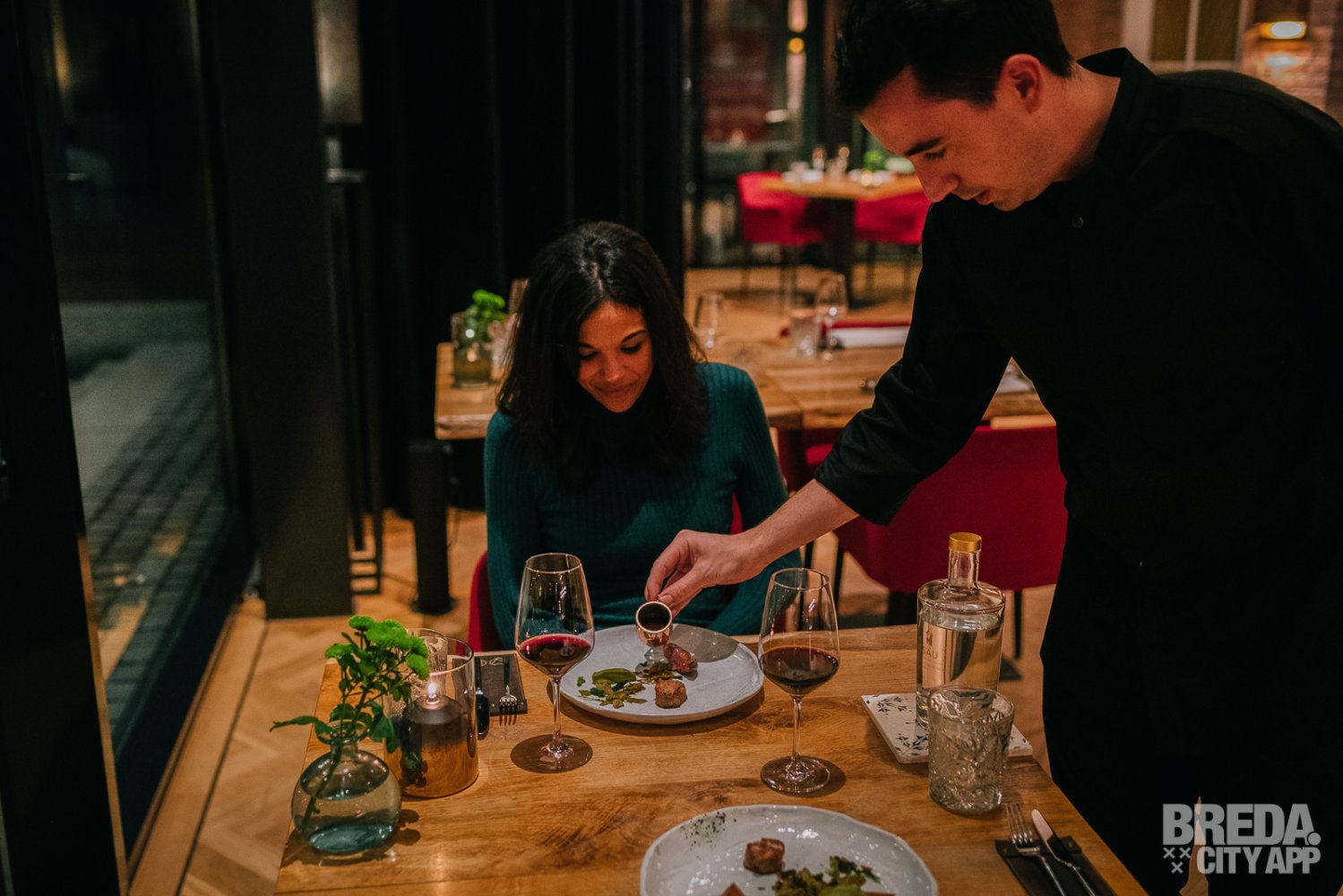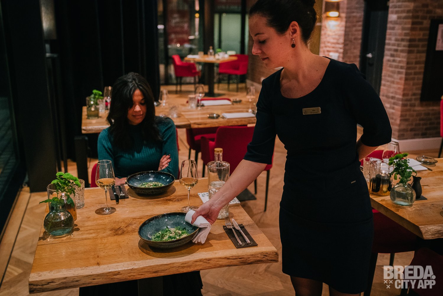 Liefdegesticht is het restaurant van Hotel Nassau Breda en de plek om je culinaire lusten te bevredigen. Bij binnenkomst worden we vriendelijk ontvangen door onze gastvrouw Nina. We nemen plaats aan een gezellige tafel met uitzicht op het water. De culinaire reis starten we met zuurdesembrood geserveerd met gerookte boter en grof zeezout. Het brood is nog warm en heerlijk in combinatie met de luchtige boter. De rooksmaak is subtiel aanwezig maar overheerst niet.