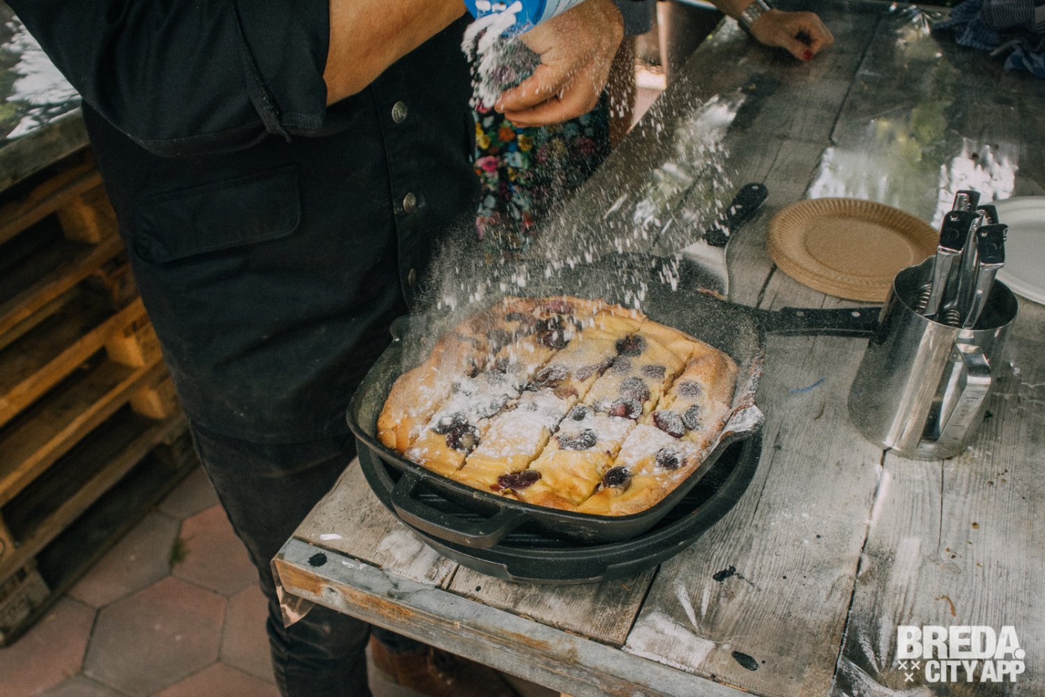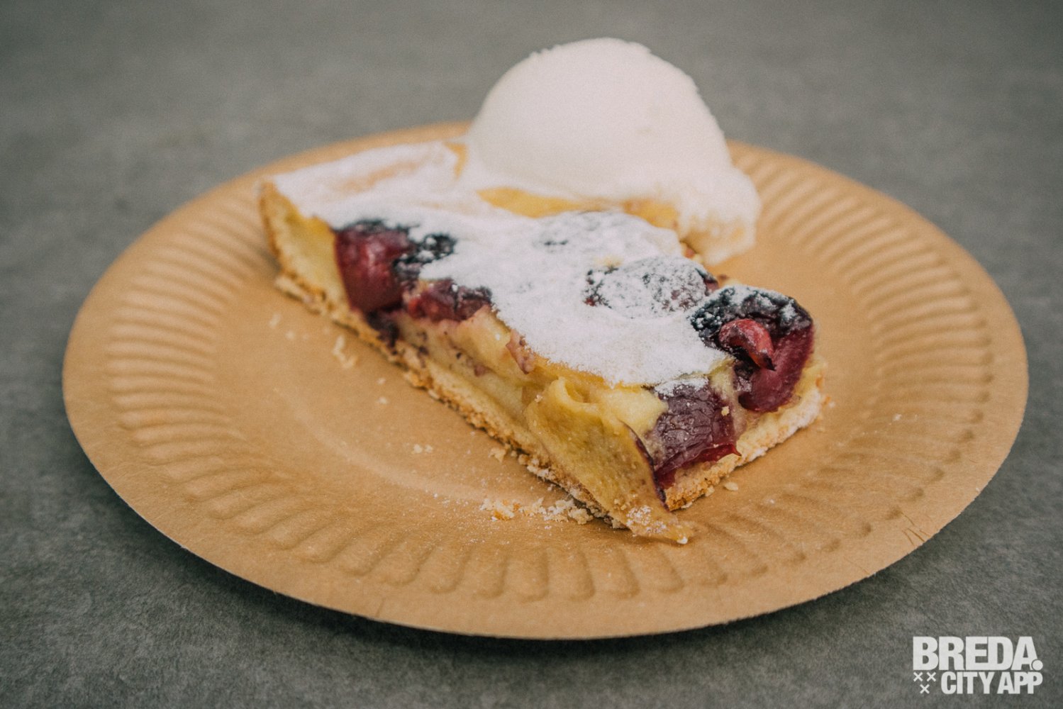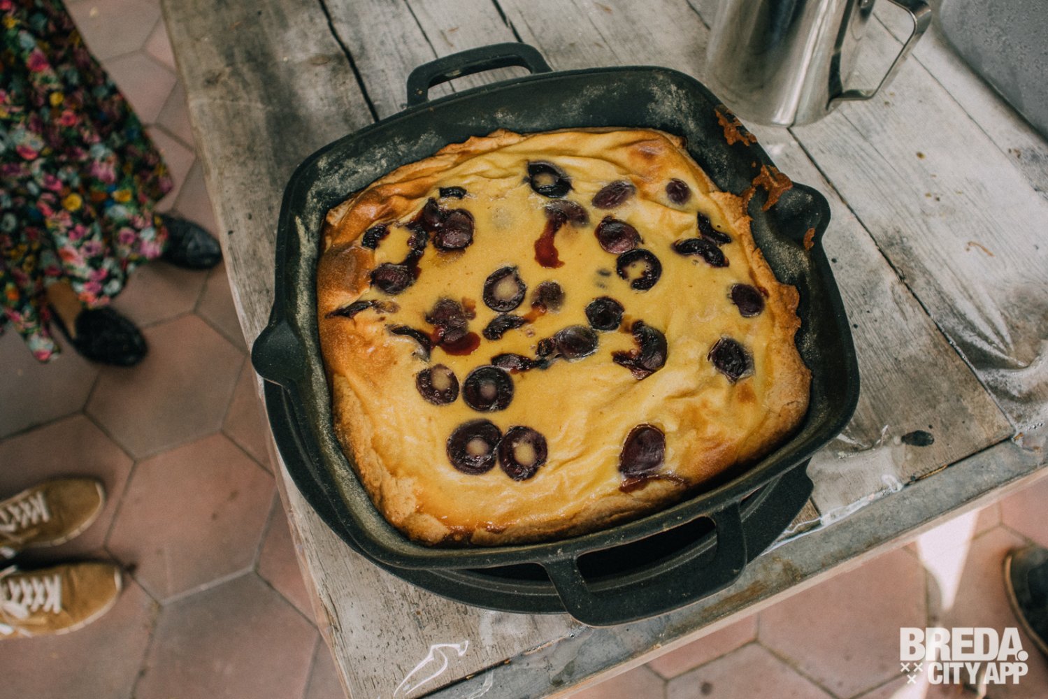 De vierde groep gaat beginnen met het nagerecht; een heerlijke kersenclafoutis met vanille roomijs. Dit blijkt dus een taart te zijn! Wie had ooit gedacht dat je een taart kan bakken op een bbq? We worden ingedeeld in groep 4 en hebben het erg gezellig met 2 andere deelnemers. gebroederlijk maken we het gerecht klaar. Danny gaart een taart op The Basterd en een taart op de Napoleon zodat we kunnen zien dat beiden geschikt zijn om taarten te bakken. Dries zorgt dat alle ingrediënten aangevuld worden, vuile messen worden opgehaald en schone planken worden gebracht. Danny loopt rond om te helpen en vragen te beantwoorden. Ondertussen lopen we eens naar de buren om te kijken hoe het met de andere gerechten staat. Gezellig kletsend komen we er achter dat er mensen vanuit België zijn gekomen maar ook Ridderkerk en Rotterdam.