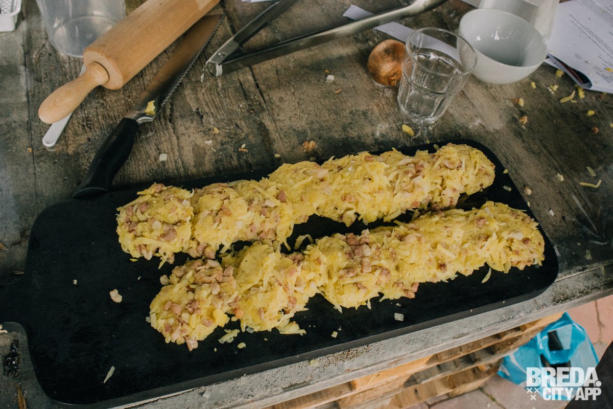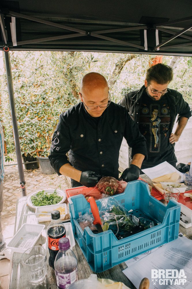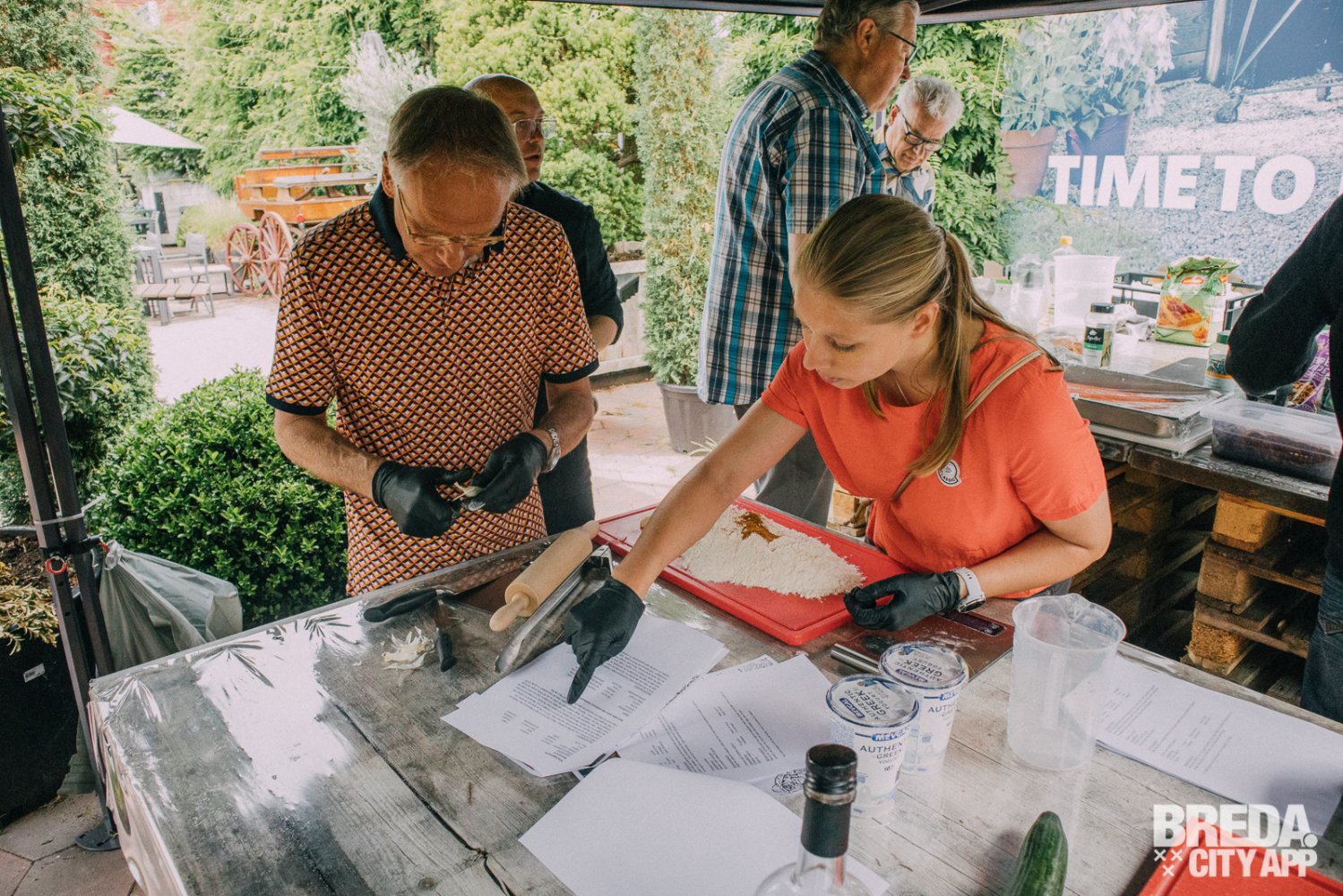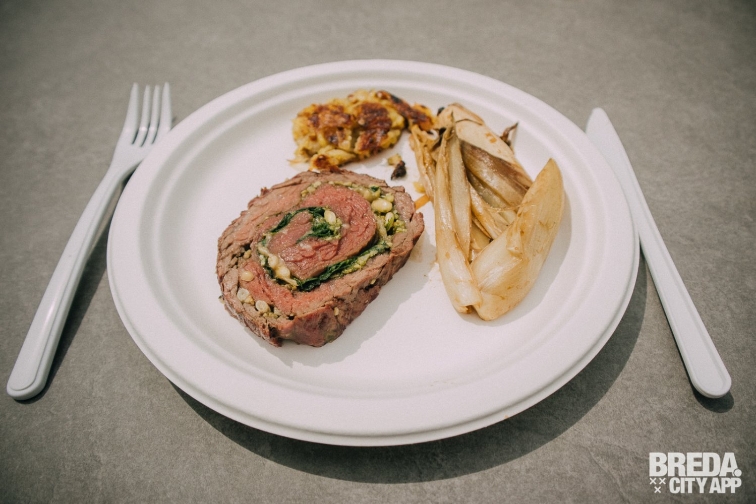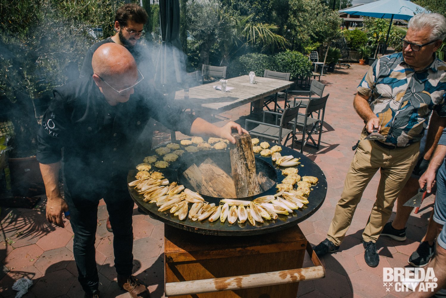 Twee groepen beginnen ondertussen aan het hoofdgerecht; bavette carpaccio-rollade met rösti en gegrilde witlof. Prachtige stukken vlees worden er bereid. Met veel geduld gaart het vlees waarbij heerlijke geuren vrijkomen. Eerst wordt het vlees op de Ofryr gegaard om vervolgens na te garen op the Basterd. De rösti wordt bereid en ook de witlof wordt gegrild. Deze worden ook op de Ofry bereid. Tijdens het bereiden loopt het water al in onze mond. Het geeft ons veel zelfvertrouwen dat we dit zelf zo mooi klaargemaakt hebben. Dat gaat straks thuis zeker ook lukken!