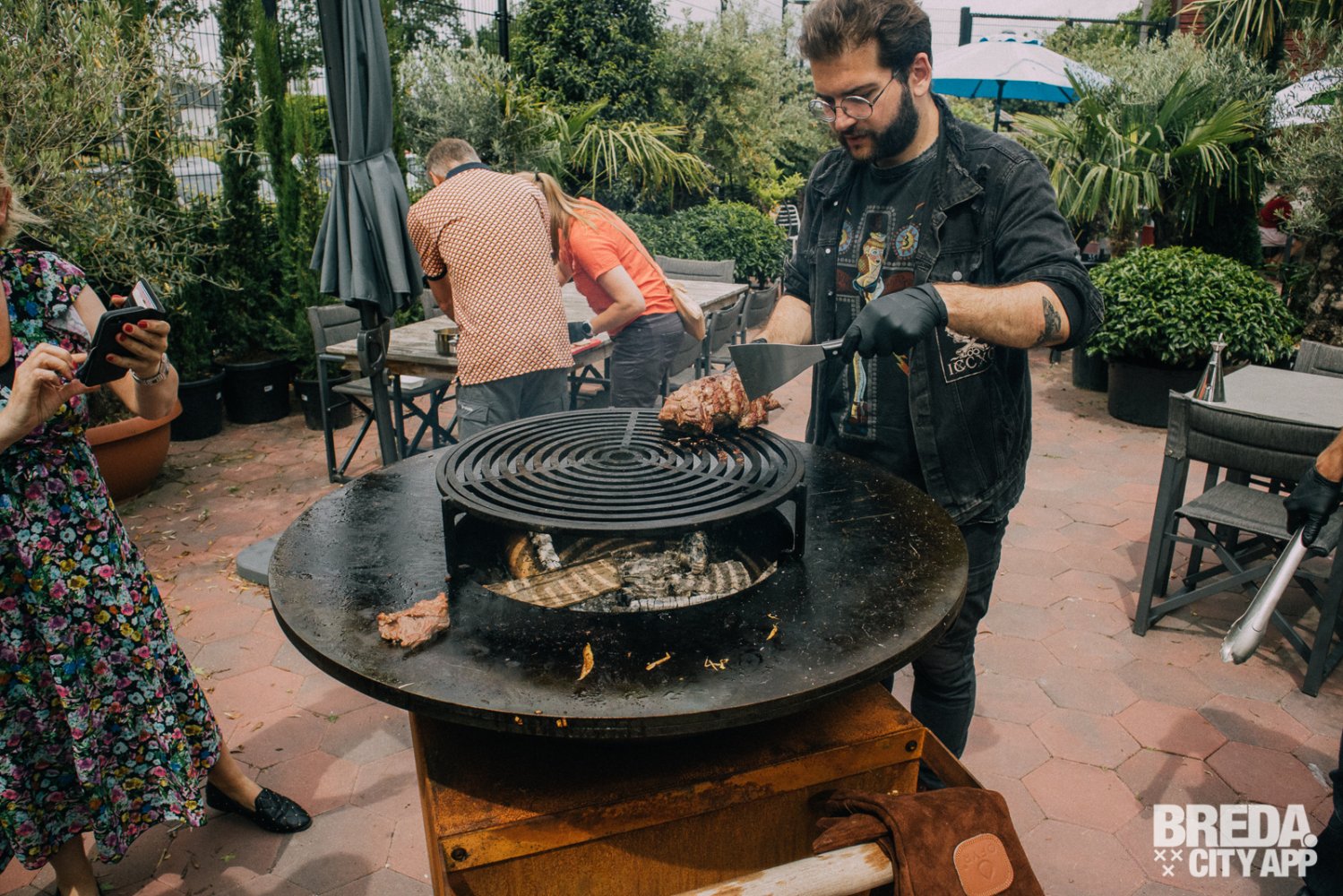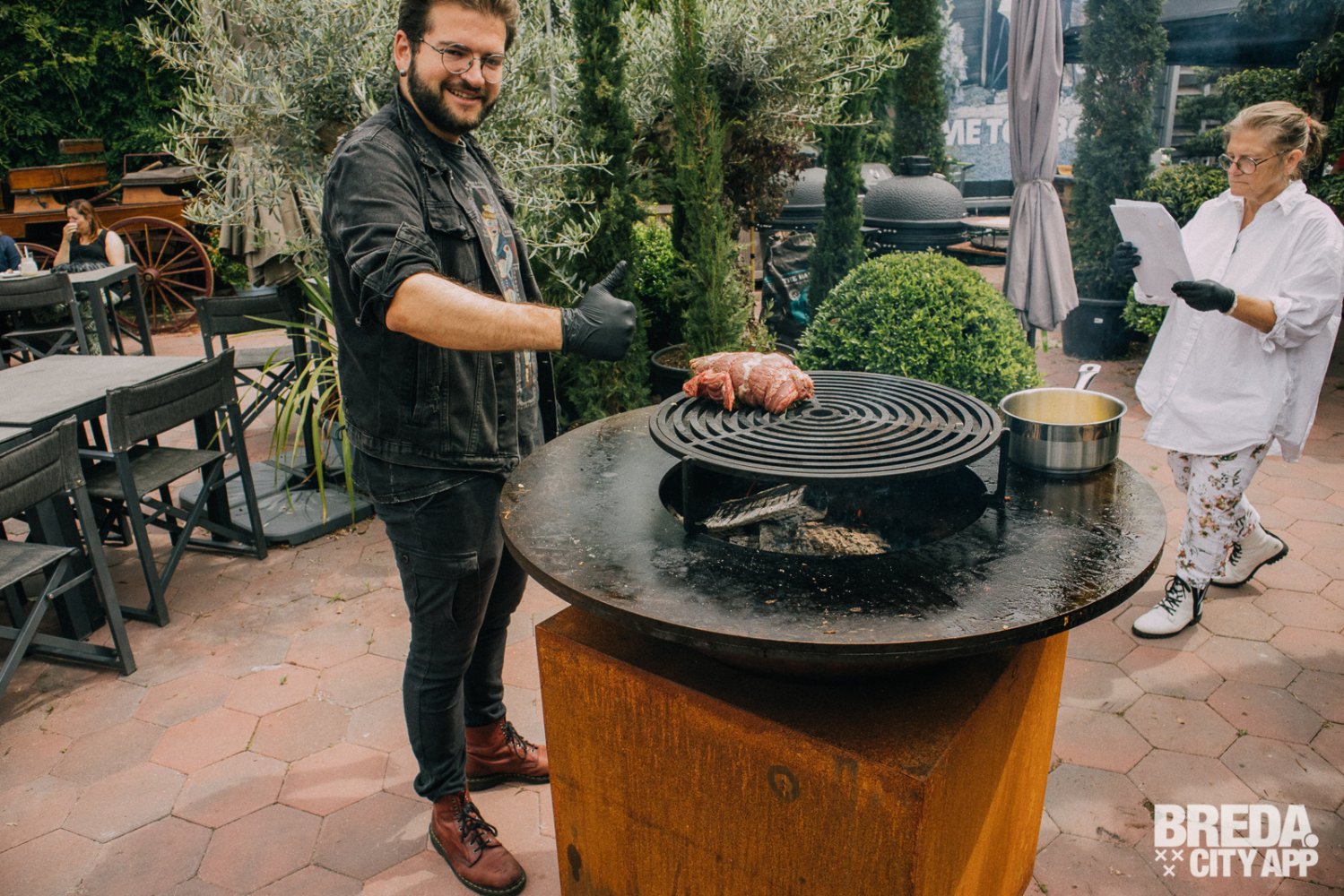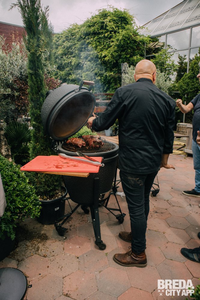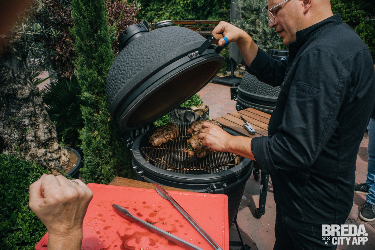 Wij melden ons bij de Smaak-afdeling en mogen direct doorlopen naar het terras. Daar staat Danny de grill-master al klaar voor ons. Danny heeft al de nodige bbq en horeca ervaring dus dat zit wel snor. Hij stelt ook Dries aan ons voor, zijn assistent deze middag.