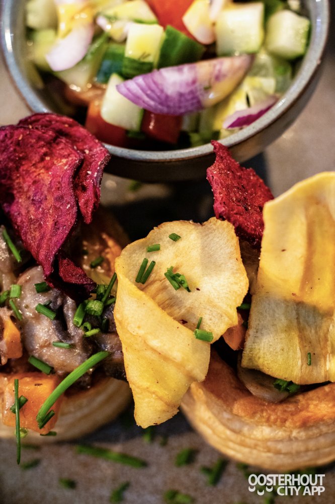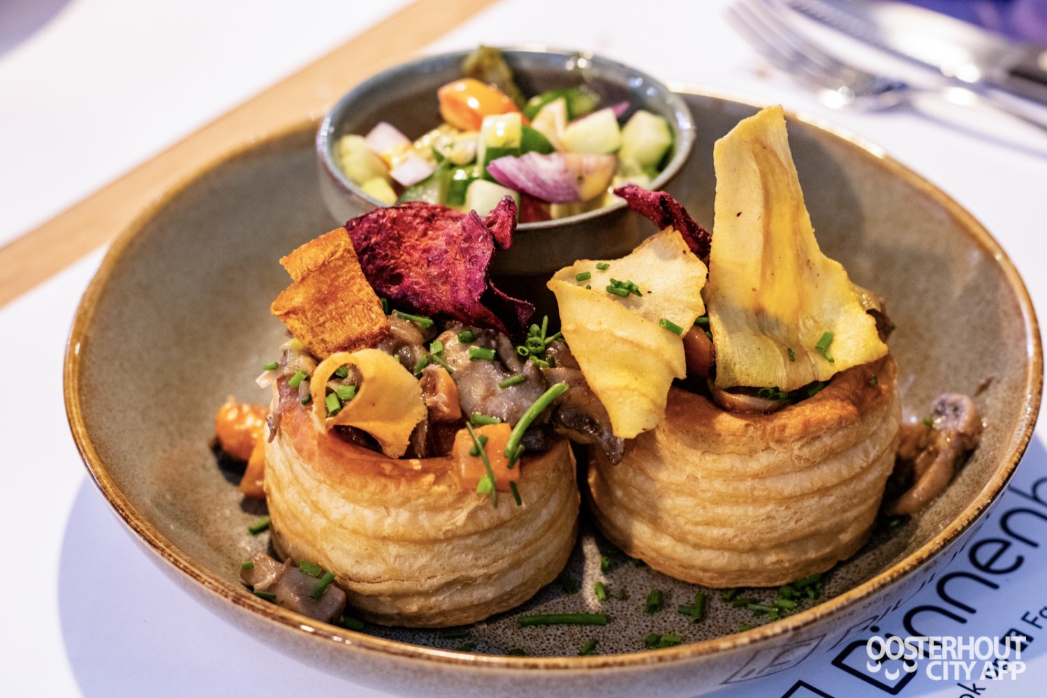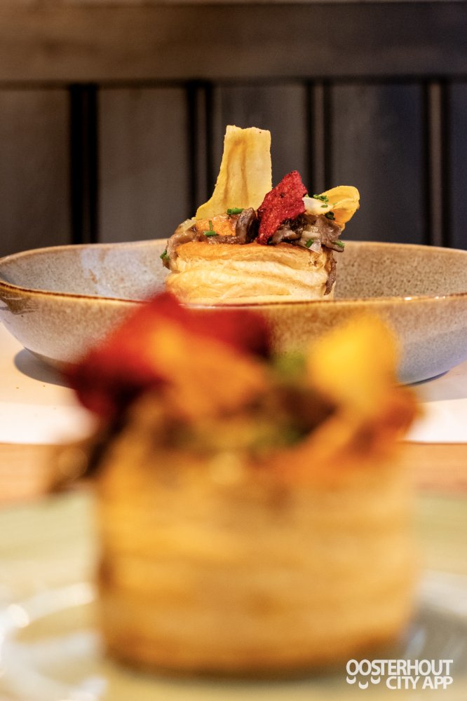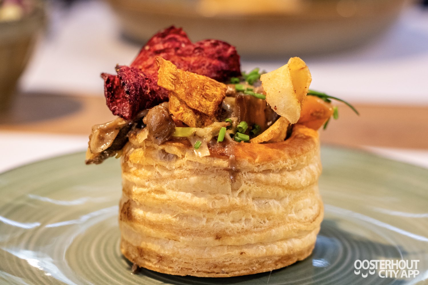 Het wild pasteitje dat volgt. De krokante korst onthult een smeuïge vulling van heerlijk bereid wild. De bijpassende seizoensgroenten zoals de wortel en champignons voegt een extra dimensie toe aan de al rijke wildsmaak. Het oogt extra feestelijk met het krokantje van groenten bovenop. Het pasteitje is dan ook alom bekend bij Brasserie het Binnenhofje. Eén mooie klassieker die niet snel verdwijnt van hun kaart.