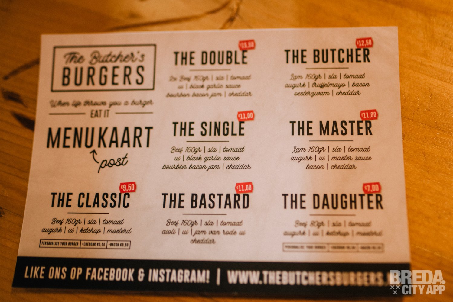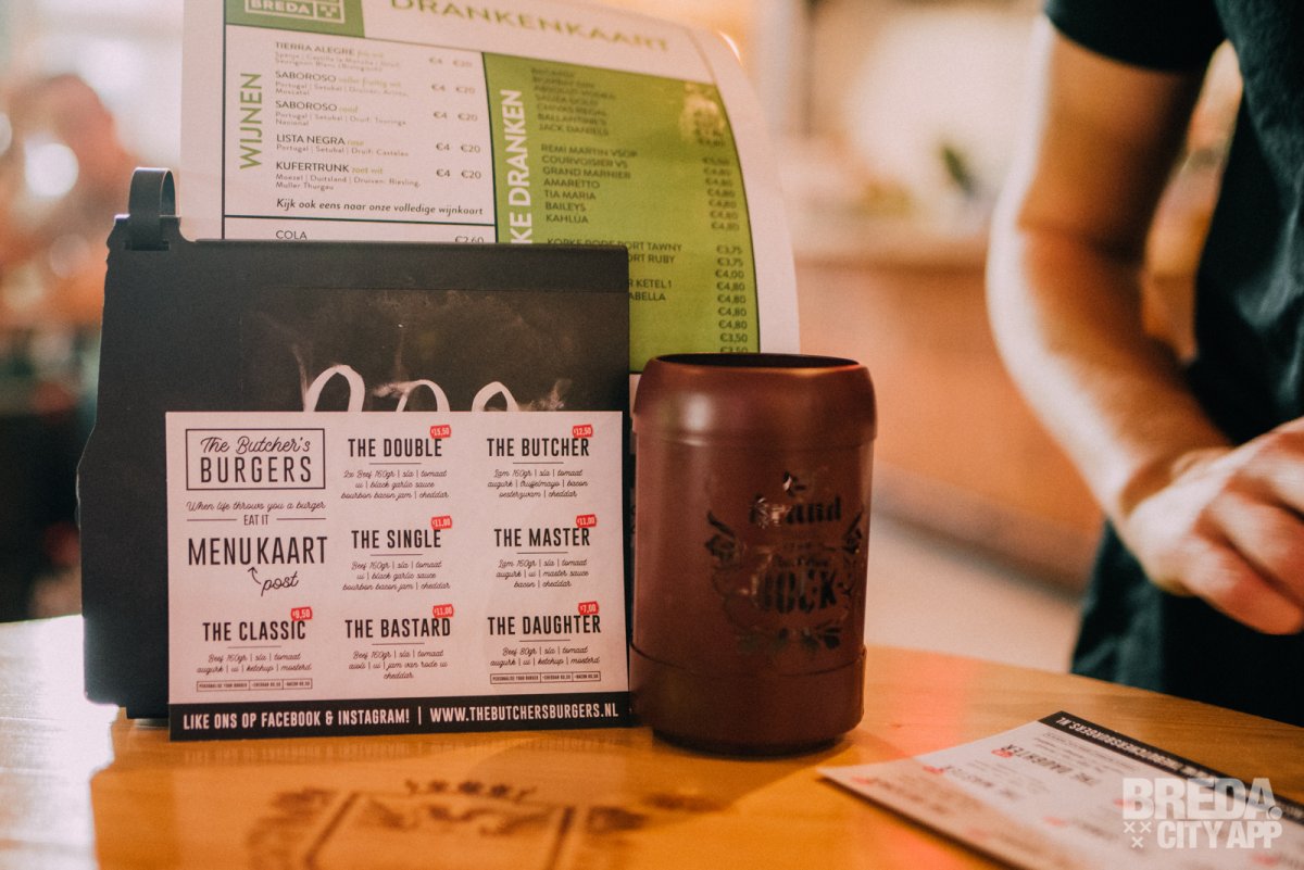 Bij binnenkomst worden we gelijk vriendelijk ontvangen door Merel en Bruce, de eigenaren van Butcher's Burgers en tevens echte horeca ondernemers. Ze vertellen ons dat de burgers hier gemaakt worden van van Double Dutch Beef: een bijzondere selectie rundvlees van Hollandse dubbeldoel koeien. Ook staan er lamsburgers op de kaart, waarvoor het vlees (ingevroren) uit Engeland komt. Na de uitleg over het vlees zijn we natuurlijk super benieuwd geworden naar de burgers!
