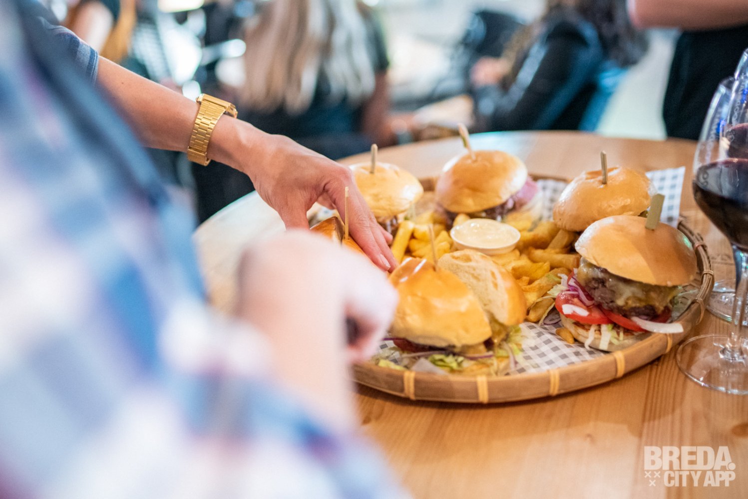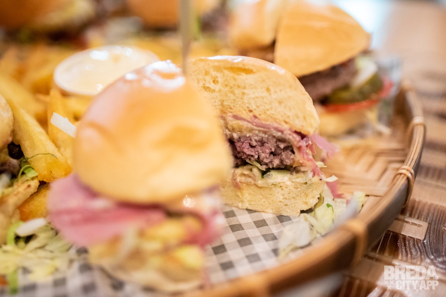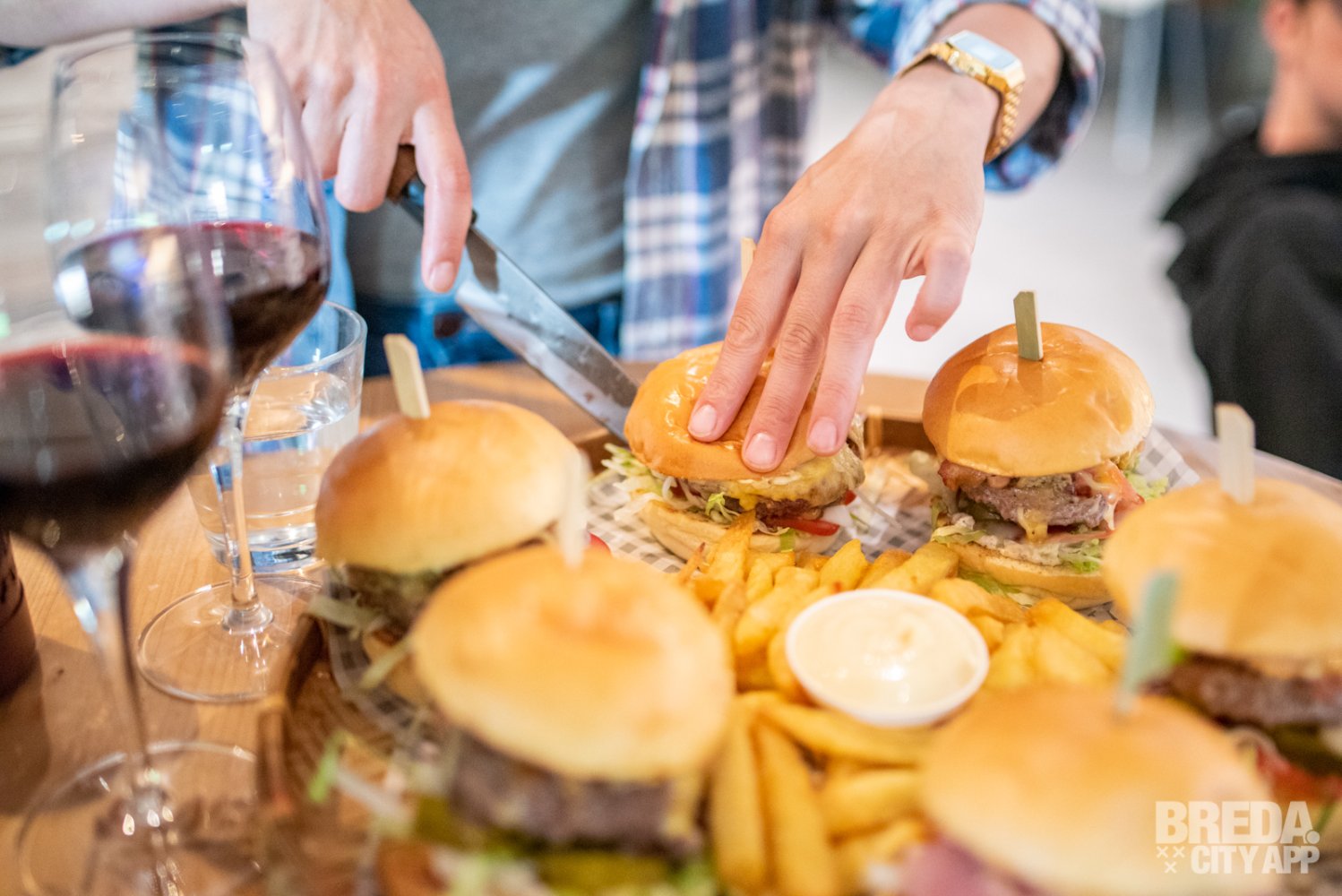 De frieten die in het midden liggen worden zelf gesneden en zijn ook super lekker en knapperig. De burgerbroodjes zijn zelf ontwikkeld in samenwerking met bakkerij Pol van den Bogaert uit Princenhage.