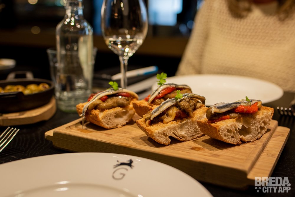 Bij Gaudim staat het delen van gerechten centraal. De Catalaanse koks maken er in de open keuken authentieke gerechten van de mooiste ingrediënten. Je weet wat je eet en je proeft de uitgesproken smaken. We trappen de avond af met een mooi glas wijn met daarbij geroosterd brood met aubergine, sardientjes en gegrilde paprika.