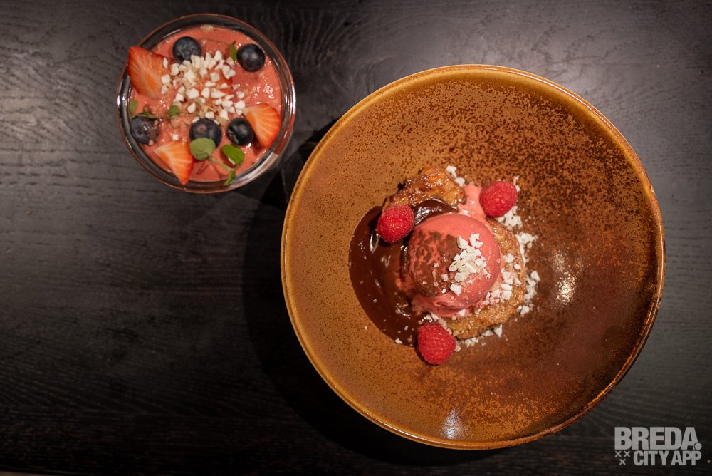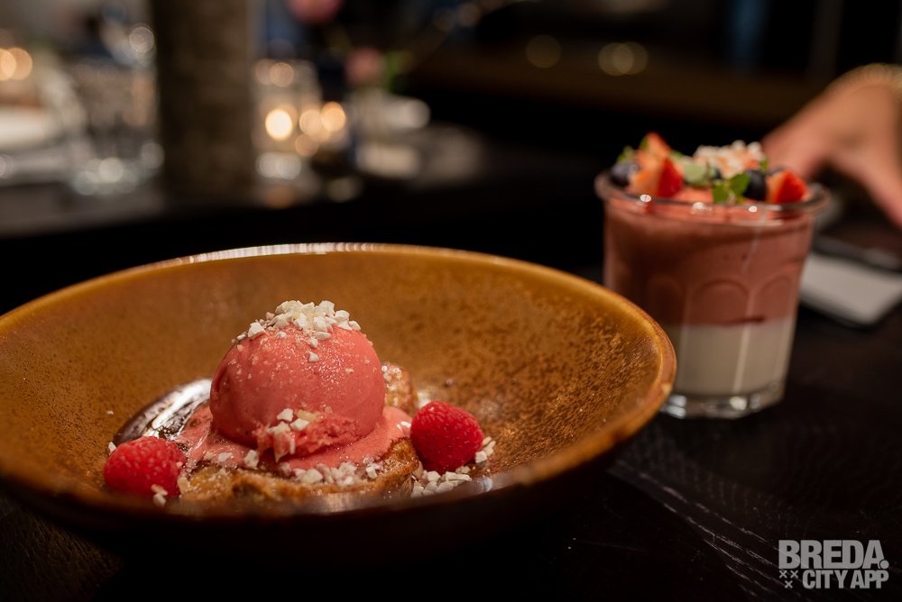 Last but not least proeven we een wentelteefje met frambozenijs en warme chocoladesaus. Deze moet je proeven! Het wentelteefje is gemaakt van vers suikerbrood, smeuïg van binnen en krokant van buiten. Ook hier proeven we een mooie combinatie van zoet en friszuur.