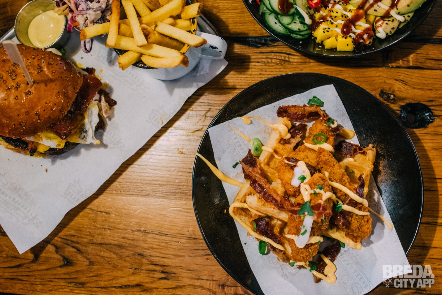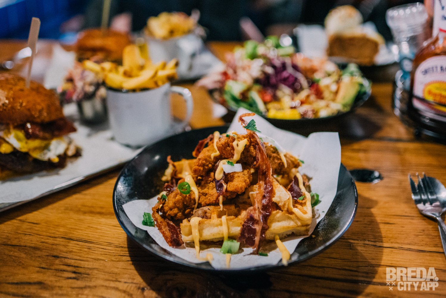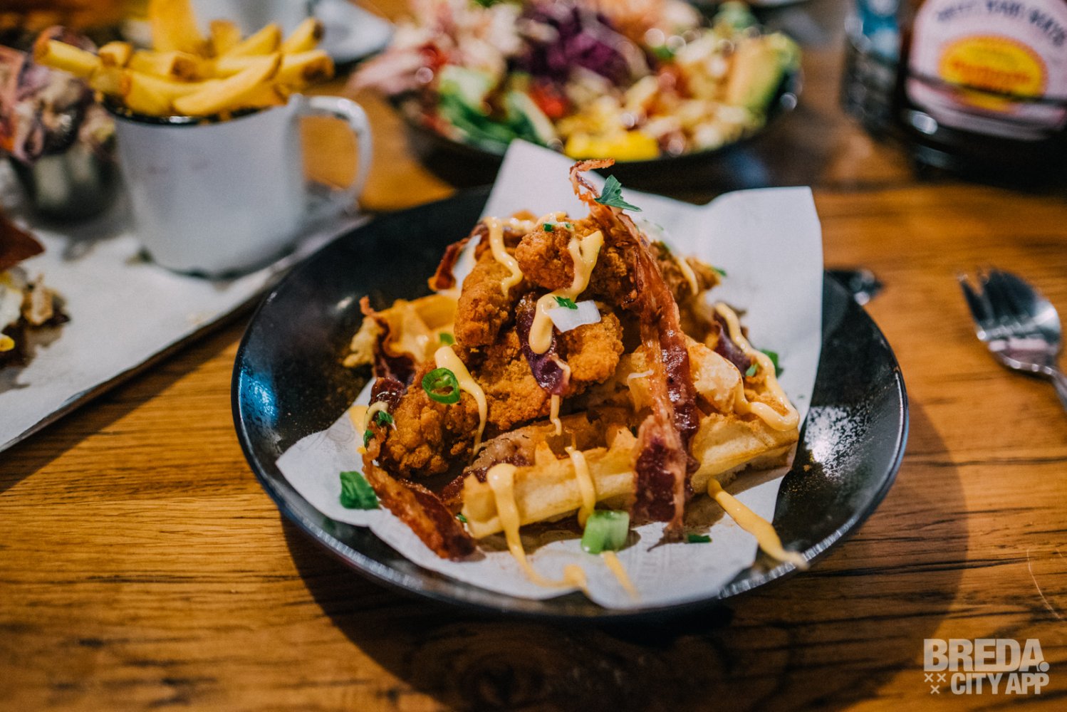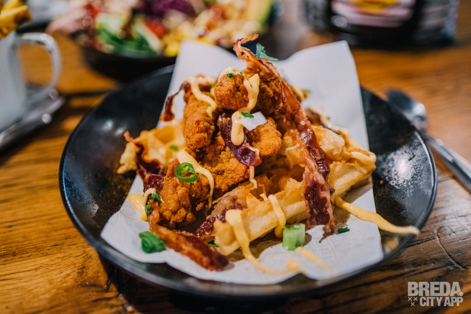 Na de burgers gaan we door met de Chicken Waffle. Dit is een typisch Amerikaans gerecht geserveerd met bacon. Het is een luchtige zoete wafel met gefrituurde kip en afgetopt met een cheddar cheese sausje. De combinatie klinkt apart. Maar geloof ons, dit is er zeker één om te proberen. Zoet en hartig gaat prima samen!
