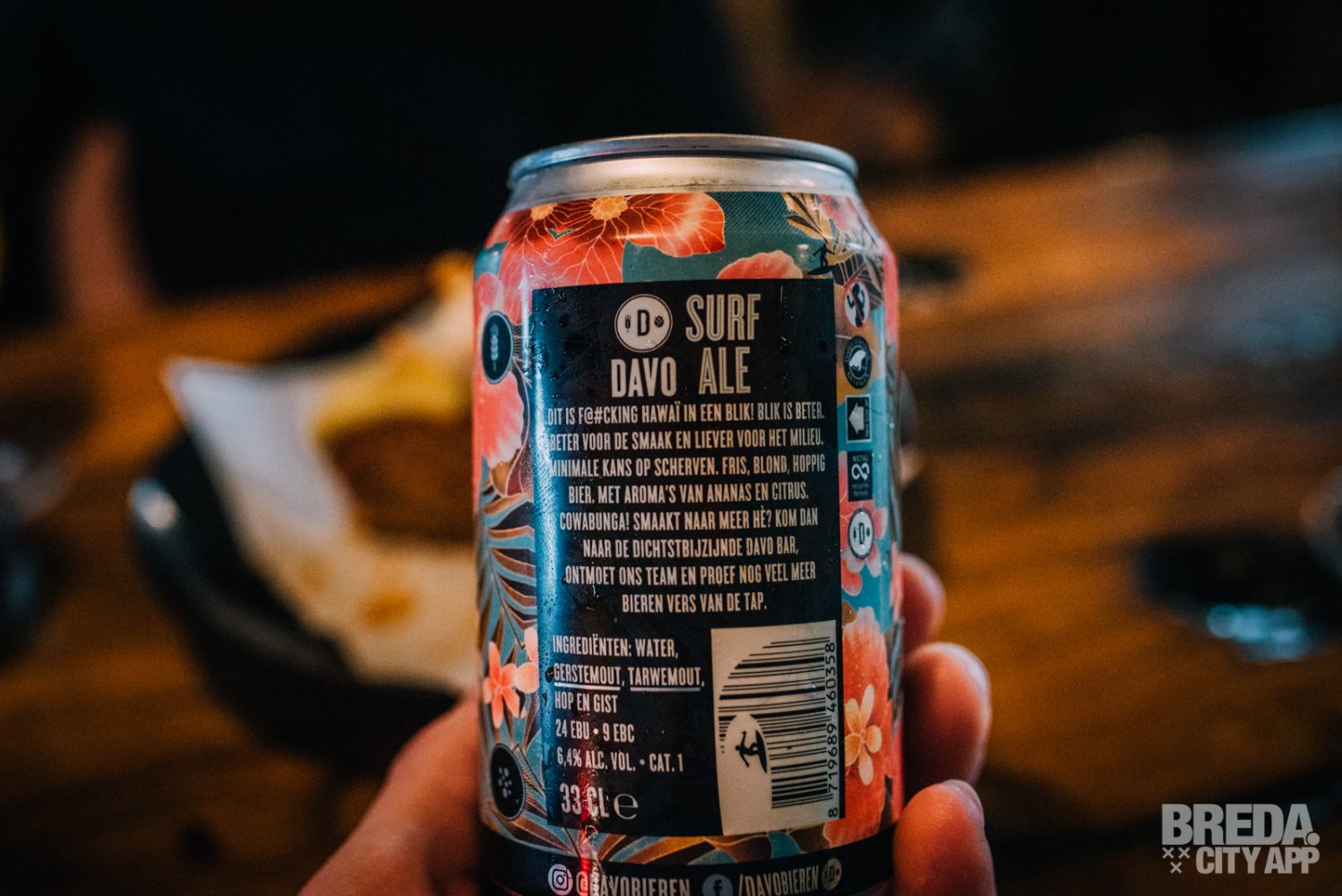 Het laatste biertje wat we proeven is de Surf Ale. Dit is een American Wheat Ale van 6,4%. Een fris blond hoppig biertje met tonen van citrus en ananas. Zoals de brouwer zelf zegt: het is Hawaï in een blik!