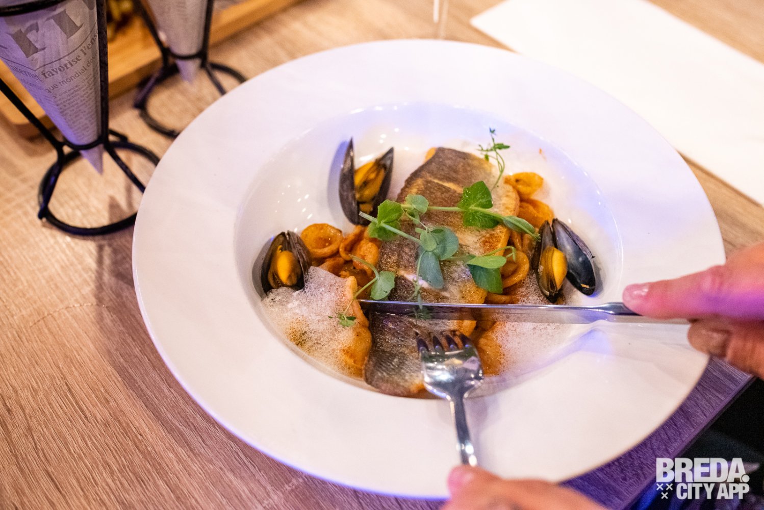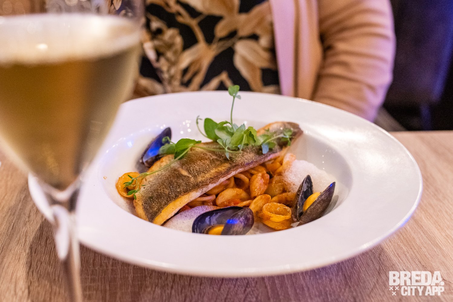 De zeebaars is de favoriet van Dion. Dit omdat hij de zeebaars een mooie vis vindt en daarmee een mooi gerecht kan maken. De zeebaars wordt geserveerd met groentes, orecchiette pasta, mosselen en schuim van bisque. De bisque is gemaakt van het schuim van de mosselen en dat maakt dit gerecht extra leuk.
