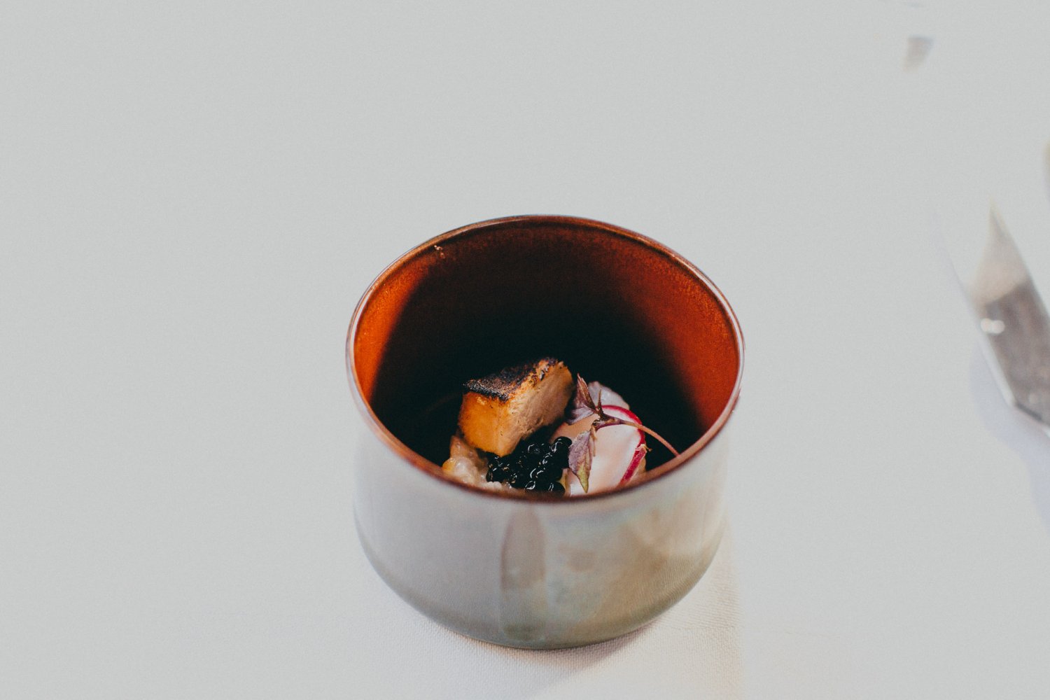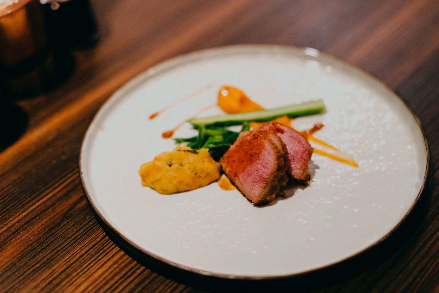 Deze werden opgevolgd door een kommetje met geweldig uitgevoerde sushi dat de verrassende naam Sushi in a Bowl draagt. Spoedig deed een stevige fruitige rode wijn zijn intrede, en zo ook de hoofdgerechten.