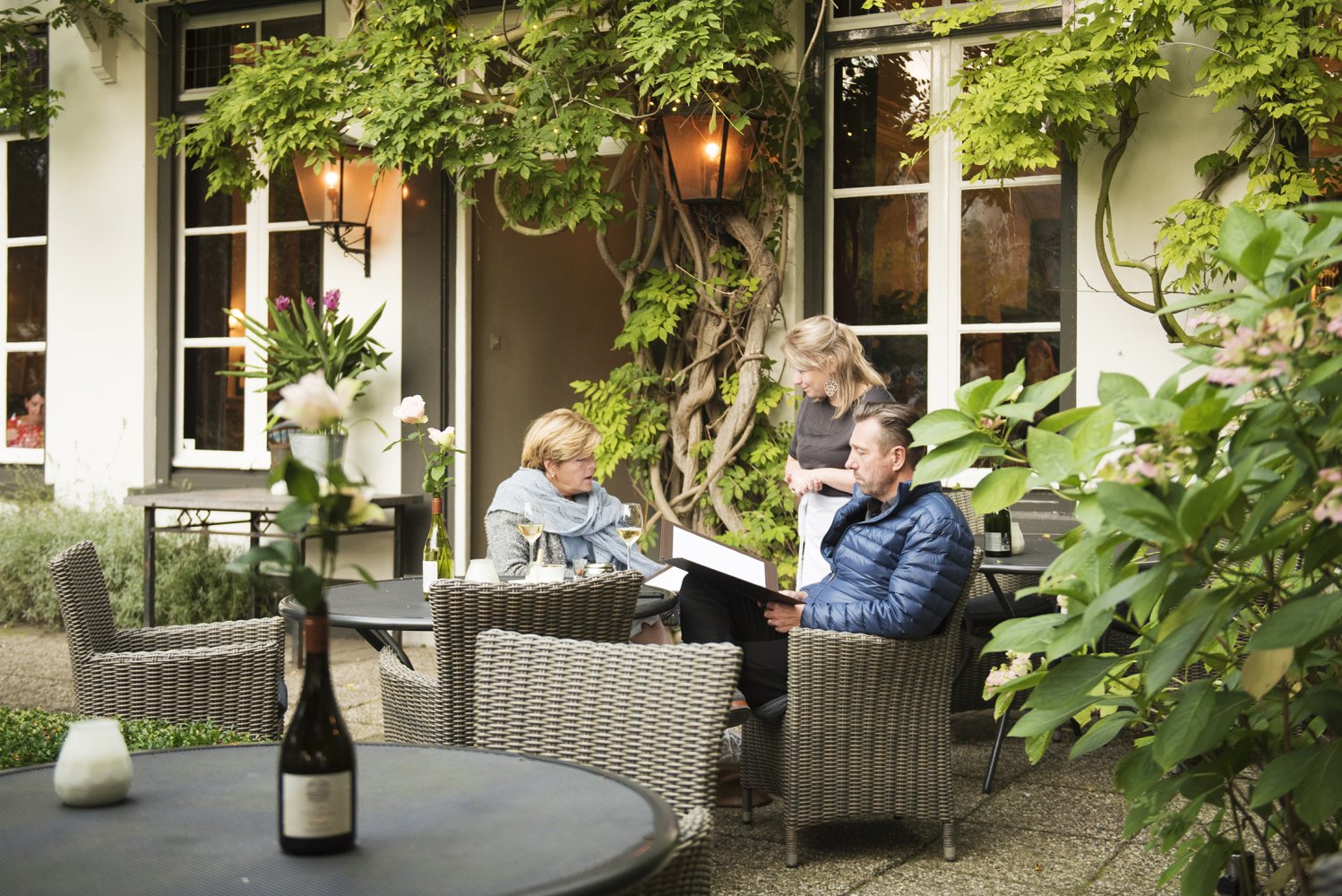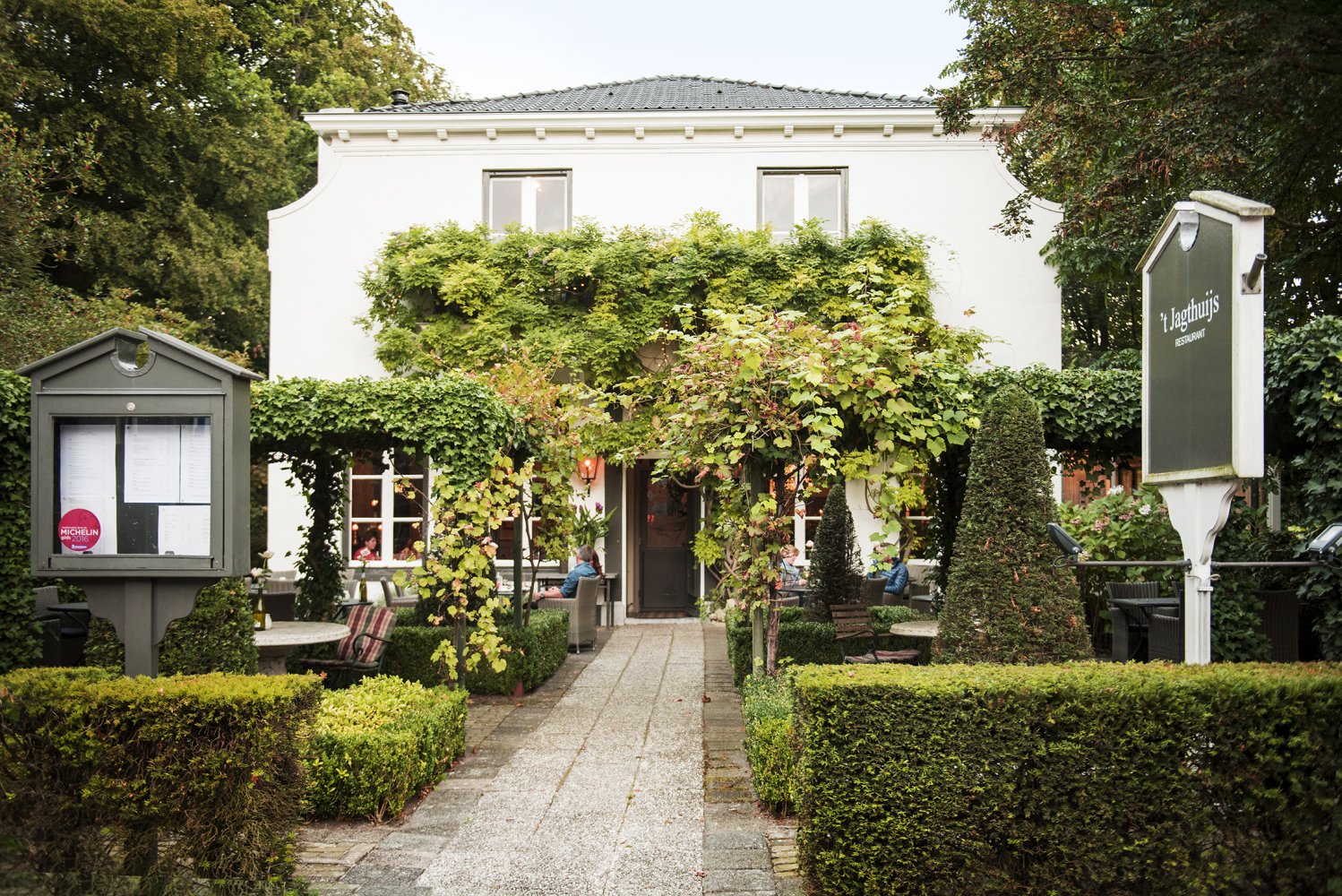 De romantische entree van 't Jagthuijs draagt bij aan de sprookjesachtige naam. Pergola's overgroeid door 'Blauwe Regen' sieren het tuinterras aan de voorkant van het voormalige jagershotel. Tijdens de warmere dagen van het jaar kun je hier ook heerlijk buiten dineren.