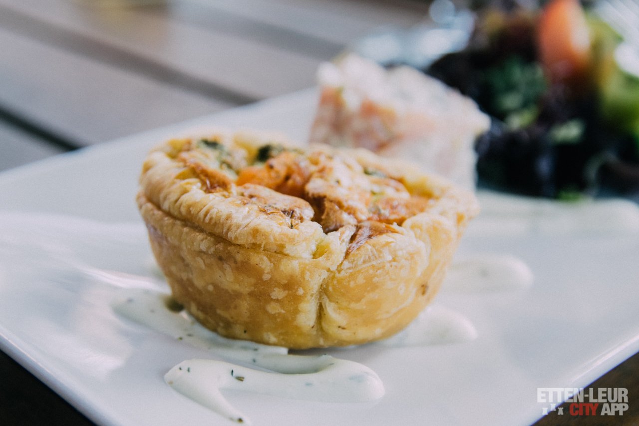 We nemen een plekje op het ruime terras en beginnen de avond met een corona en een friszoete 'Sex On The Beach' cocktail. Wanneer we een kijkje op de kaart nemen zien we er verschillende lekkernijen opstaan. We besluiten voor het 3-gangen keuzemenu te gaan. Als voorgerechten nemen we een visduo en de brie bruschetta's. Het visduo bestaat uit een zalmtartaartje en een zalm-broccoli quiche. Erg smaakvol en lekker licht om mee te beginnen.