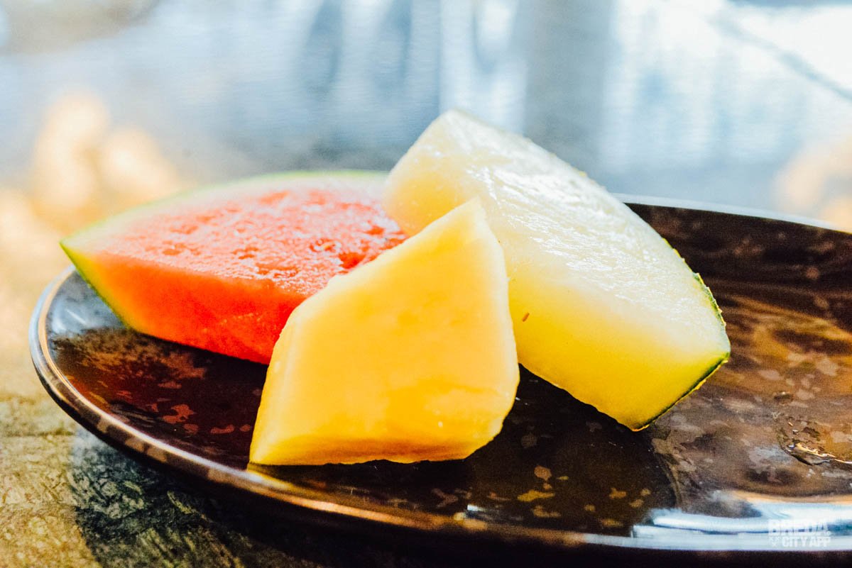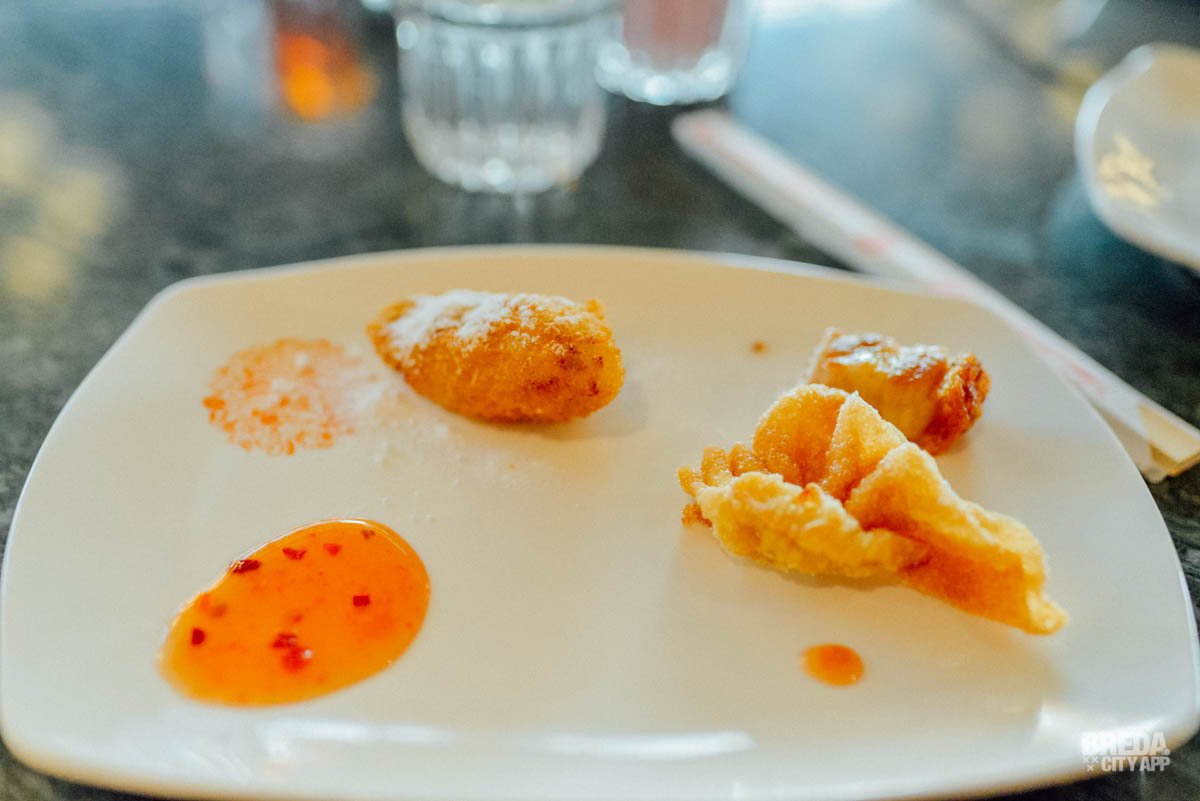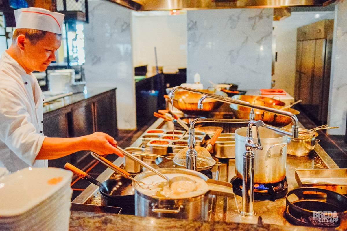 De rondleiding op zichzelf  is al een feestje en nadat we een tafeltje toegewezen krijgen, gaan we op pad voor de eerste ronde. Het leuke is dat het restaurant enorm sfeervol is ingericht, mooie fluwelen stoelen en marmeren tafeltjes. Daarbij is het prachtig aangekleed met veel planten en gouden accessoires.