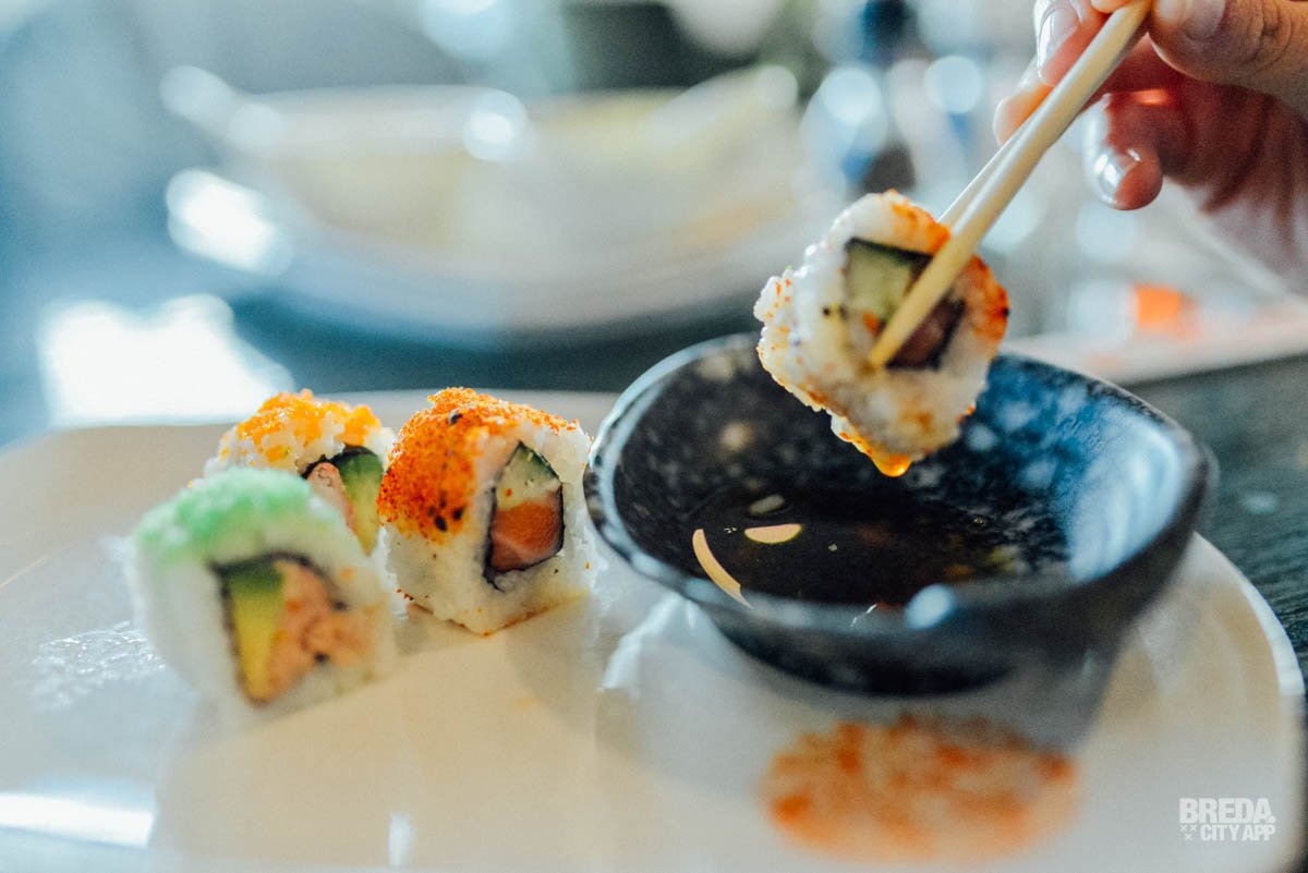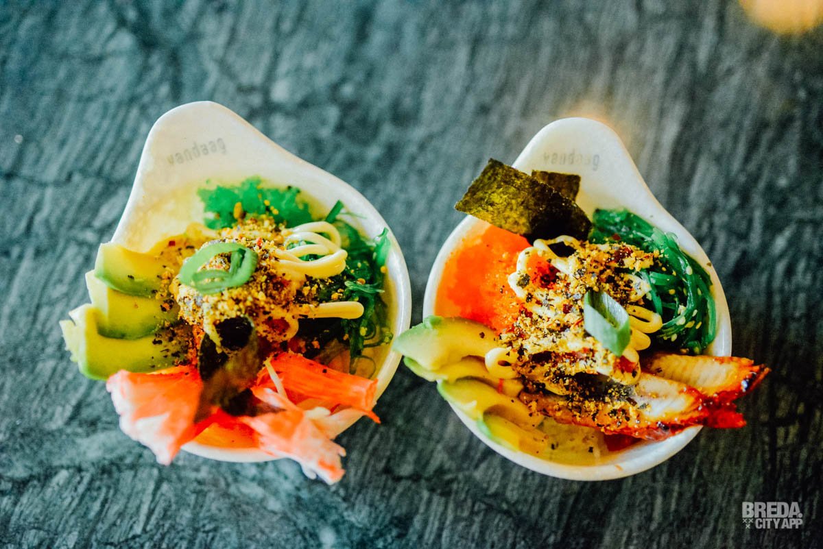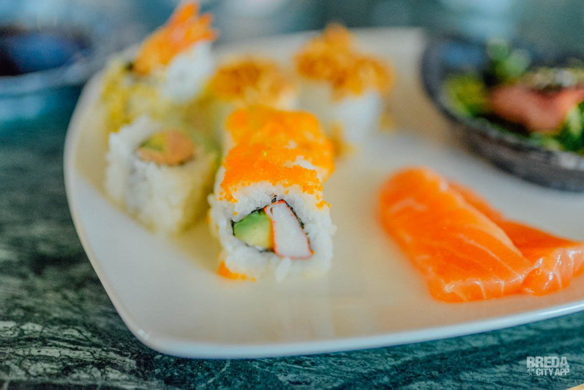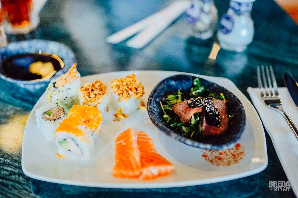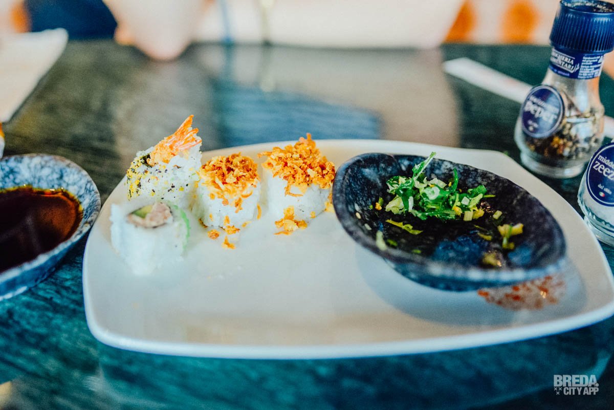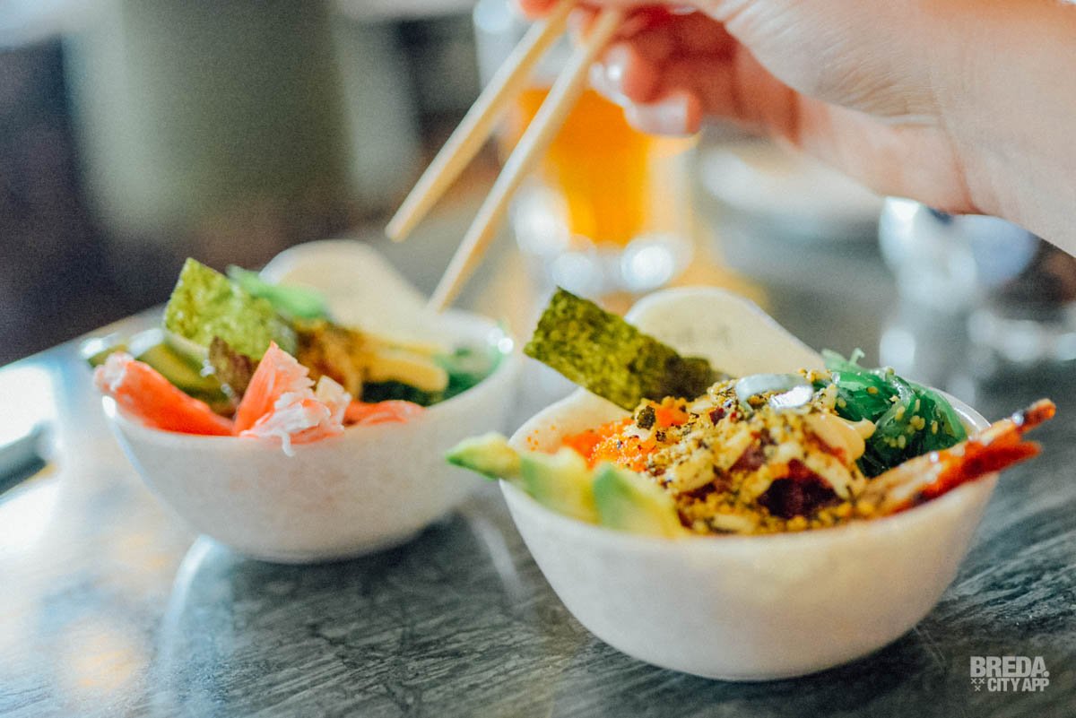 Allereerst gaan we voor de sushi en die is heerlijk. Niet te plakkerig, wat je vaak ziet in restaurants waar ze meerdere keukens serveren, en het smaakt mega goed! Ook krijgen we een pokébowl geserveerd, eentje met tonijn en eentje met zalm. Smaakt magische en ziet er ook nog eens prachtig uit!