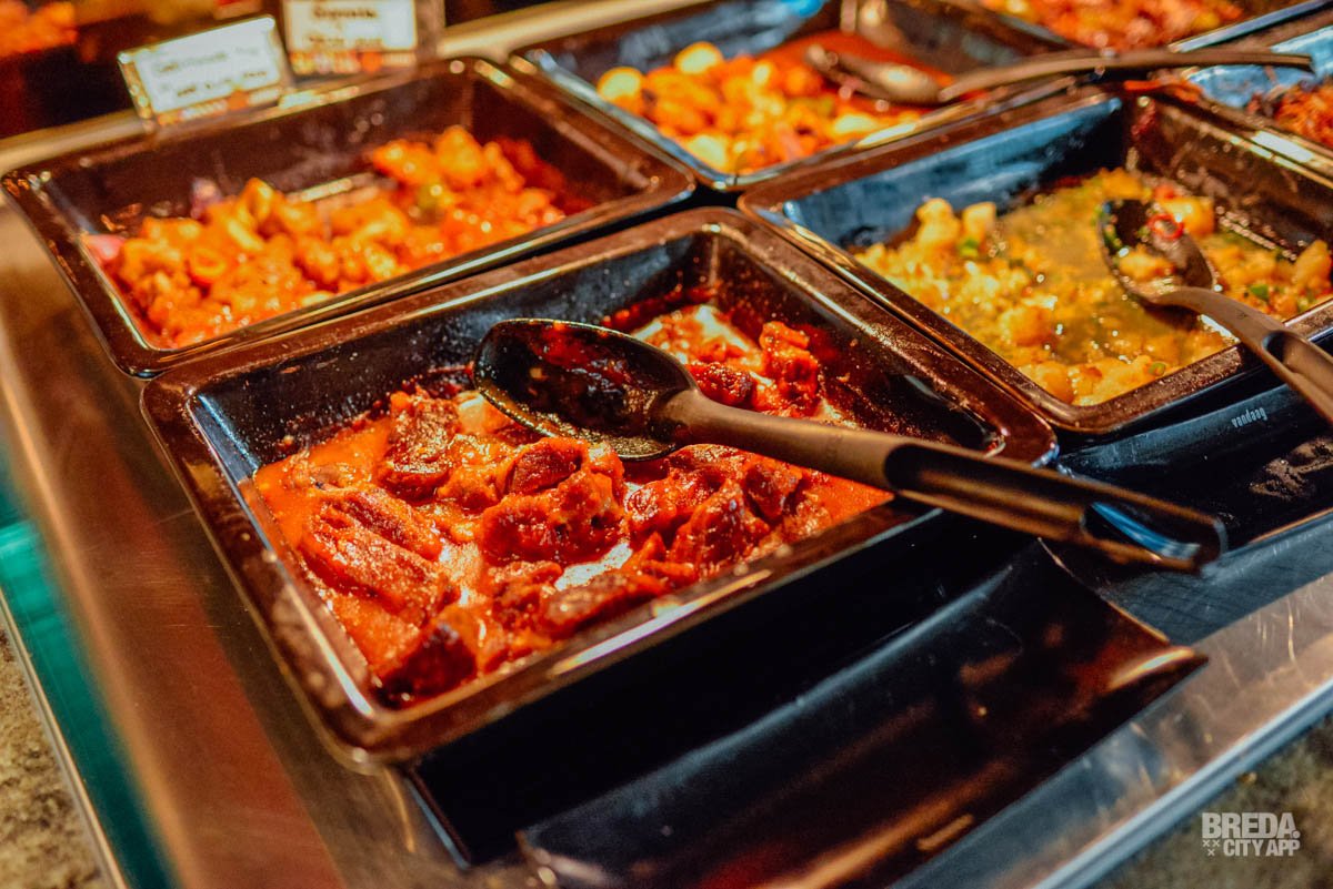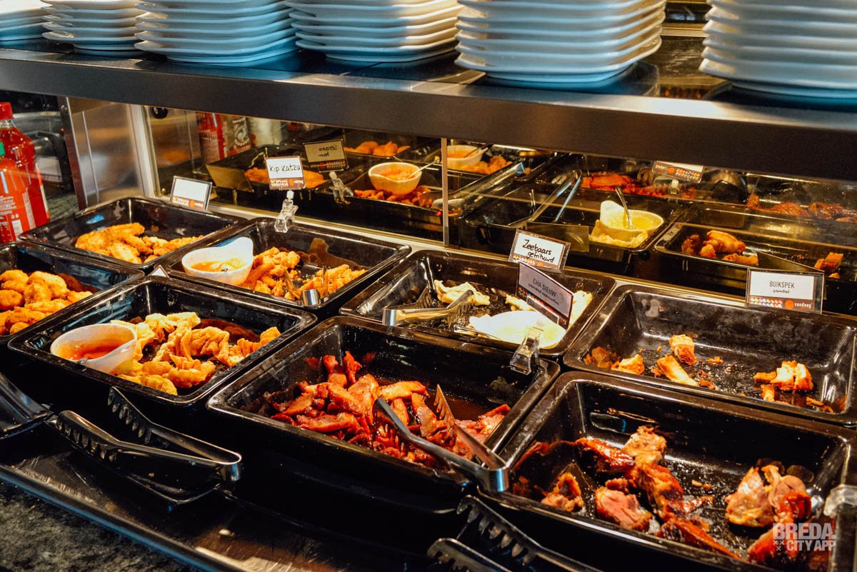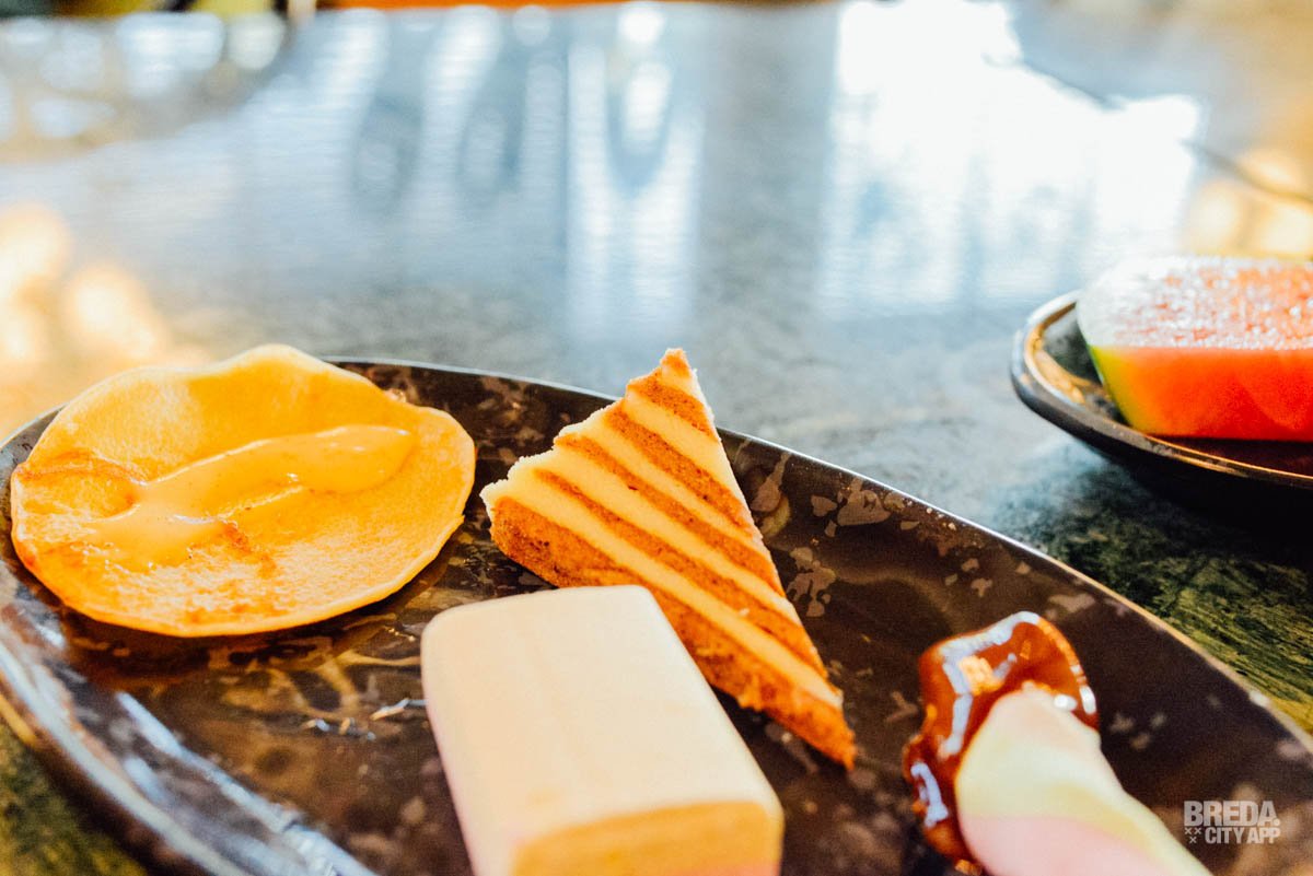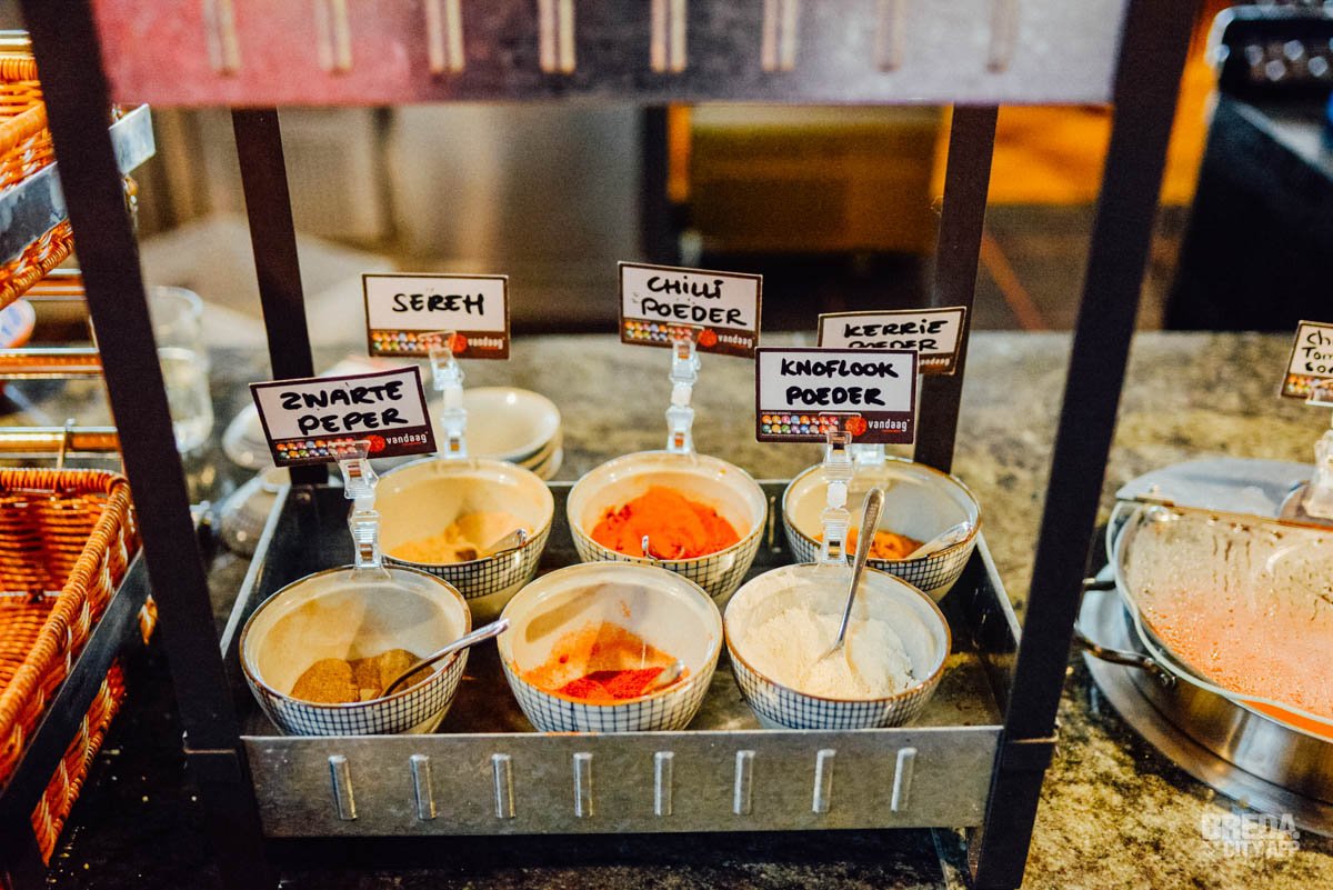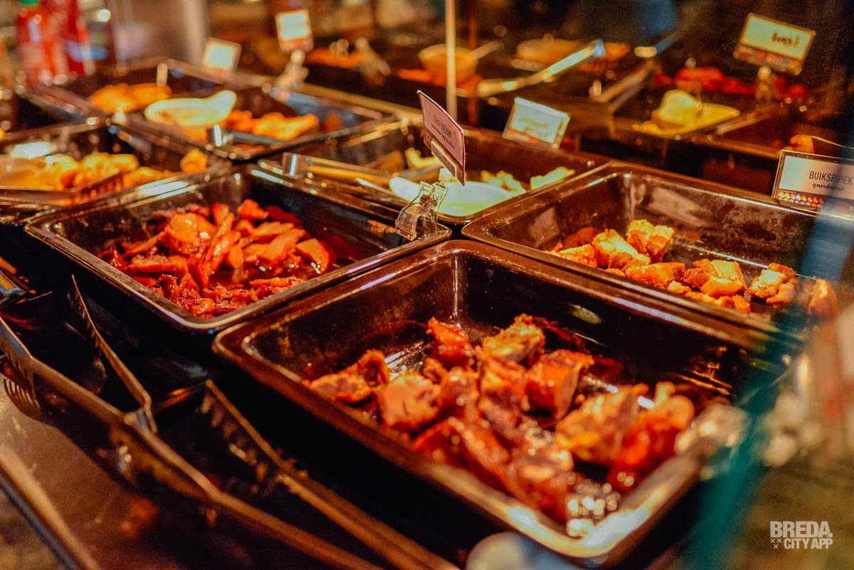 Wanneer we met de bus op Breepark aankomen is het even zoeken naar de ingang maar zodra we de eerste bordjes vinden is het smul-paradijs snel gevonden. We worden ontvangen bij een prachtige balie die enorm straalt met al haar gouden accessoires, een mooie binnenkomer!