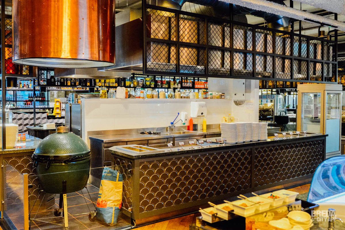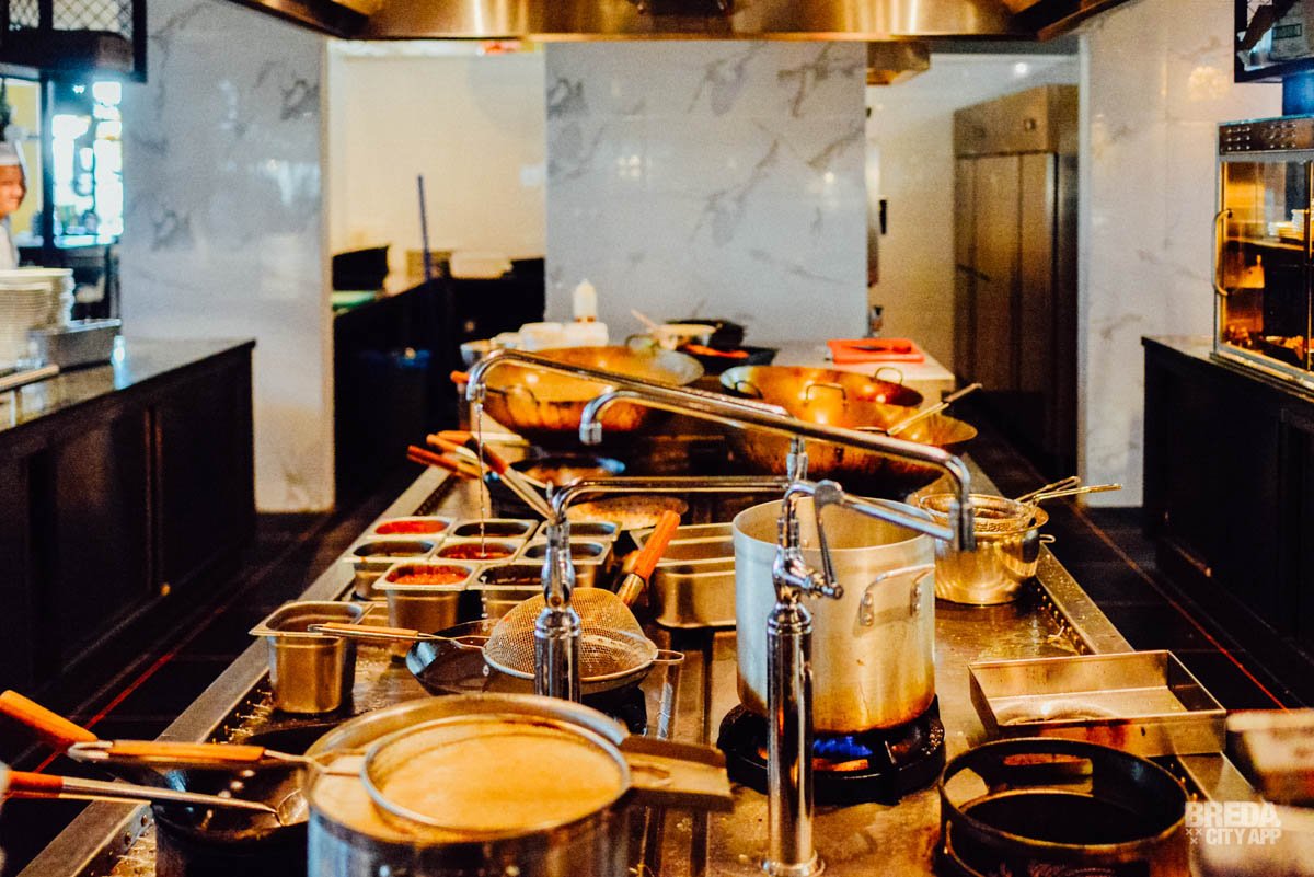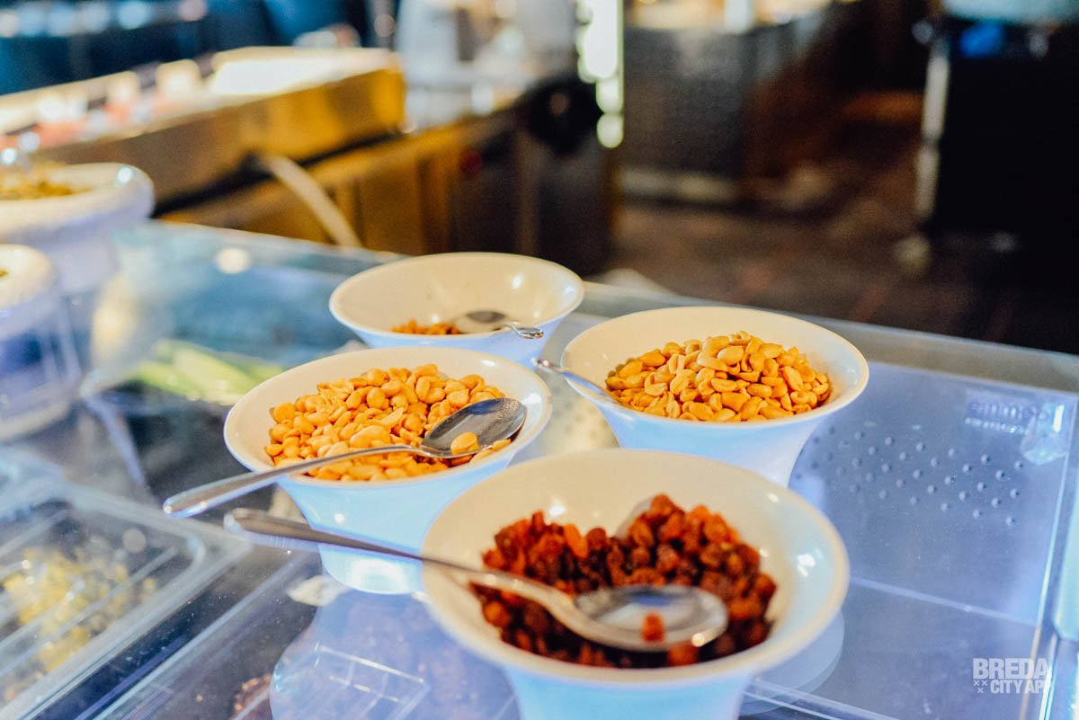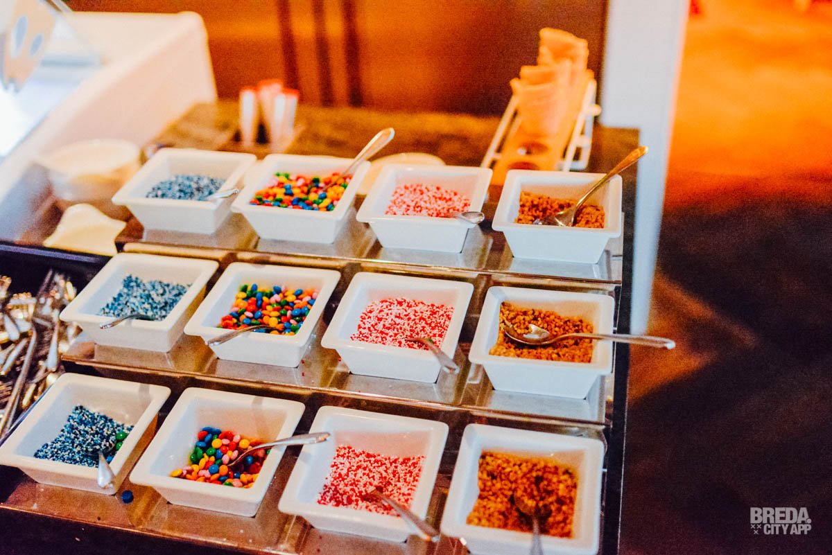 Wanneer we met de bus op Breepark aankomen is het even zoeken naar de ingang maar zodra we de eerste bordjes vinden is het smul-paradijs snel gevonden. We worden ontvangen bij een prachtige balie die enorm straalt met al haar gouden accessoires, een mooie binnenkomer!