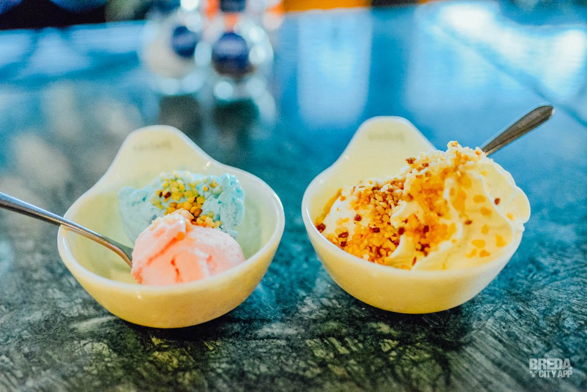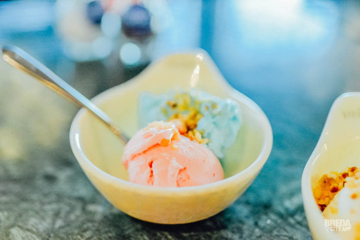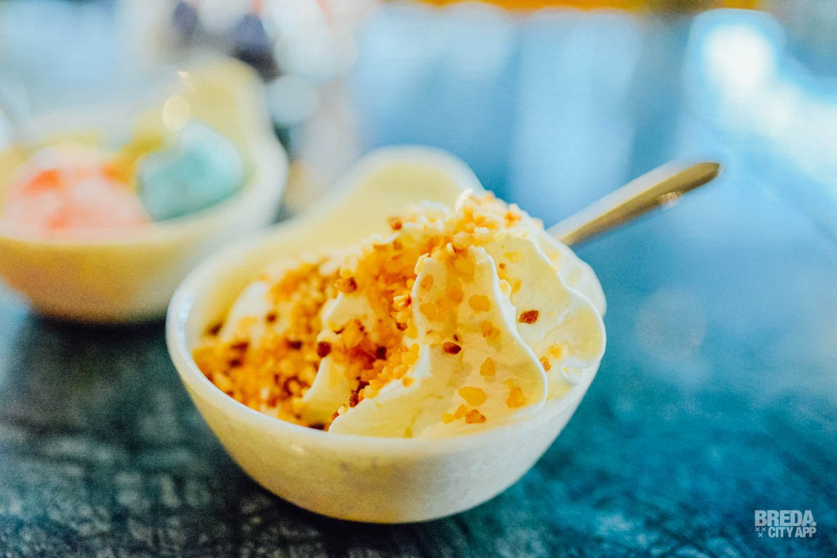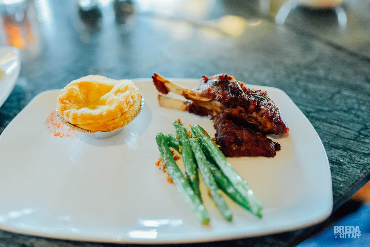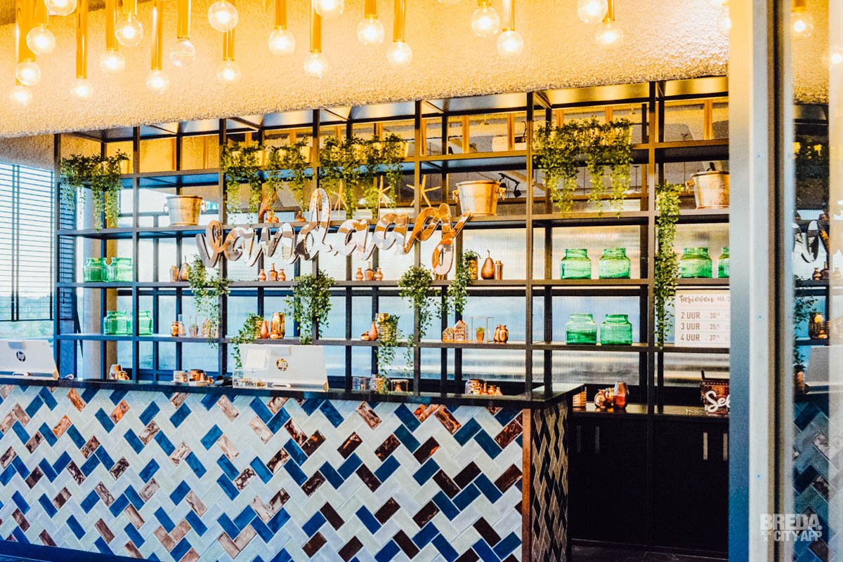 Wanneer we met de bus op Breepark aankomen is het even zoeken naar de ingang maar zodra we de eerste bordjes vinden is het smul-paradijs snel gevonden. We worden ontvangen bij een prachtige balie die enorm straalt met al haar gouden accessoires, een mooie binnenkomer!