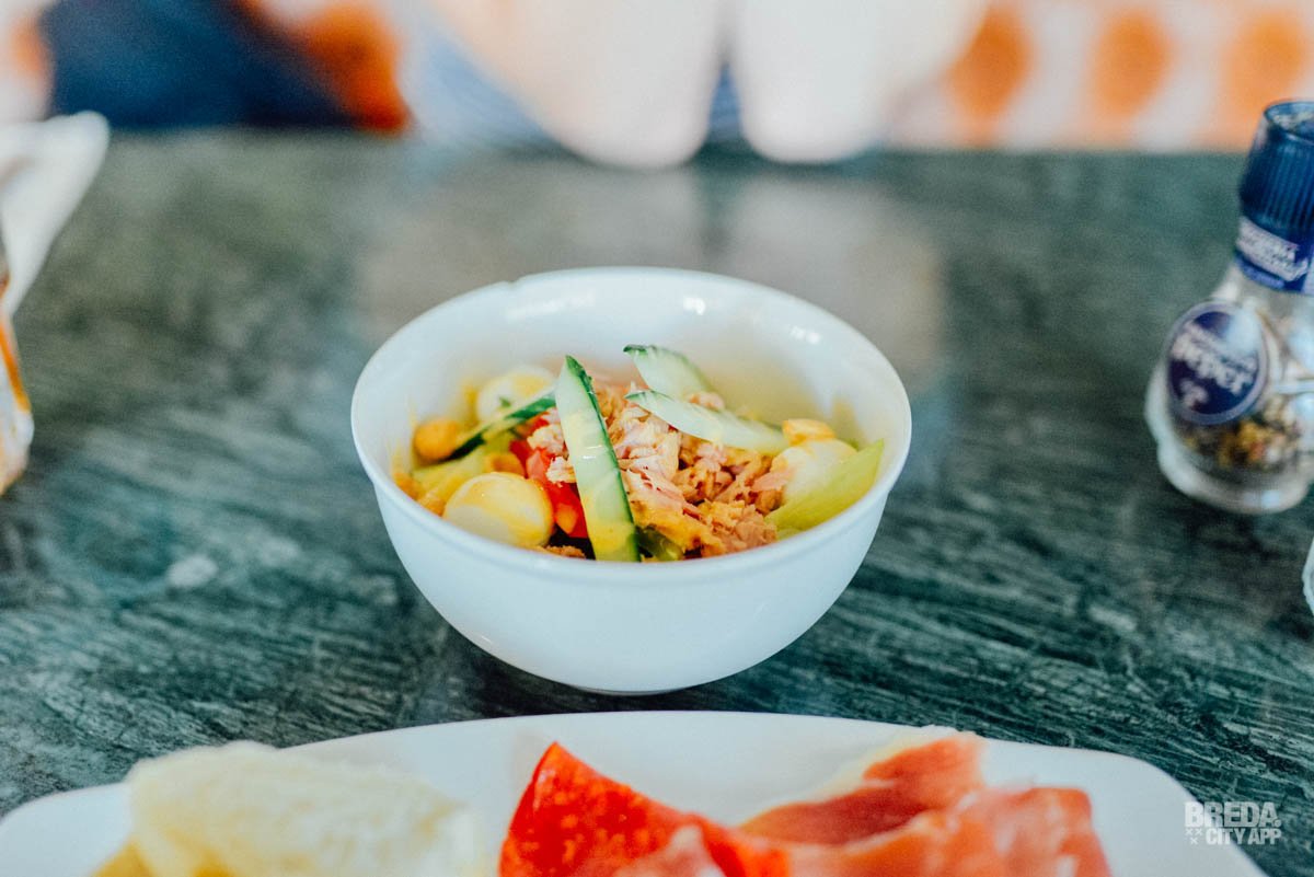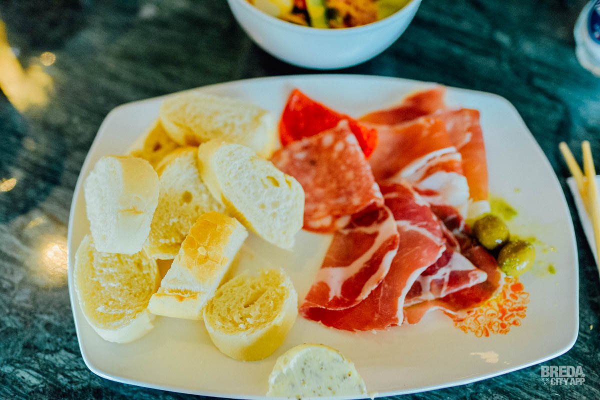 Daarna is het tijd voor een salade en een zelf gemaakt bordje anti pasta. We hebben onszelf uitgedaagd om de borden zo mooi mogelijk op te maken, natuurlijk staat dat ook mooier op de foto maar het maakt het eten ook leuker en het opscheppen uitdagender.