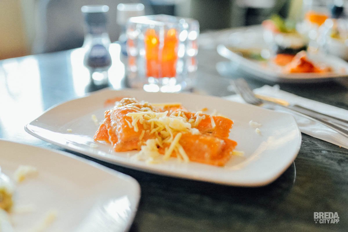 Na de eerste twee rondes is het tijd voor de warme gerechten. We gaan beiden voor de verse ravioli, met vulling naar keuze. De ravioli wordt aan het kookeiland bereid door de chefs, prachtig om te zien en heerlijk dat alle gerechten écht vers zijn. Ook genieten we van verschillende soorten groentes en een stukje zalm. Ik vind het verbazingwekkend dat Vandaag zoveel verschillende gerechten uit verschillende keukens serveert, maar alles echt heel goed op smaak is.
