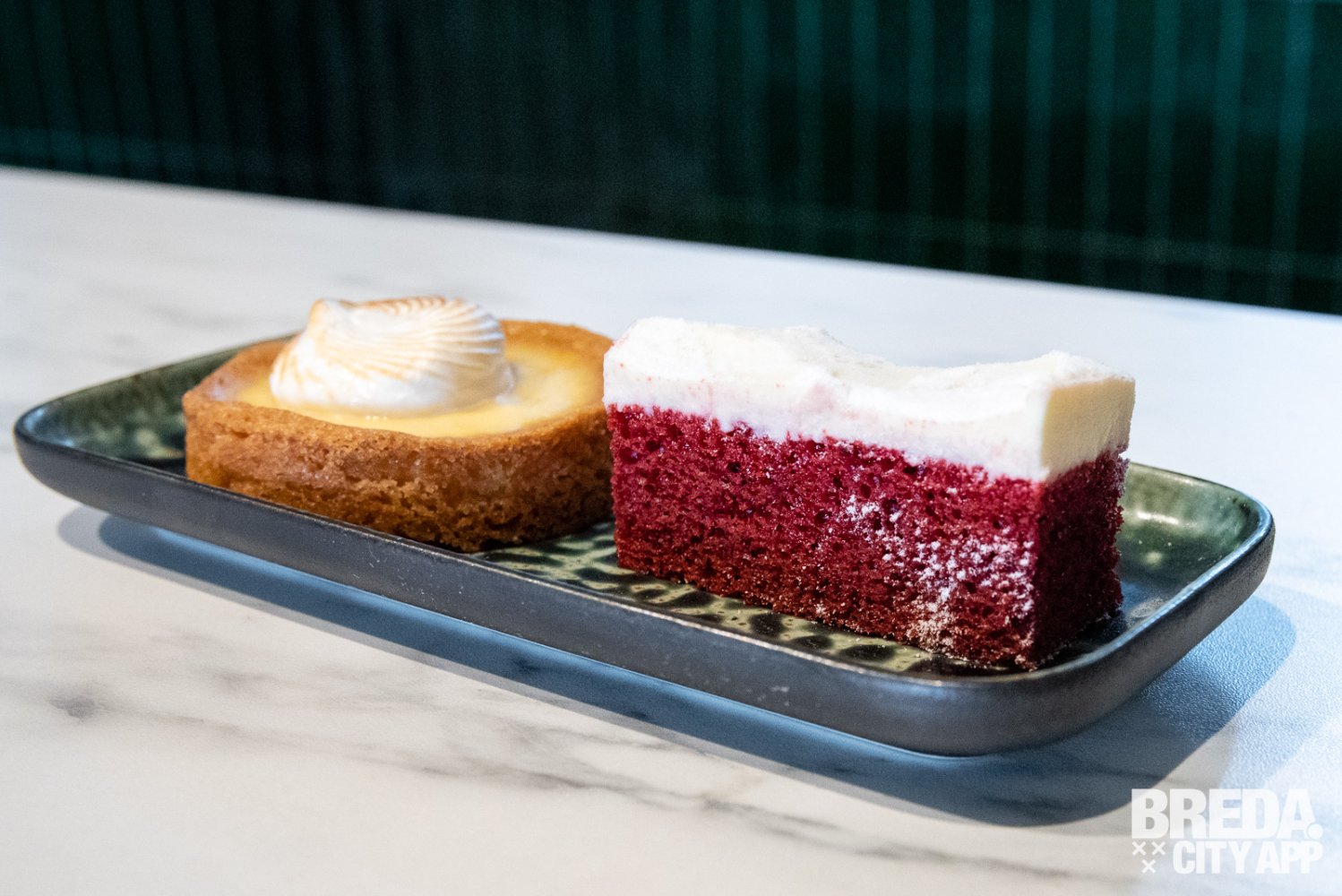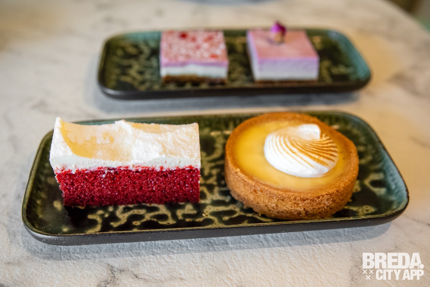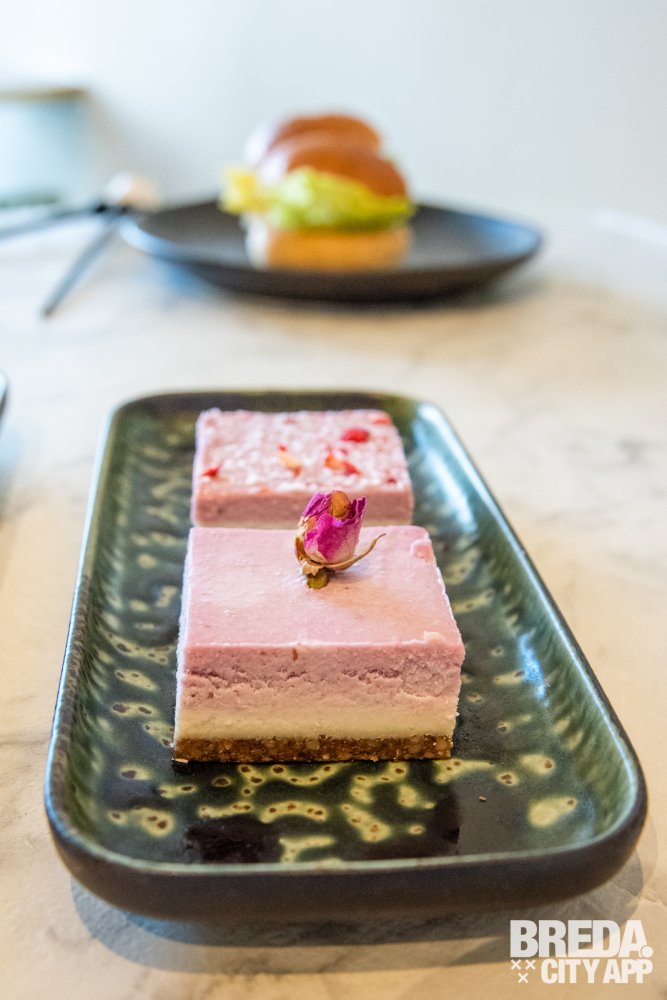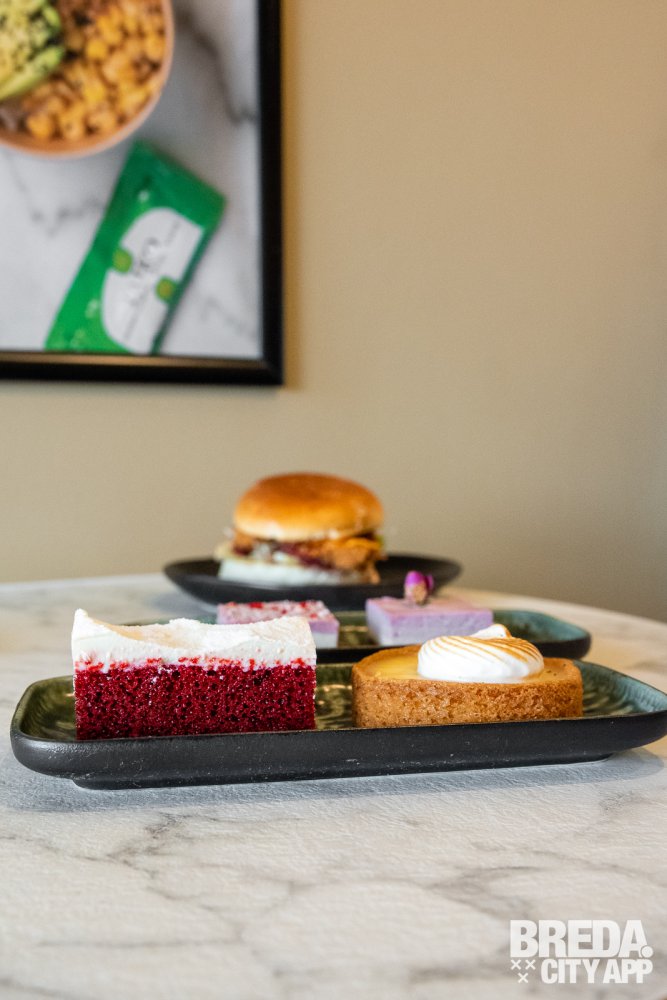 Na deze fantastische Bao Bun Box ontvangen we een heerlijke Crispy Chicken burger. Een goed belegde burger zoals je hem het liefst wilt en lekker spicey, dit komt door de Jalapeños die er op zitten.  Als nagerecht worden we verrast met een Red Velvet cake, Aardbei Kokos taartje, Pinky Rose taartje en een Citroen Merengue.