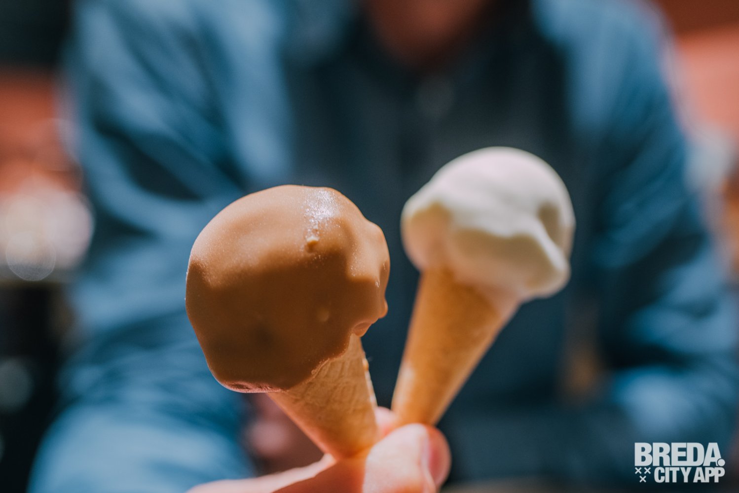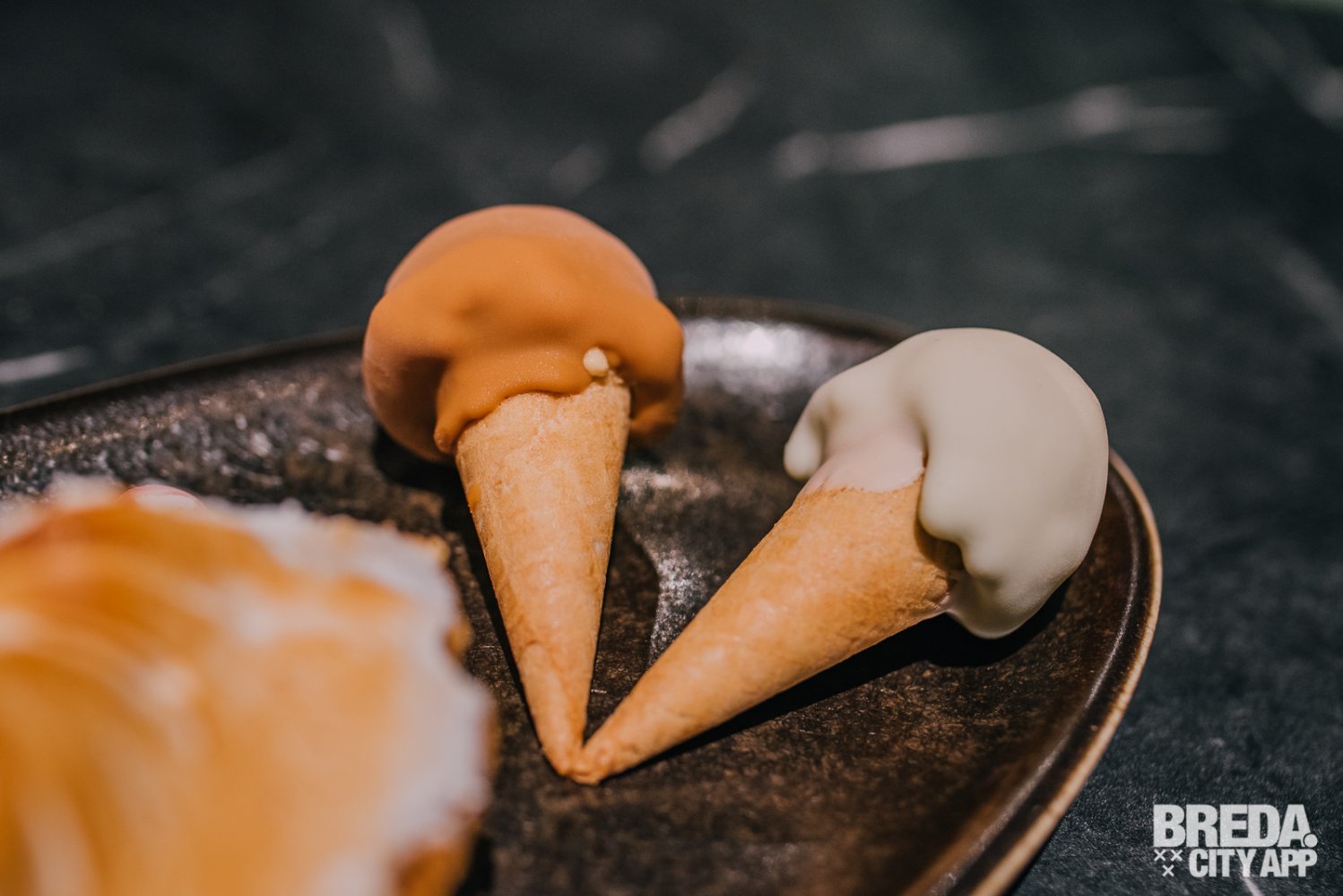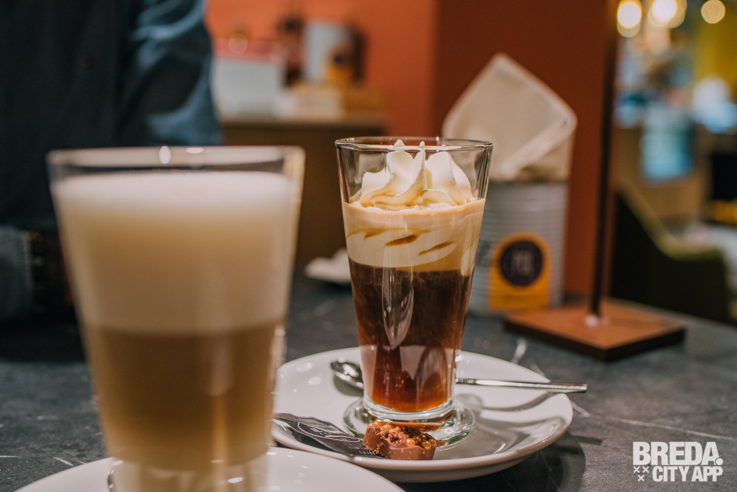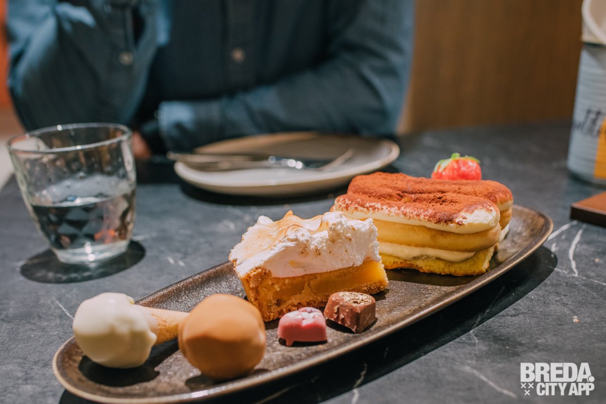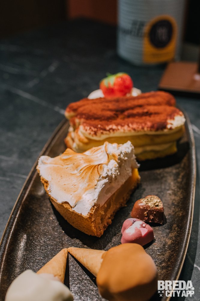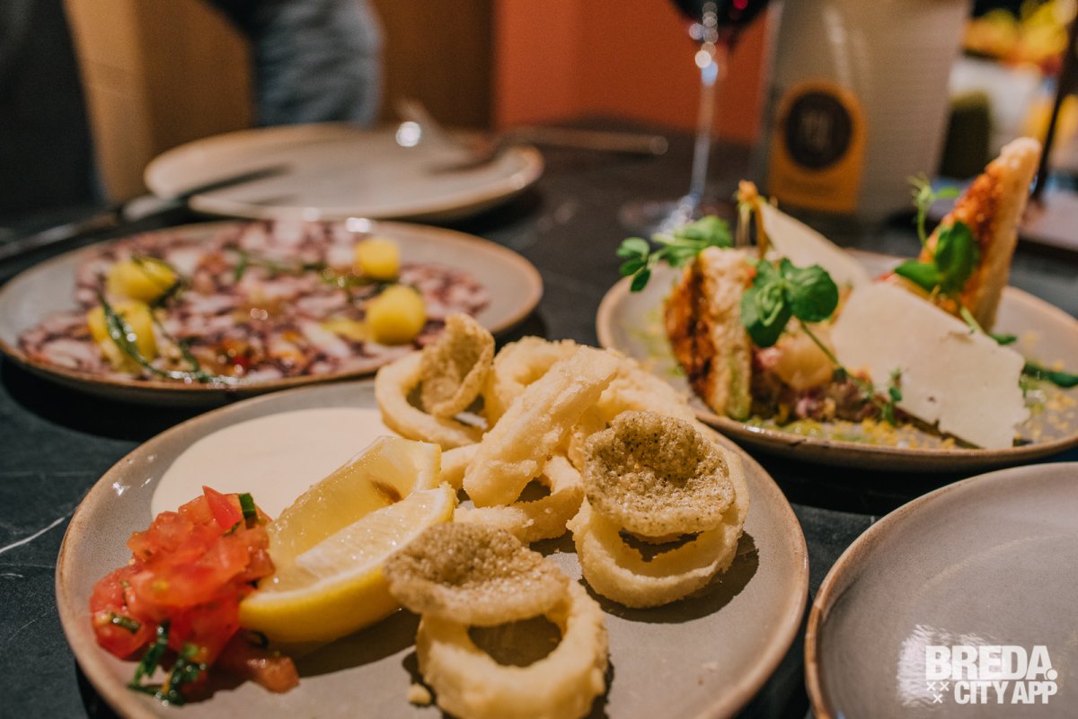 We kijken wat verbaasd omdat we bij binnenkomst een chocoladewaterval uit de muur zien komen, gekleurd ijs in de ijsvitrine en achter de bar een bakkersrek met heerlijke broden en broodjes zien staan. Dit is duidelijk geen standaard restaurant. Talita zorgt ervoor dat we ons gelijk thuis voelen en verzekerd ons dat we echt op het juiste adres zijn; het lekkerste nieuwe Italiaanse restaurant van Breda.