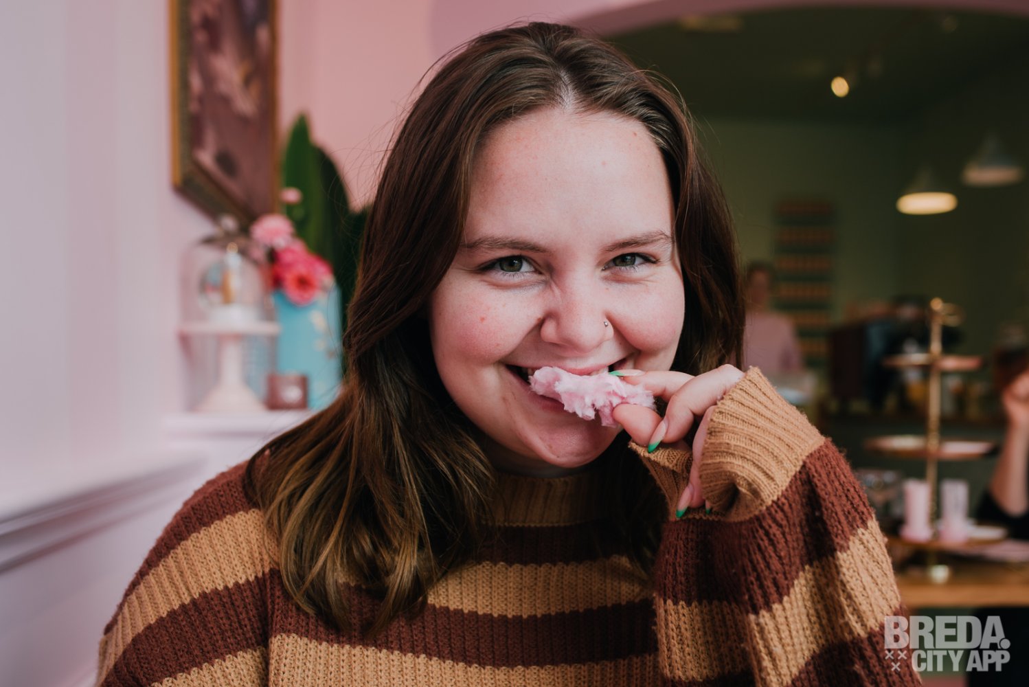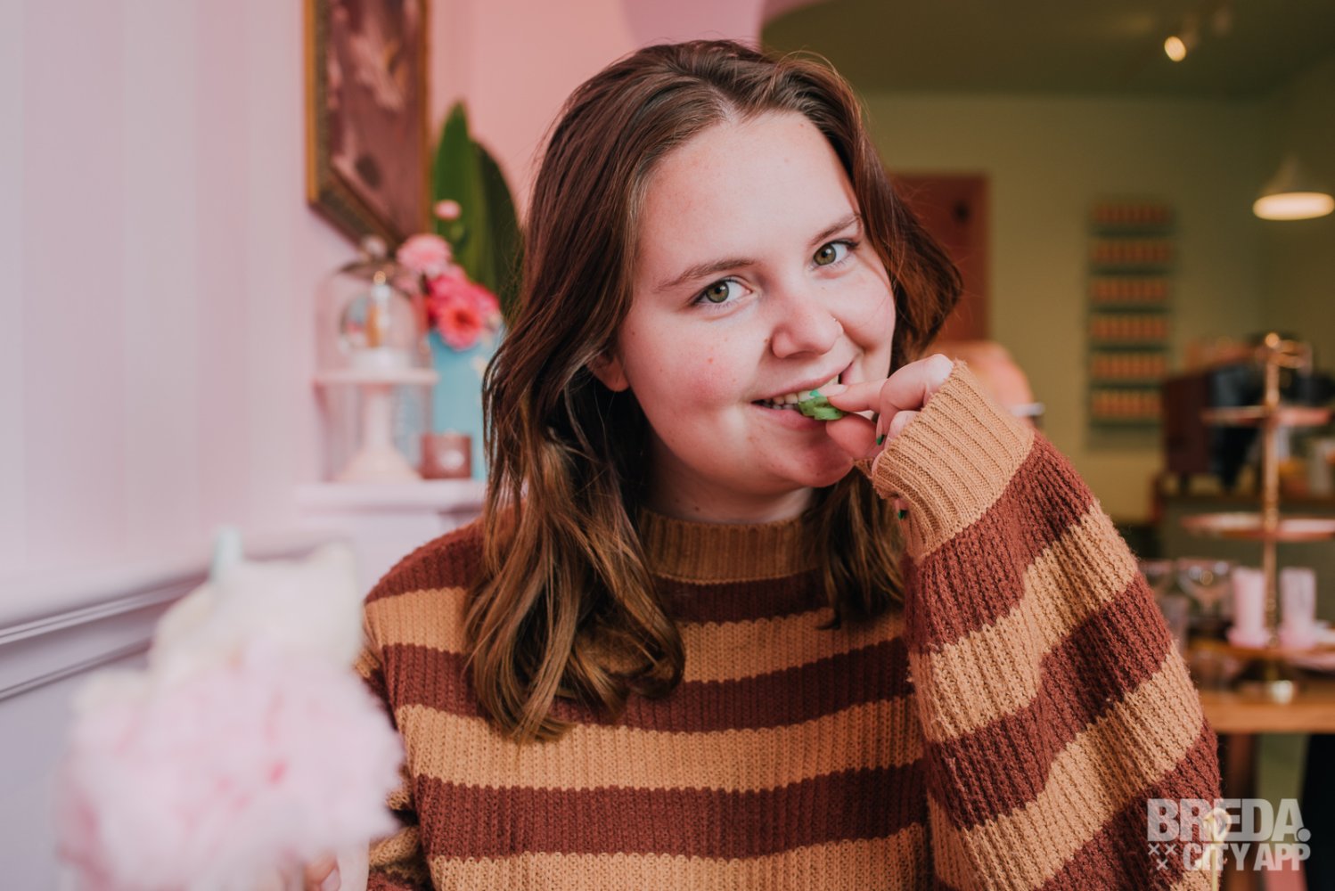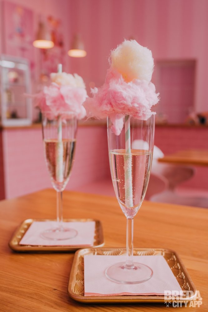 Bij binnenkomst werden we zeer vriendelijk ontvangen en het is ons zeker niet ontgaan dat A Cup of Cake echt fantastisch is ingericht. Het is een hele beleving. Om te beginnen krijg je bij de High Cocktail altijd als eerst de Cotton Candy Prosecco. Niet alleen heerlijk maar ook een echt plaatje! We krijgen er ook nog een schaaltje met nootjes bij.
