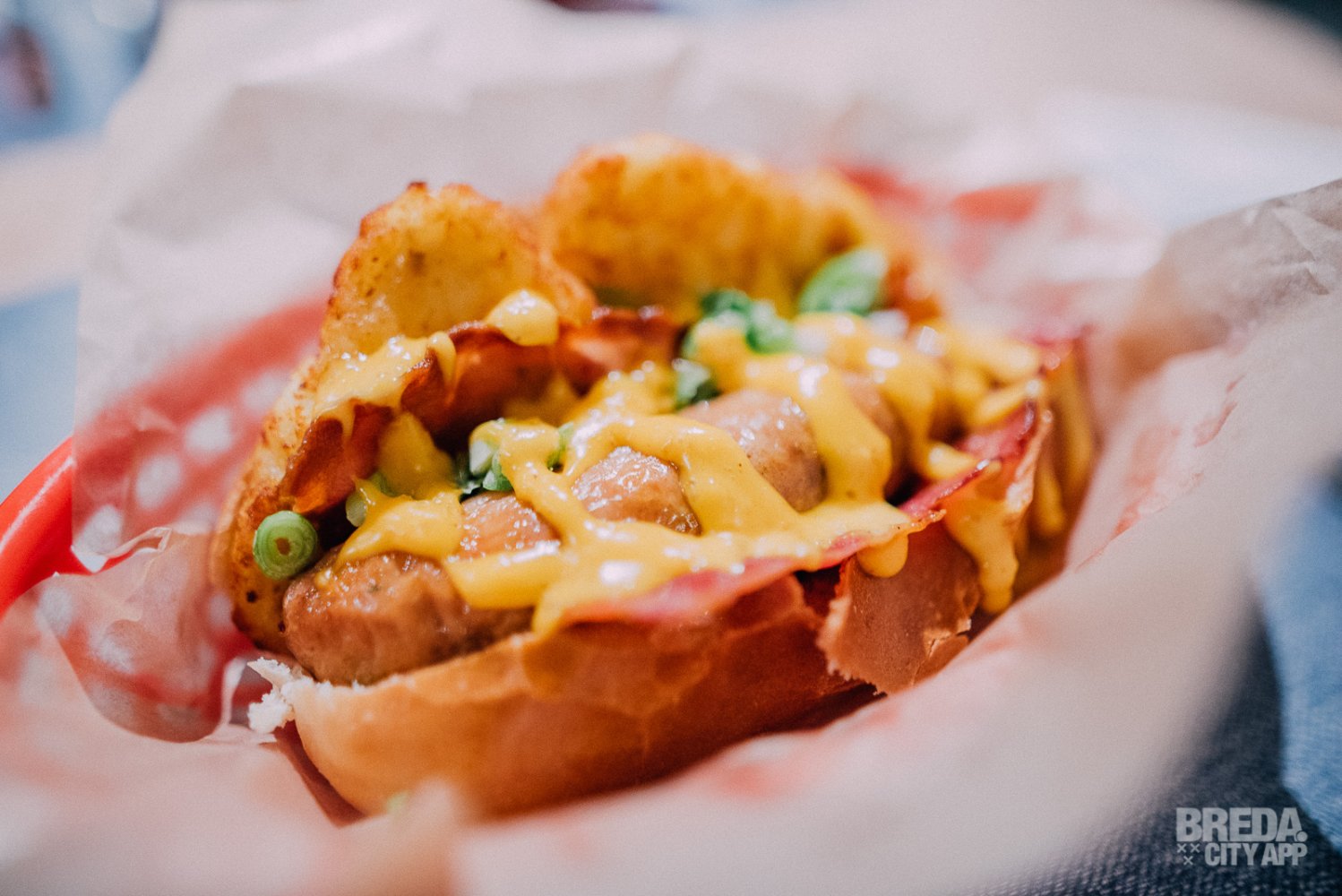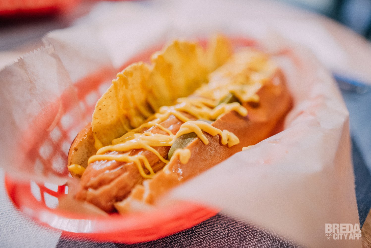 Alle hotdogs worden geserveerd in gezellige rode mandjes, waardoor je meteen dat gevoel krijgt van een echte Amerikaanse Hotdog. De Mexican hotdog is rijk gevuld met nacho's, guacamole, creamy-cheese, jalapaños én natuurlijk een hotdog. Een verrassende combi! Door de knapperige nacho's en pittige pepers, is deze variant perfect voor liefhebbers van (licht) pittig eten. Wij zijn fan!